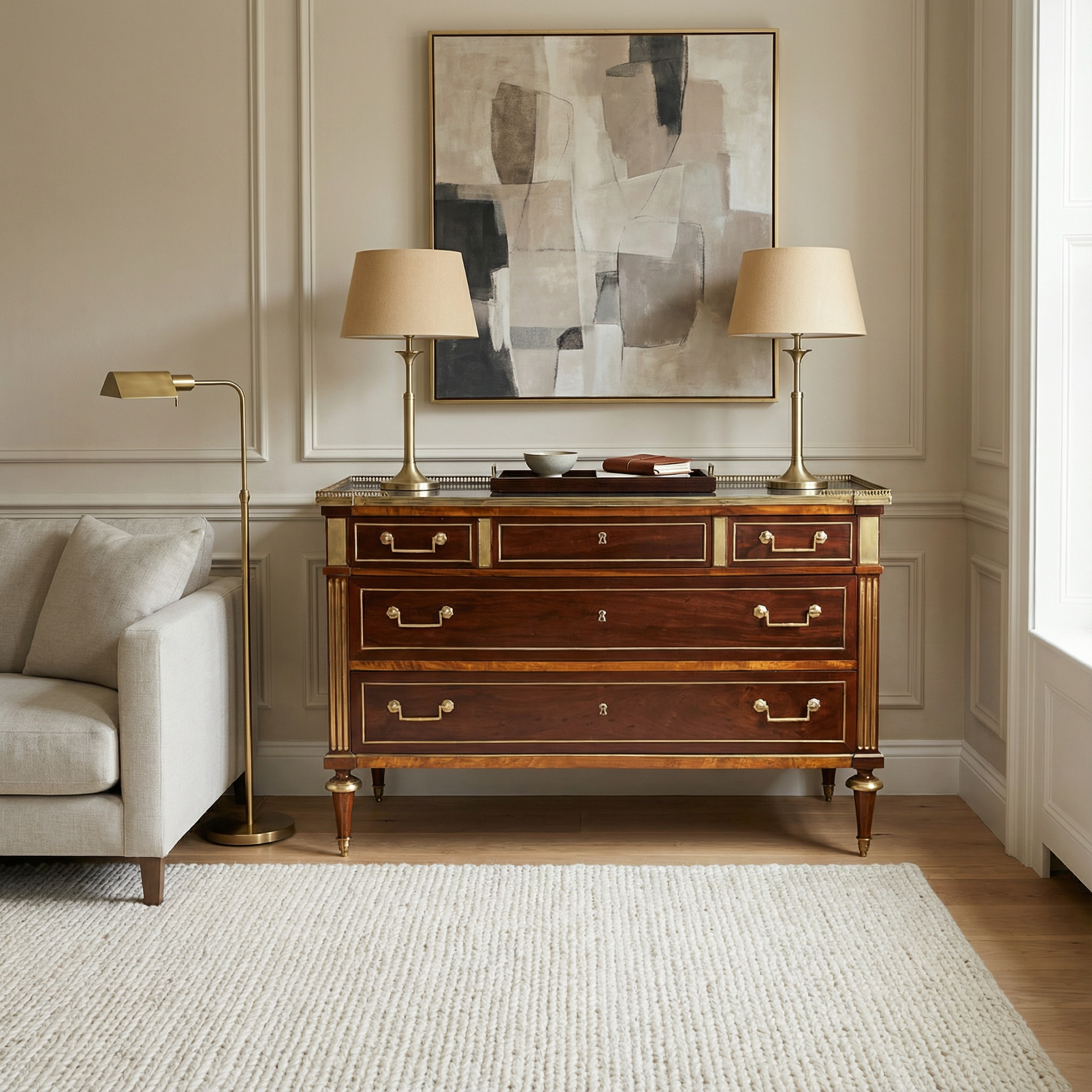 You don’t need a room filled with antiques to create character. One exceptional chest of drawers—chosen for its proportions, materials, and patina—can define an entire space.