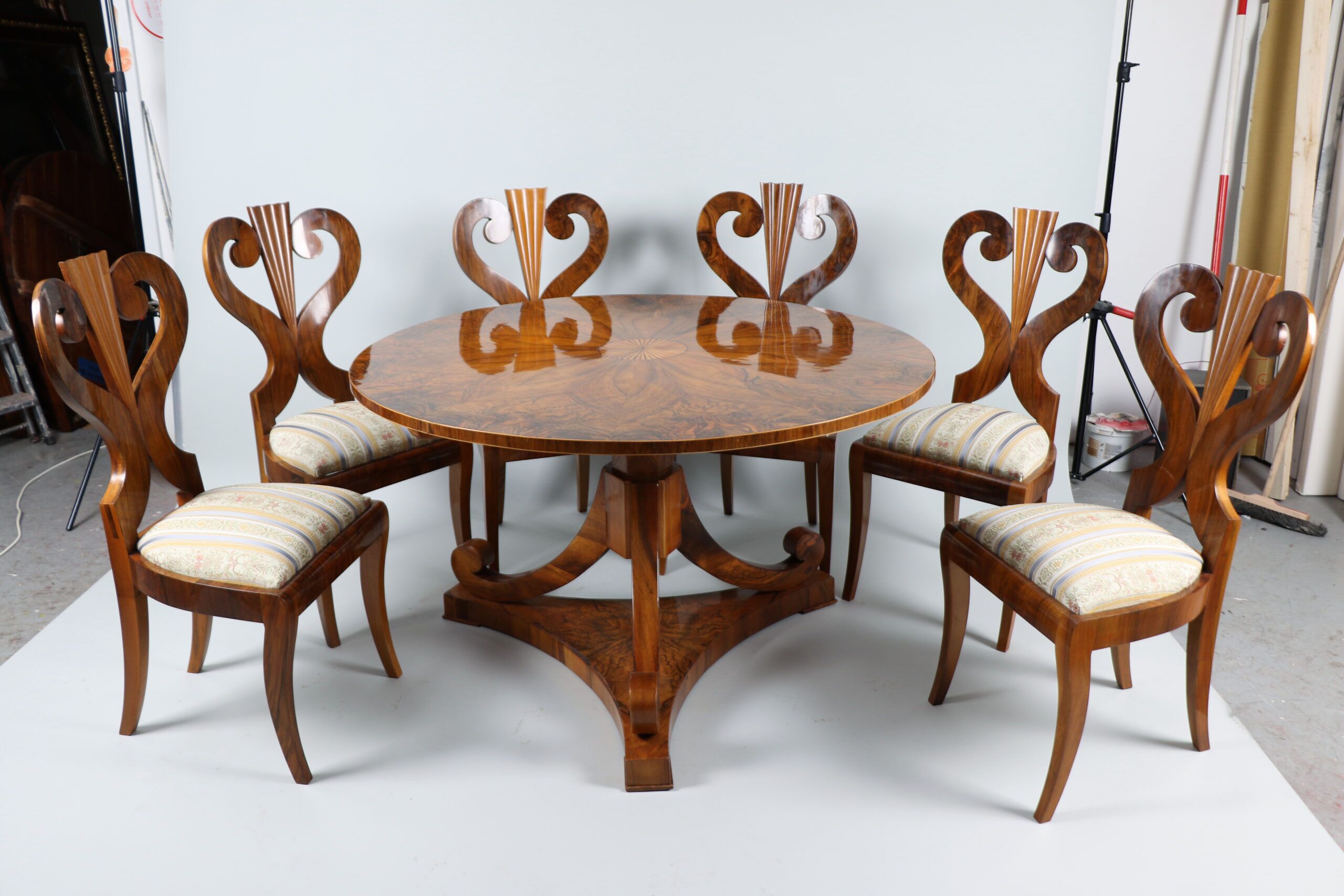 A matching set of six finely crafted walnut Biedermeier chairs is available upon request, offering a rare opportunity to acquire a complete period ensemble of exceptional quality.