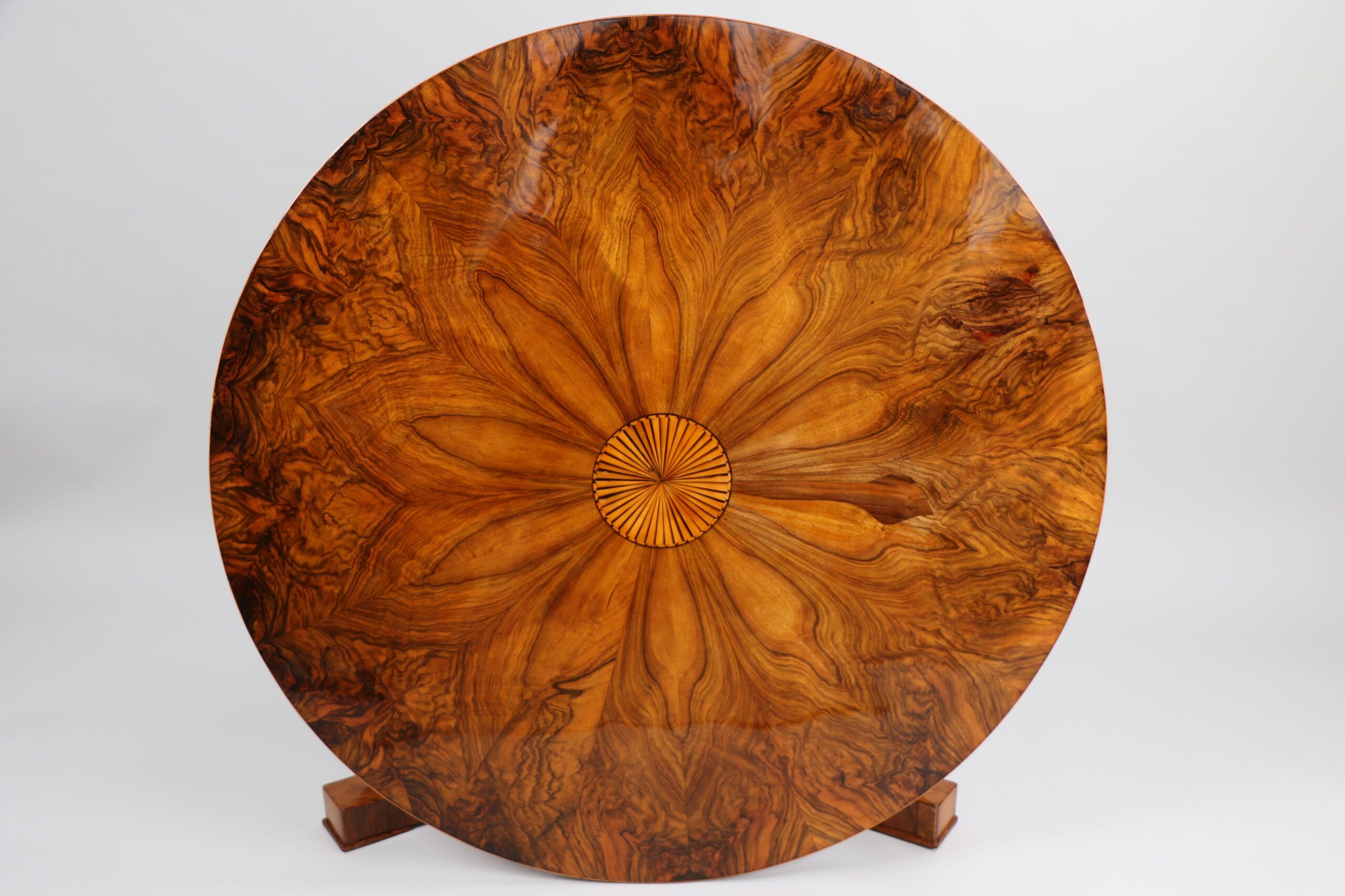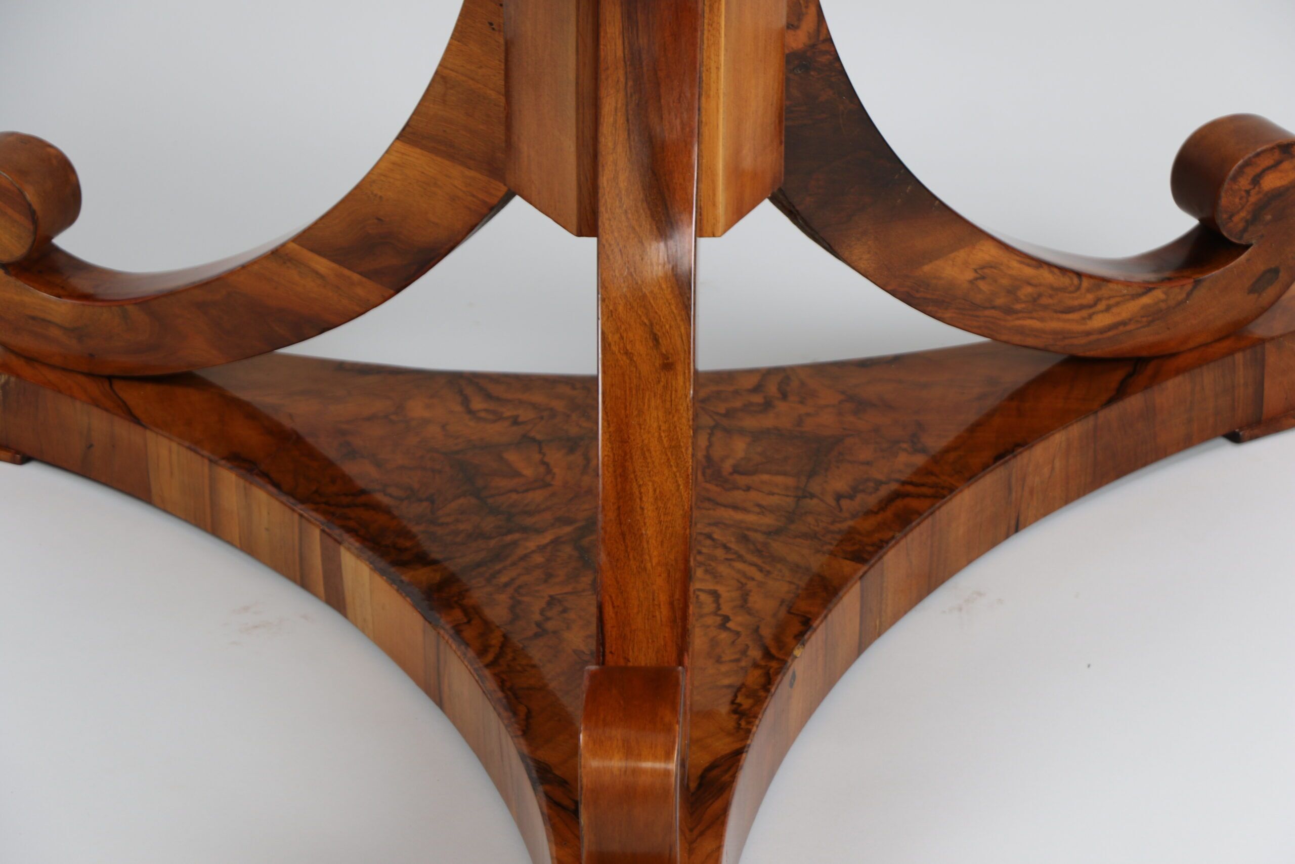 The sculptural pedestal base continues the table’s graceful design, uniting aesthetic refinement with structural integrity — a hallmark of Viennese Biedermeier furniture.