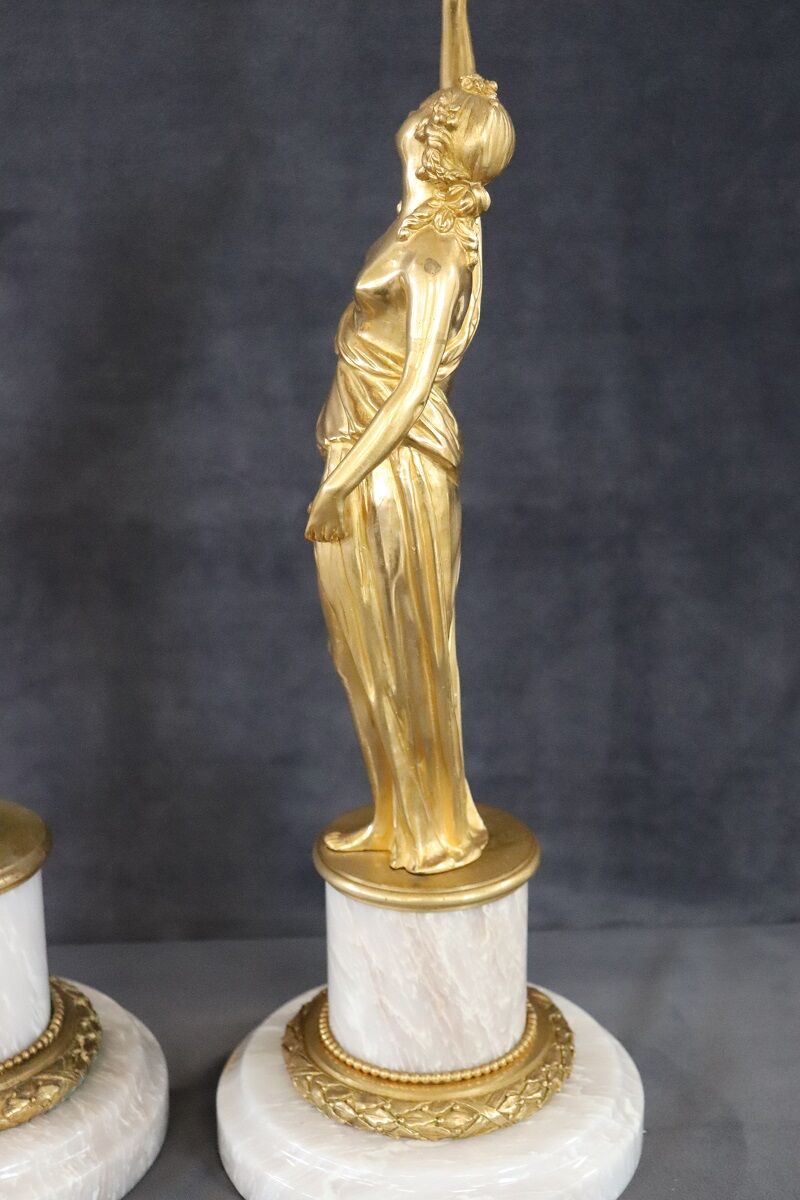 20th Century Italian Gilt Bronze Pair of Figures Sculptures
