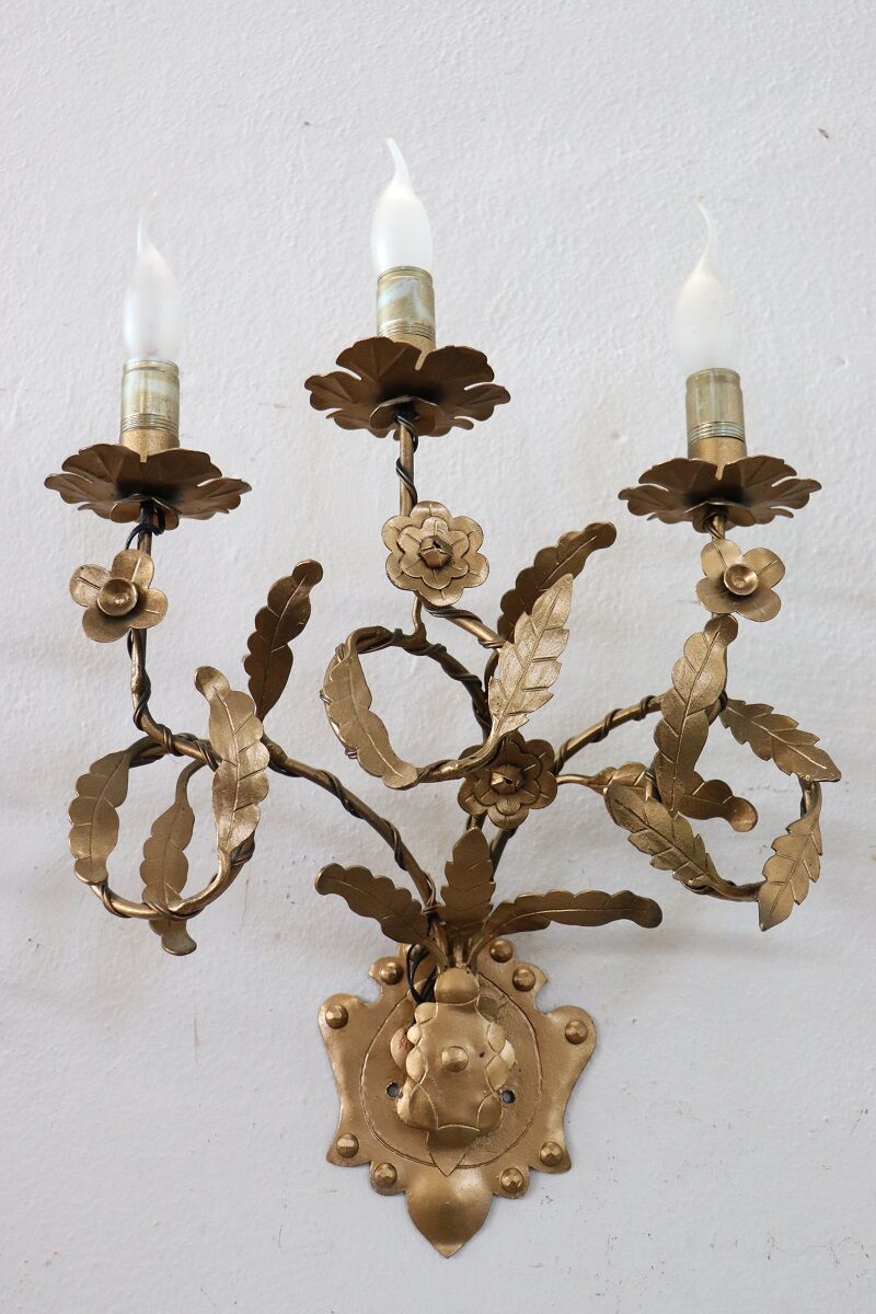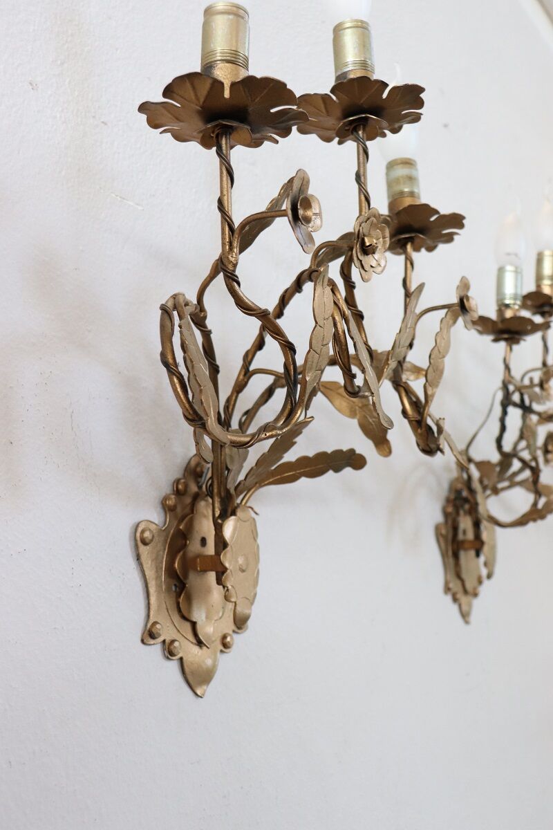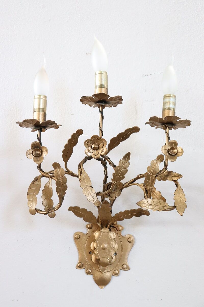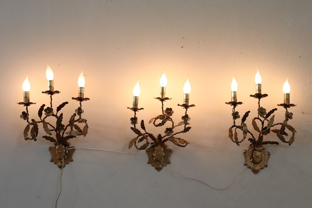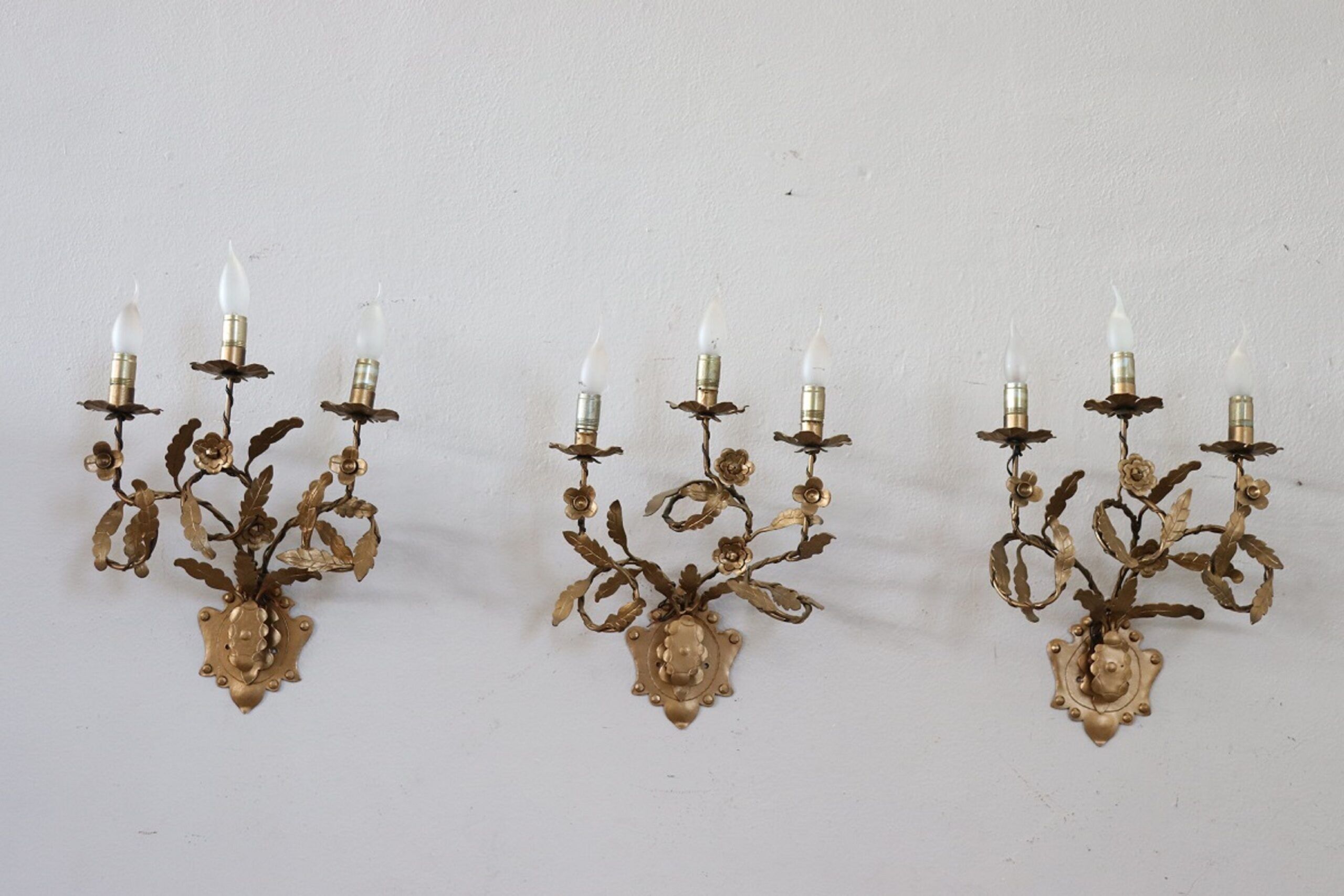 20th Century Italian Sconces, Set of 3, Gilt Iron