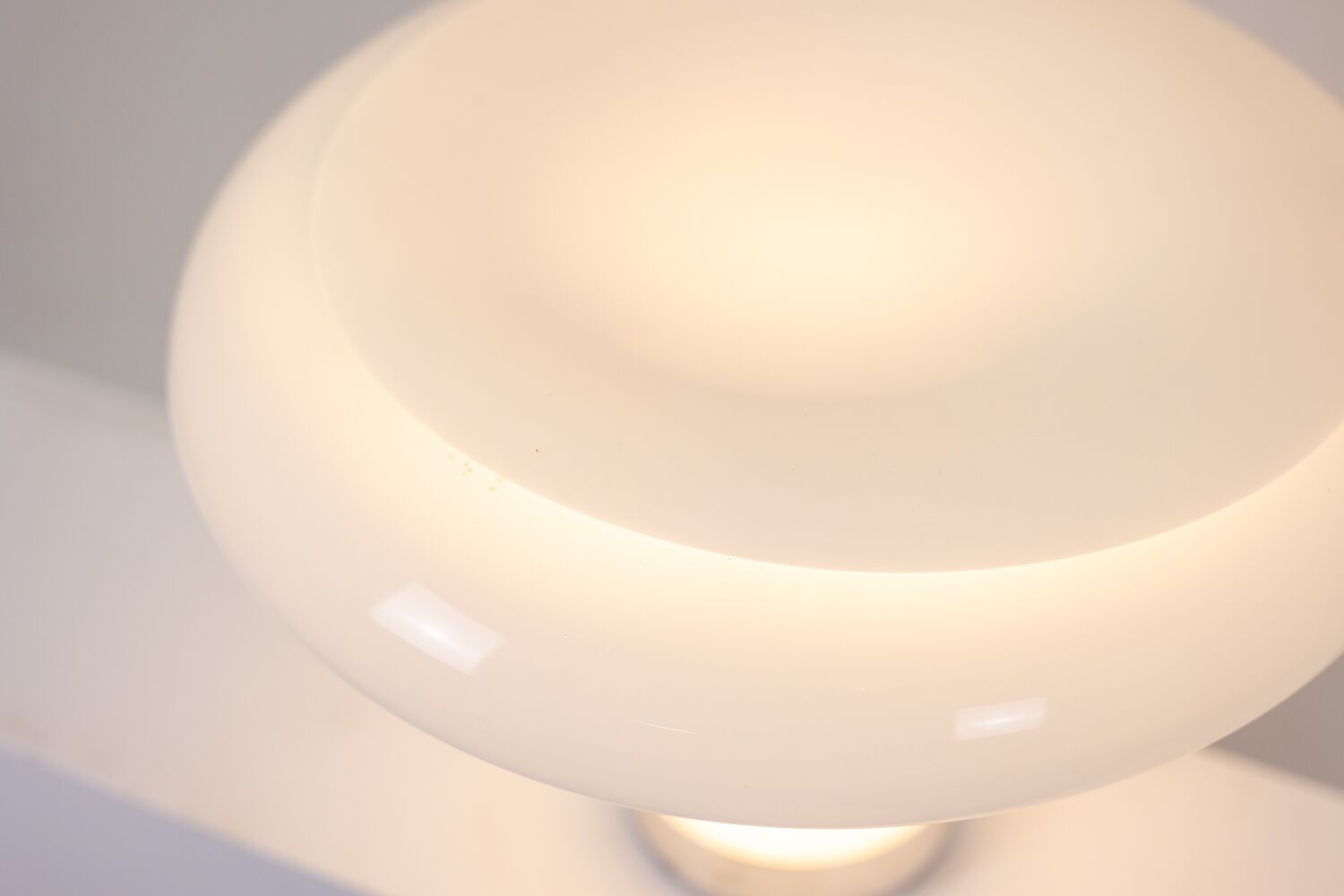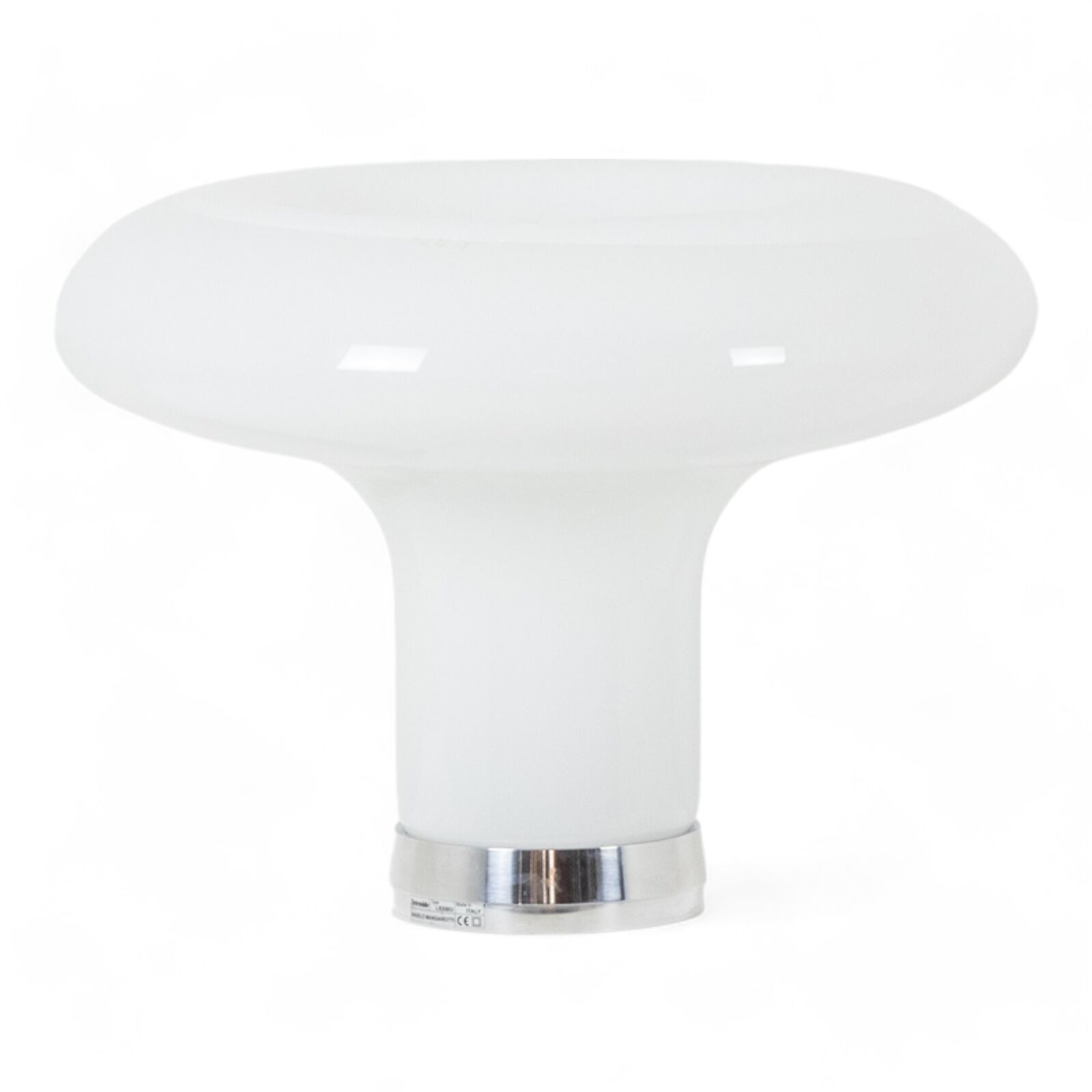 Designed by Angelo Mangiarotti for Artemide, this lamp showcases a white opaline shade with a circular silhouette and a slight hollow at the top. It rests elegantly on a chromed metal base, blending timeless elegance with modern design. A notable 1980s creation, this piece is a testament to Mangiarotti’s refined aesthetic and innovative approach to lighting design.