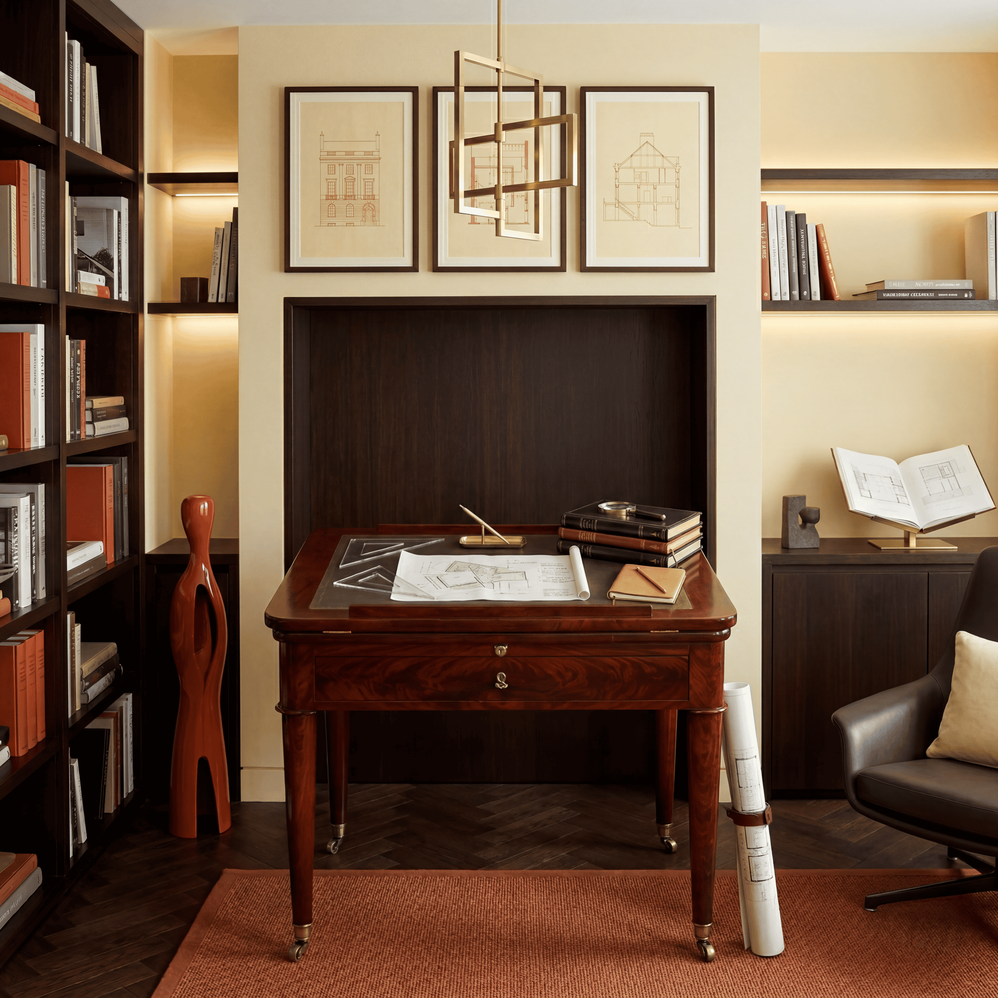Elevated on round tapering legs, this architect’s table, also known as “table à la Tronchin” in French, pays homage to the Swiss physician Théodore Tronchin. Dr. Tronchin, an advocate of fresh air, exercise, and a moderate lifestyle, may have recommended this table to patients who spent prolonged hours in a seated position.