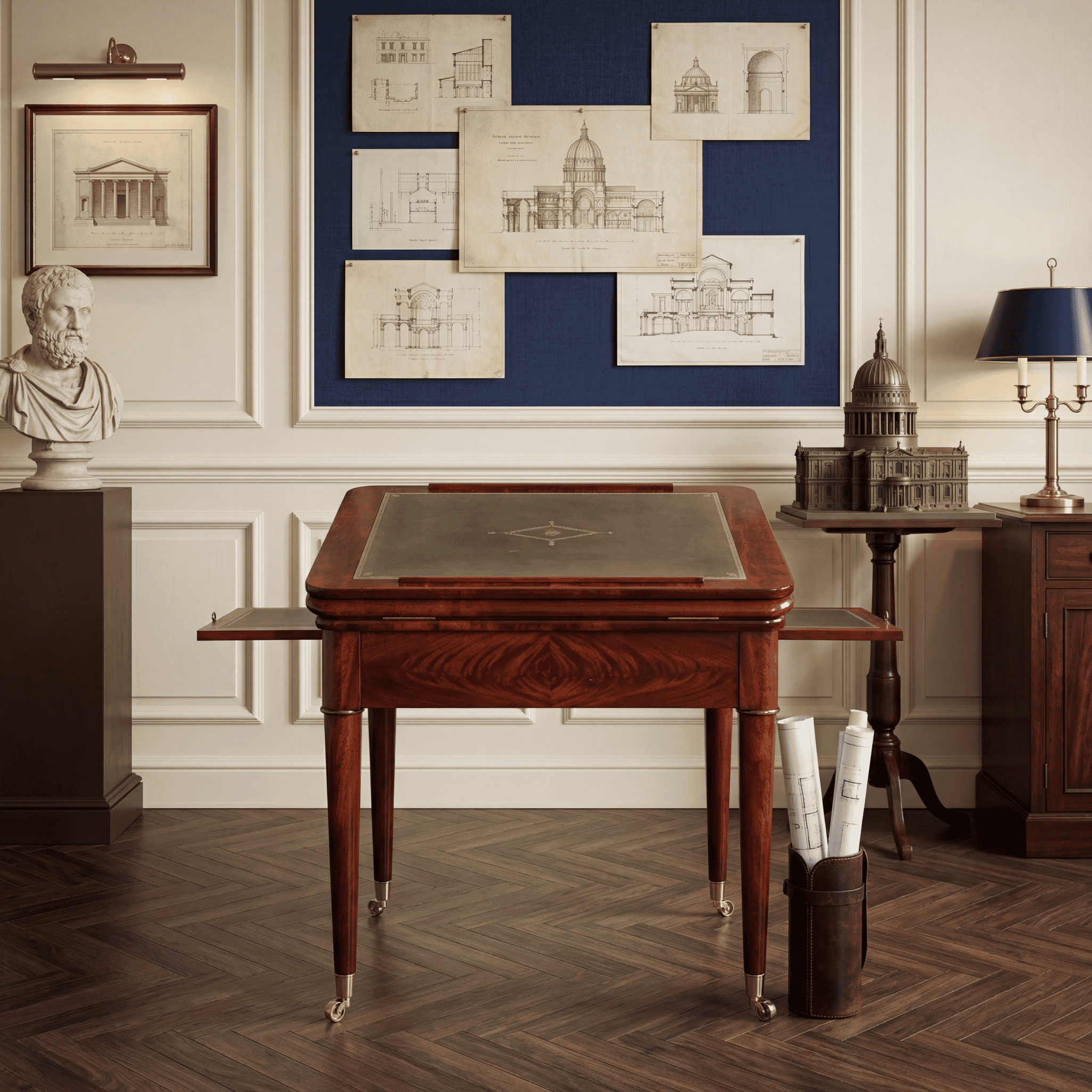 Explore a stunning late eighteenth-century Directoire Period antique architect’s desk crafted from figured mahogany.