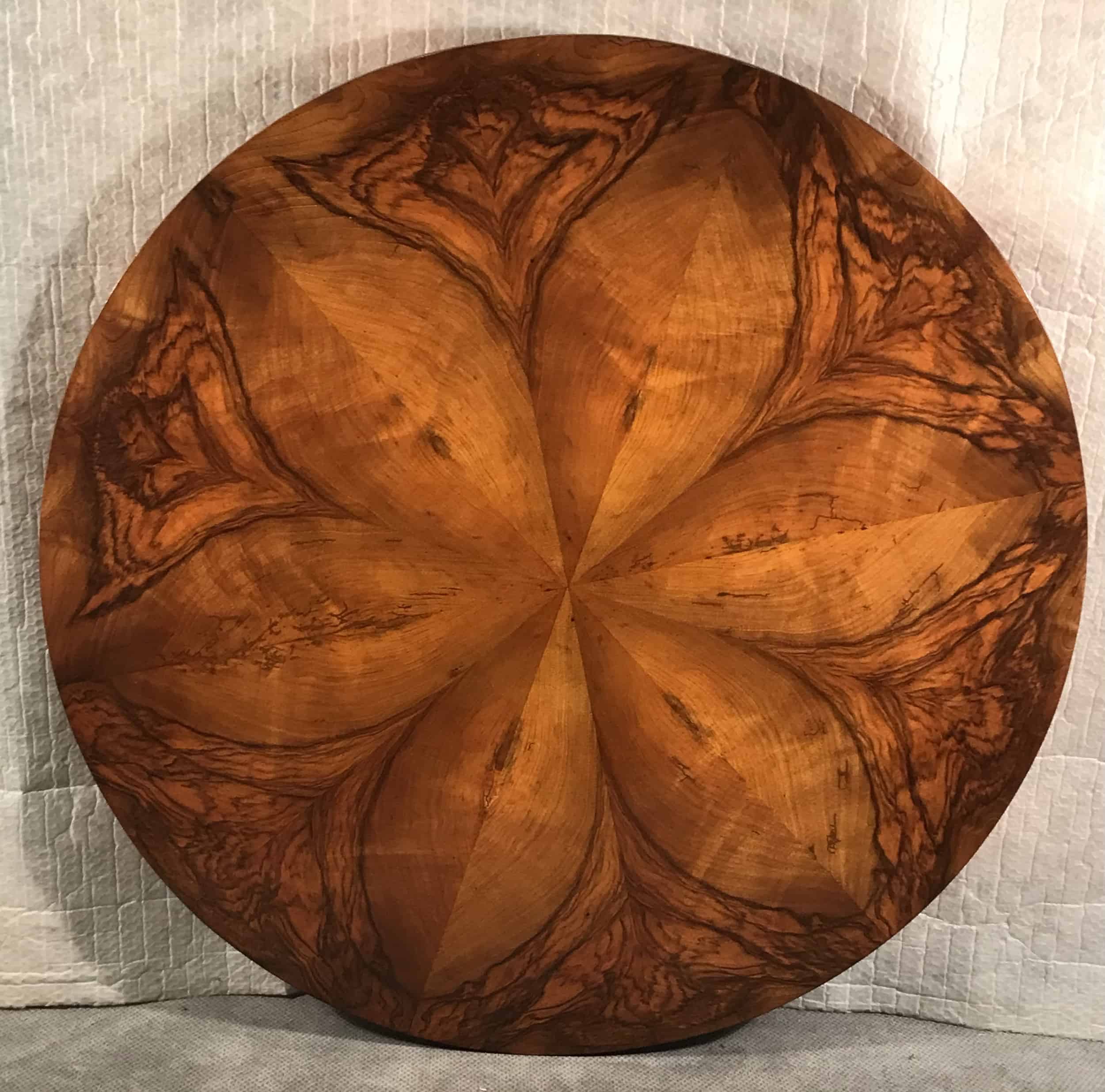 This Antique Biedermeier Center Table dates back to 1820-25 and was made in southern Germany. The table top has a very pretty piecrust walnut veneer with a gorgeous grain.