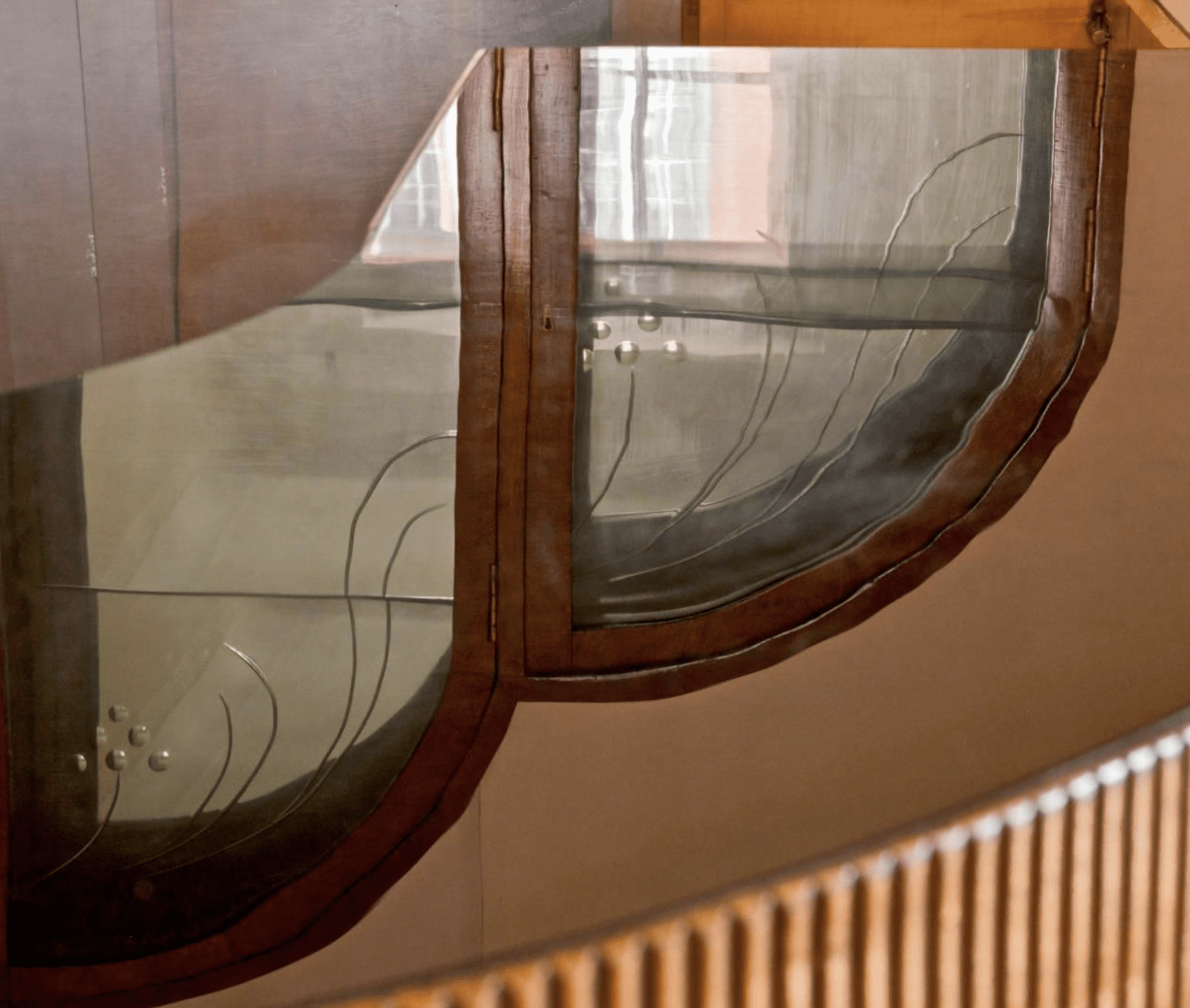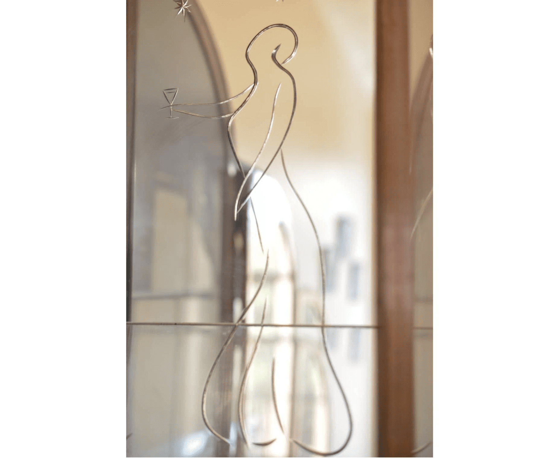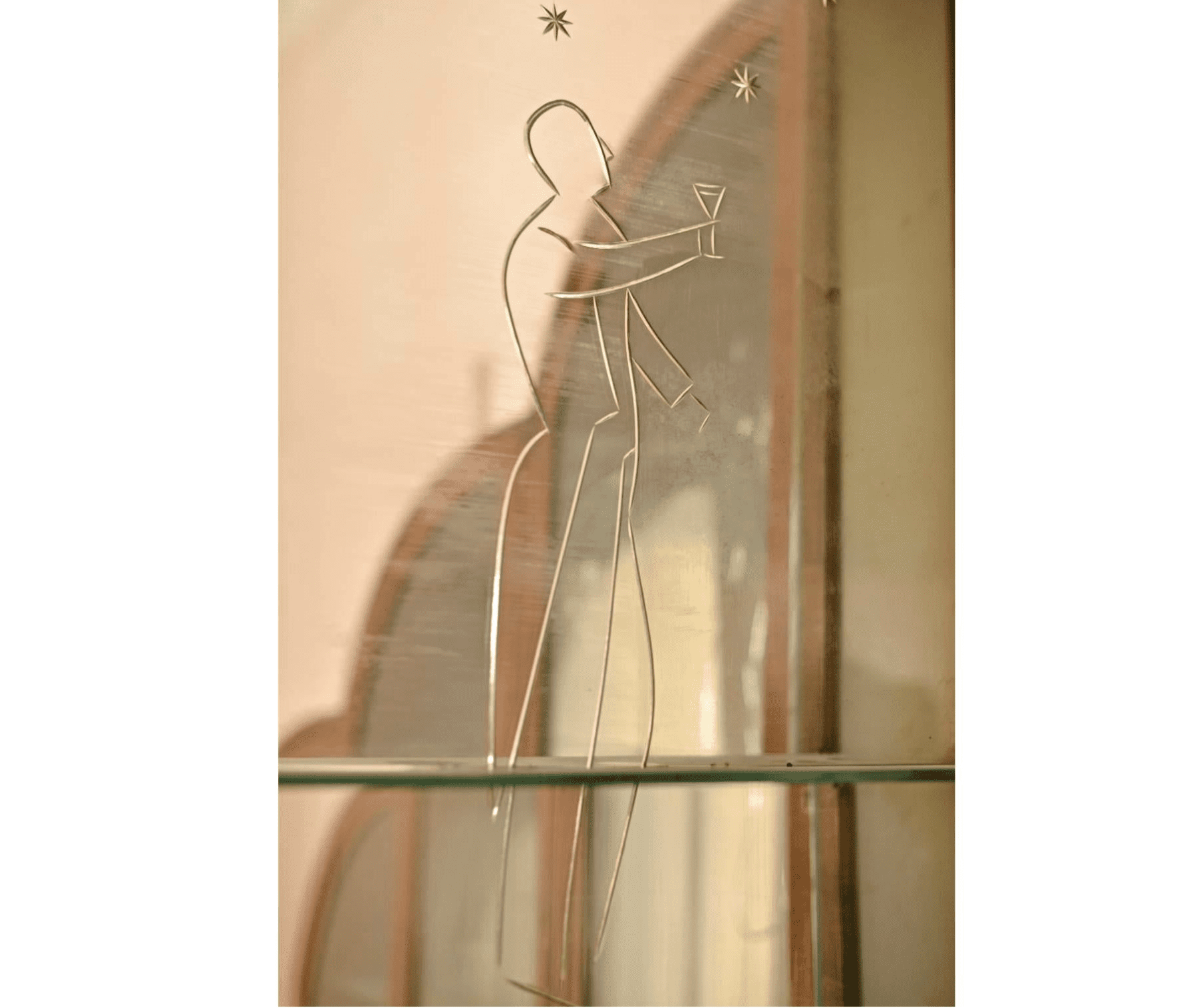 - Beveled mirrors with exquisite engravings of figures and curlicues