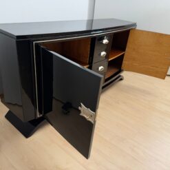 Wonderful, elegant Art Deco Sideboard or Buffet in black piano lacquer and chrome, from France, circa 1930.