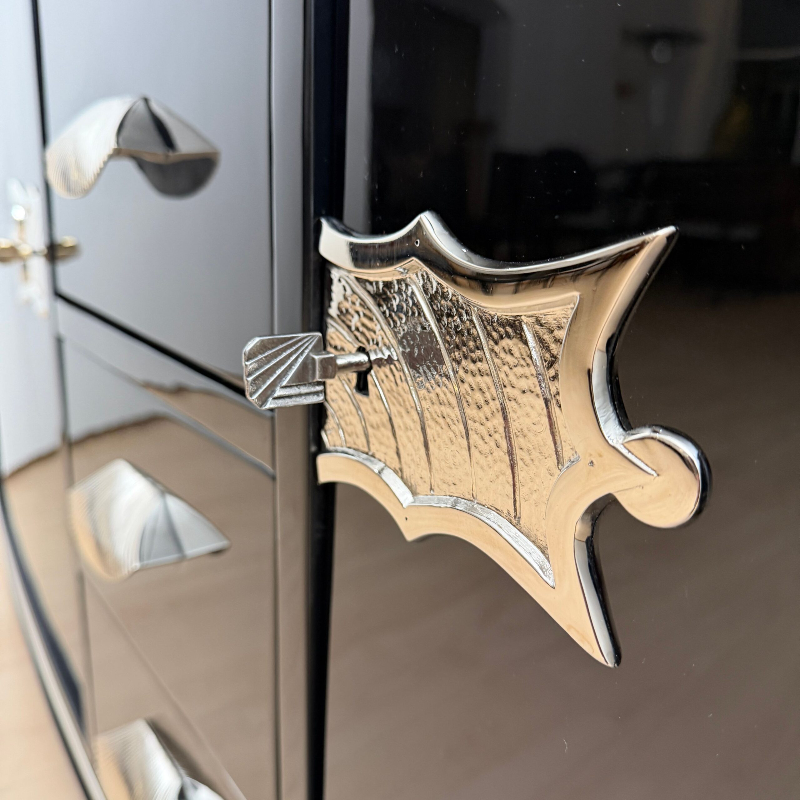 Two fittings on the doors with old Art Deco keys. Four original shell handles in the center.