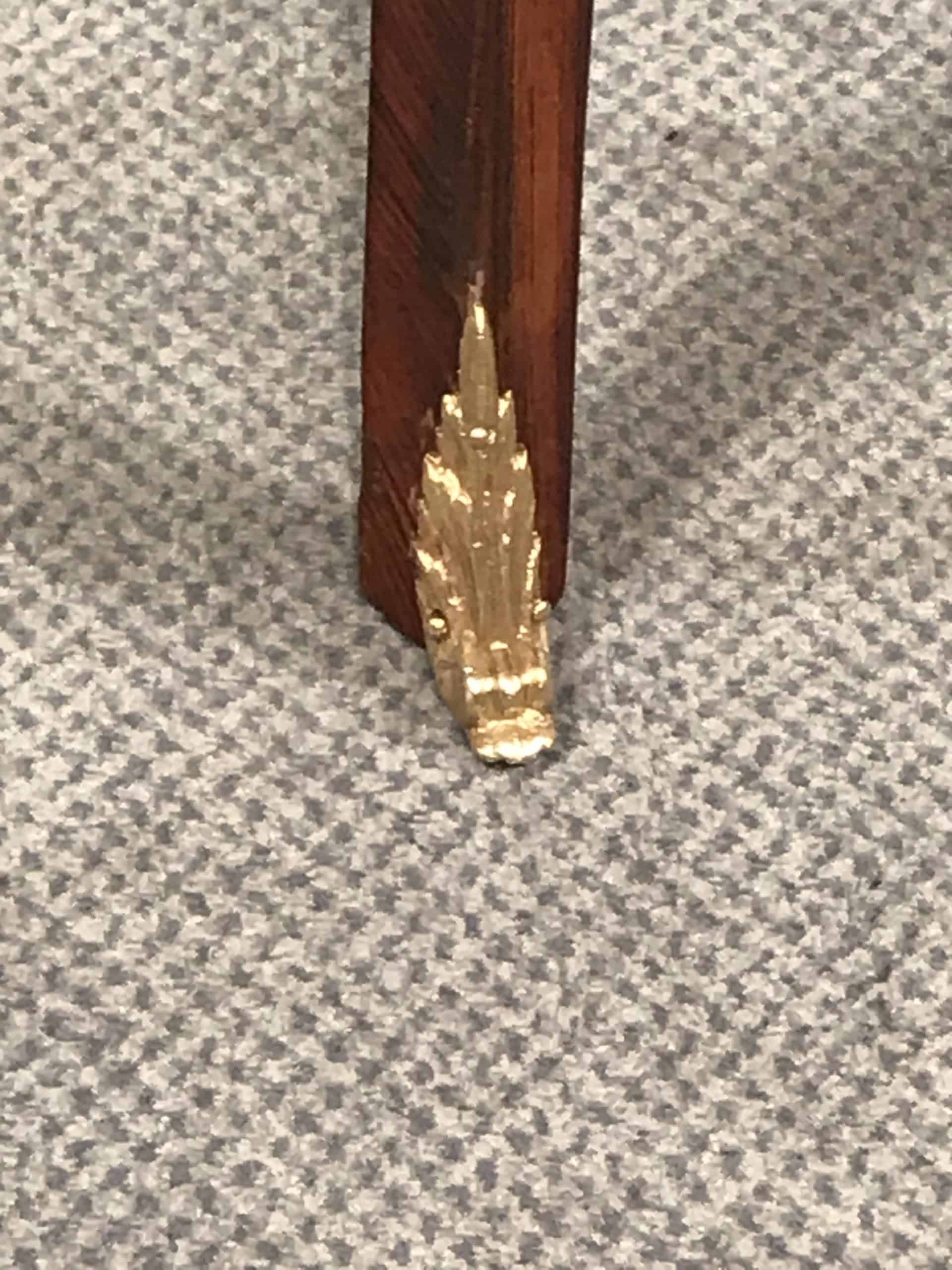 This small antique Baroque Style Dresser comes from France and dates back to the second half of the 19th century. The dresser stands out for its beautiful walnut and mahogany veneer decoration. It is additionally embellished bronze fittings. The red-brownish marble top is original.