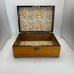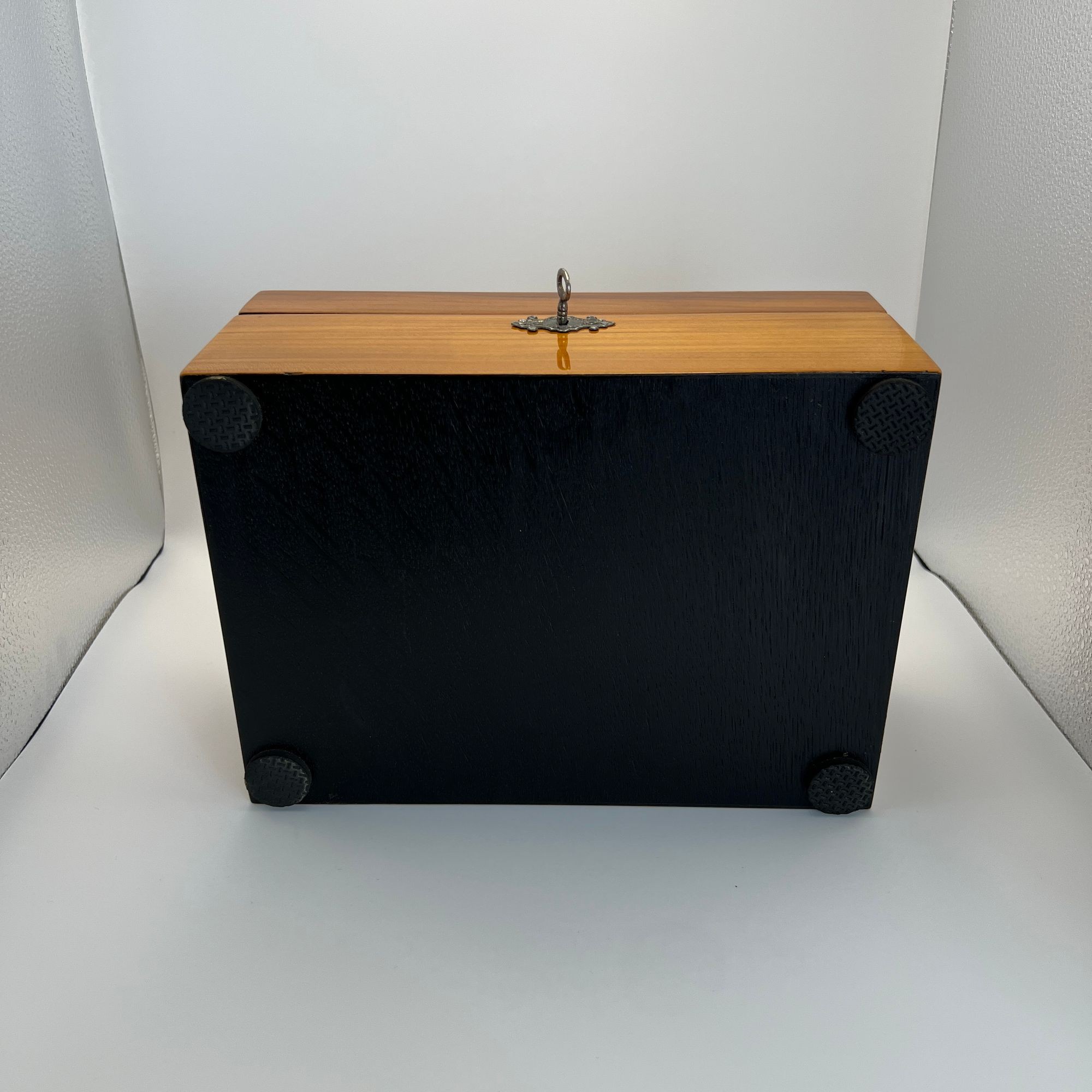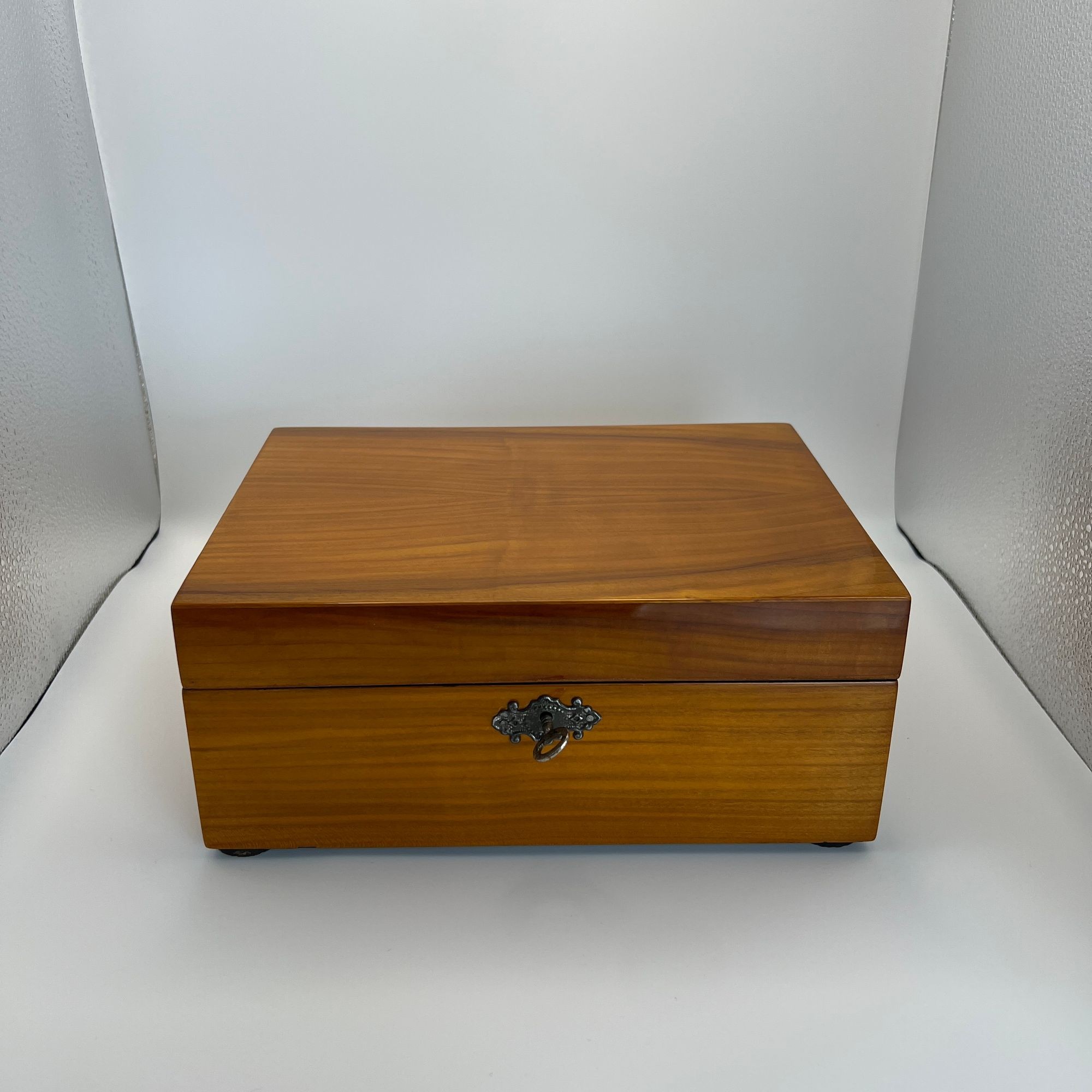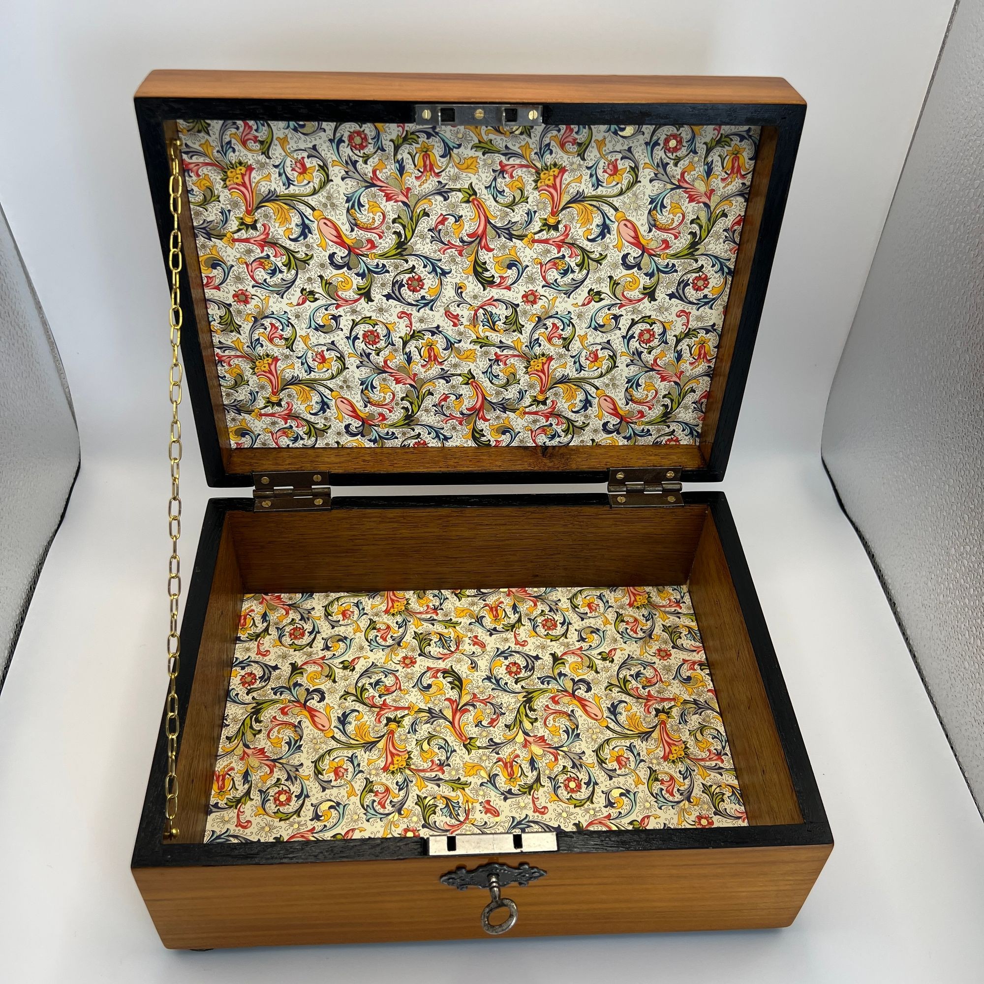Fitted with a brass side chain, lock, key, hinges, and pressed iron fittings, this casket demonstrates both practicality and craftsmanship. A timeless decorative object, perfect as a collector’s piece or for display on a desk or cabinet.