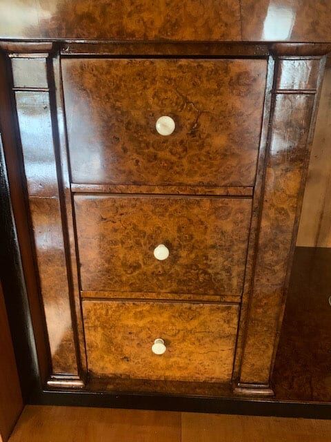 Top restored and shellac hand polished. H: 61.42 in (156 cm), W: 41.34 in. (105 cm), D: 19.69 in. (50 cm).
