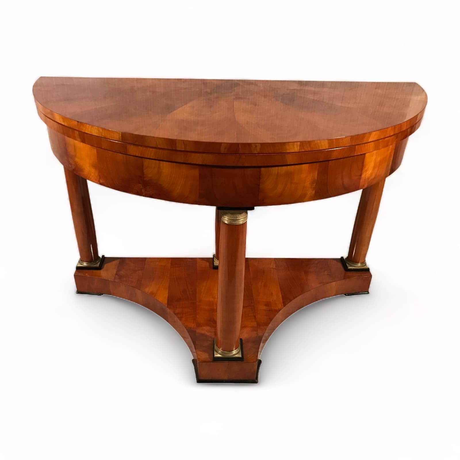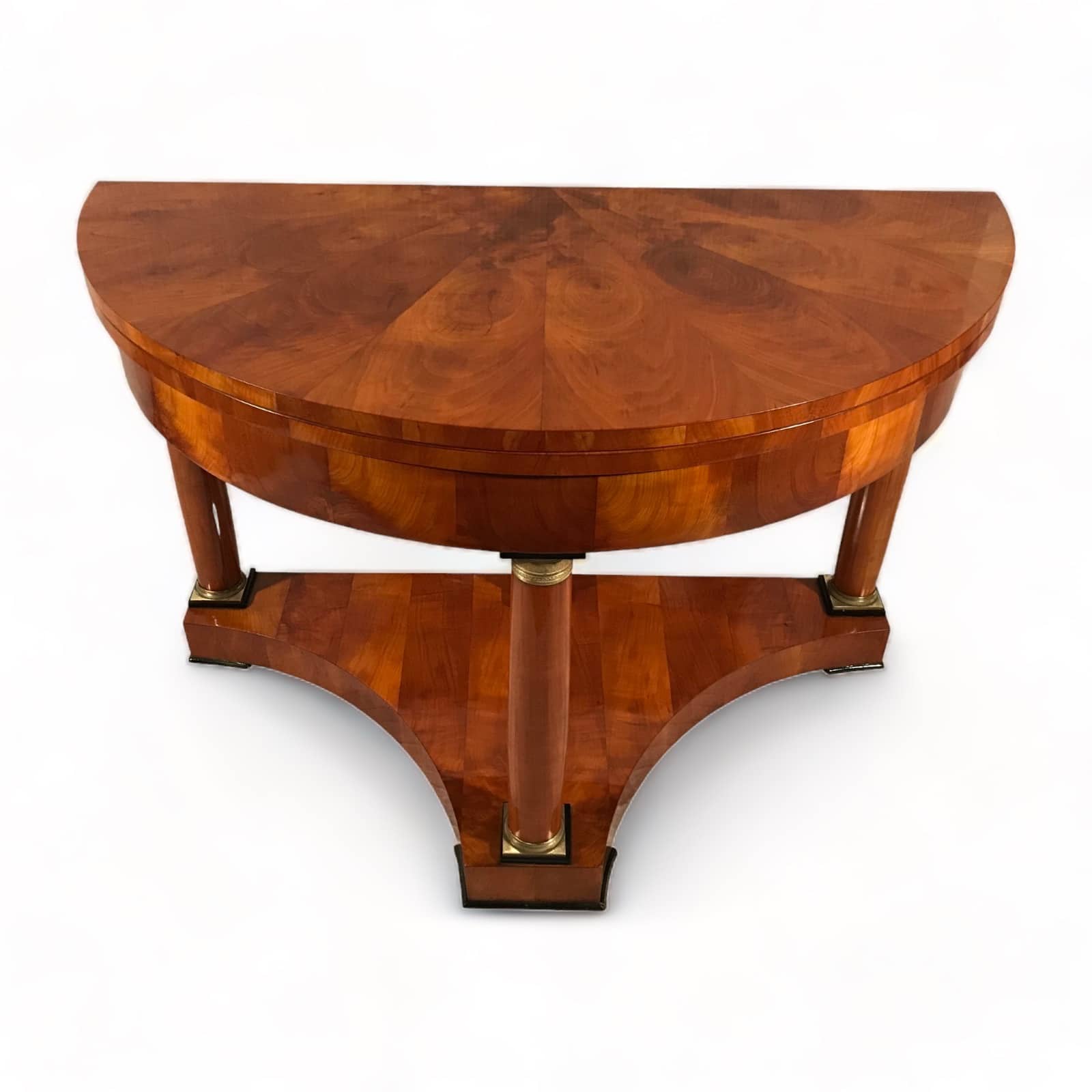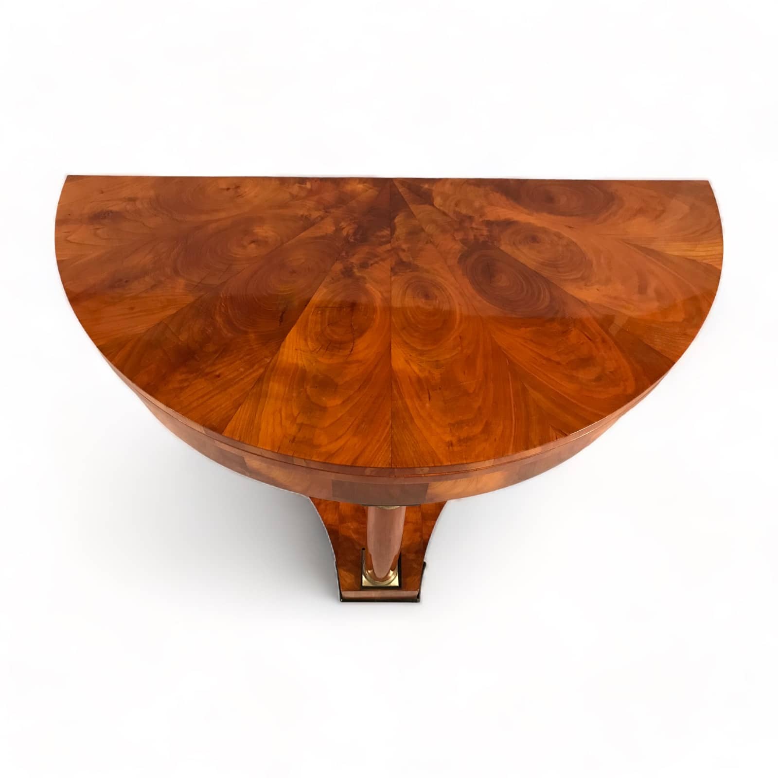 Elevate your space with our exquisite Biedermeier demilune table, celebrated for its timeless elegance and distinctive design.
