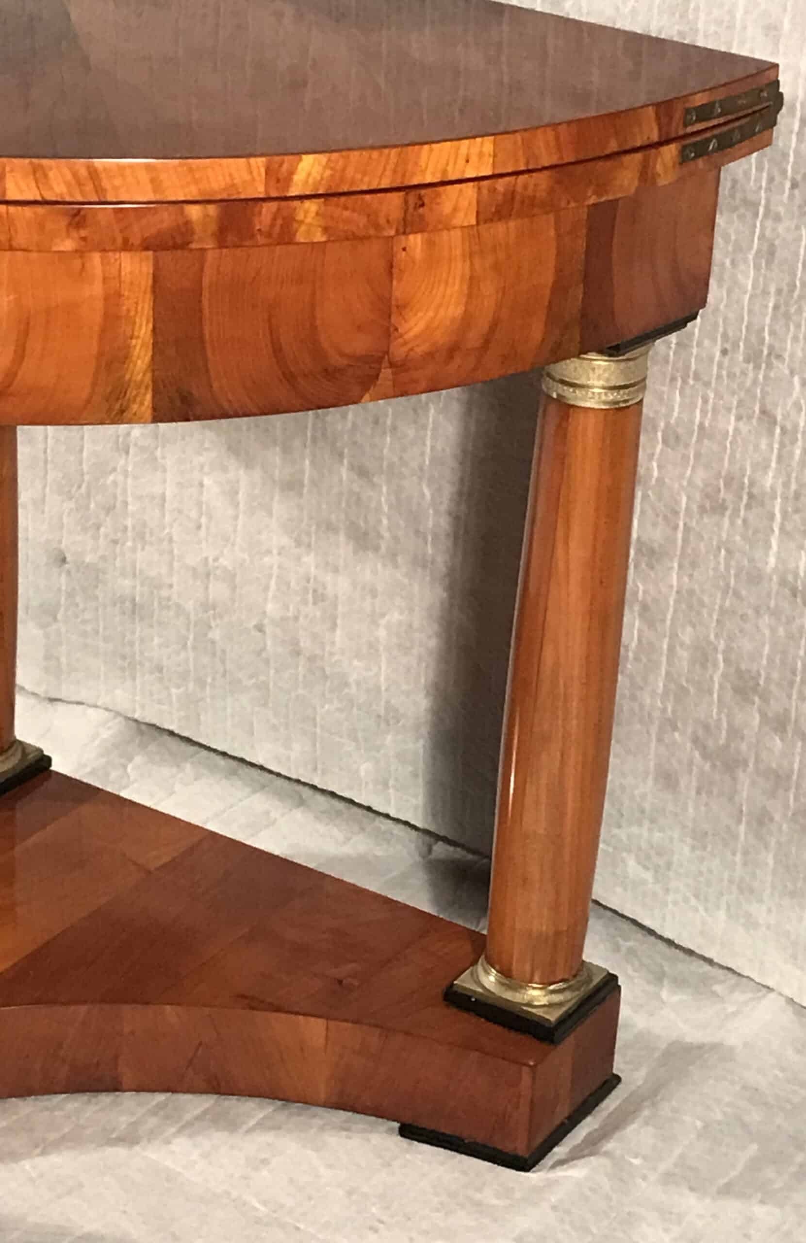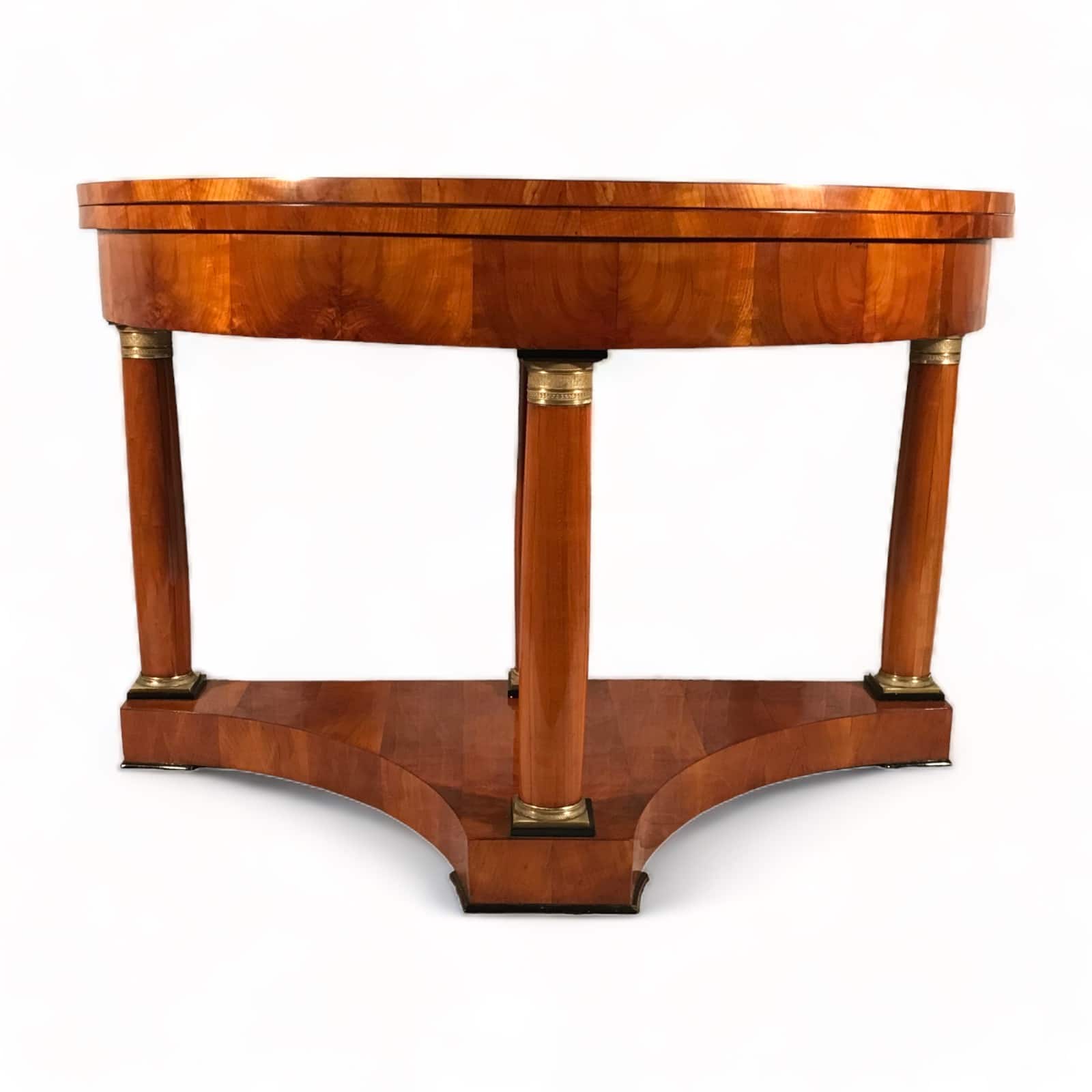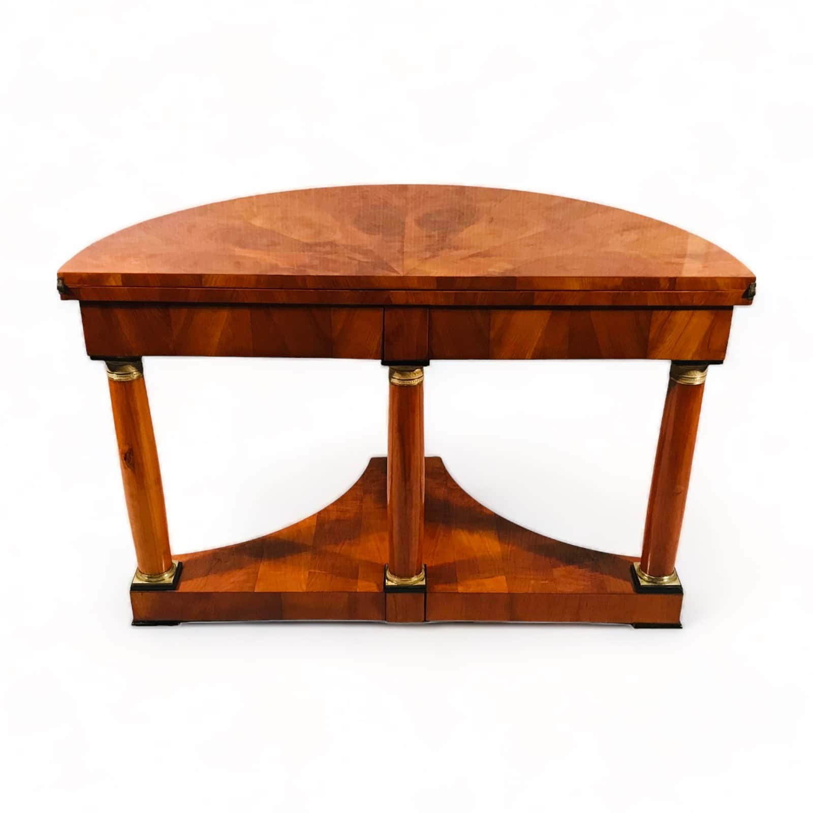 Elevate your space with our exquisite Biedermeier demilune table, celebrated for its timeless elegance and distinctive design.