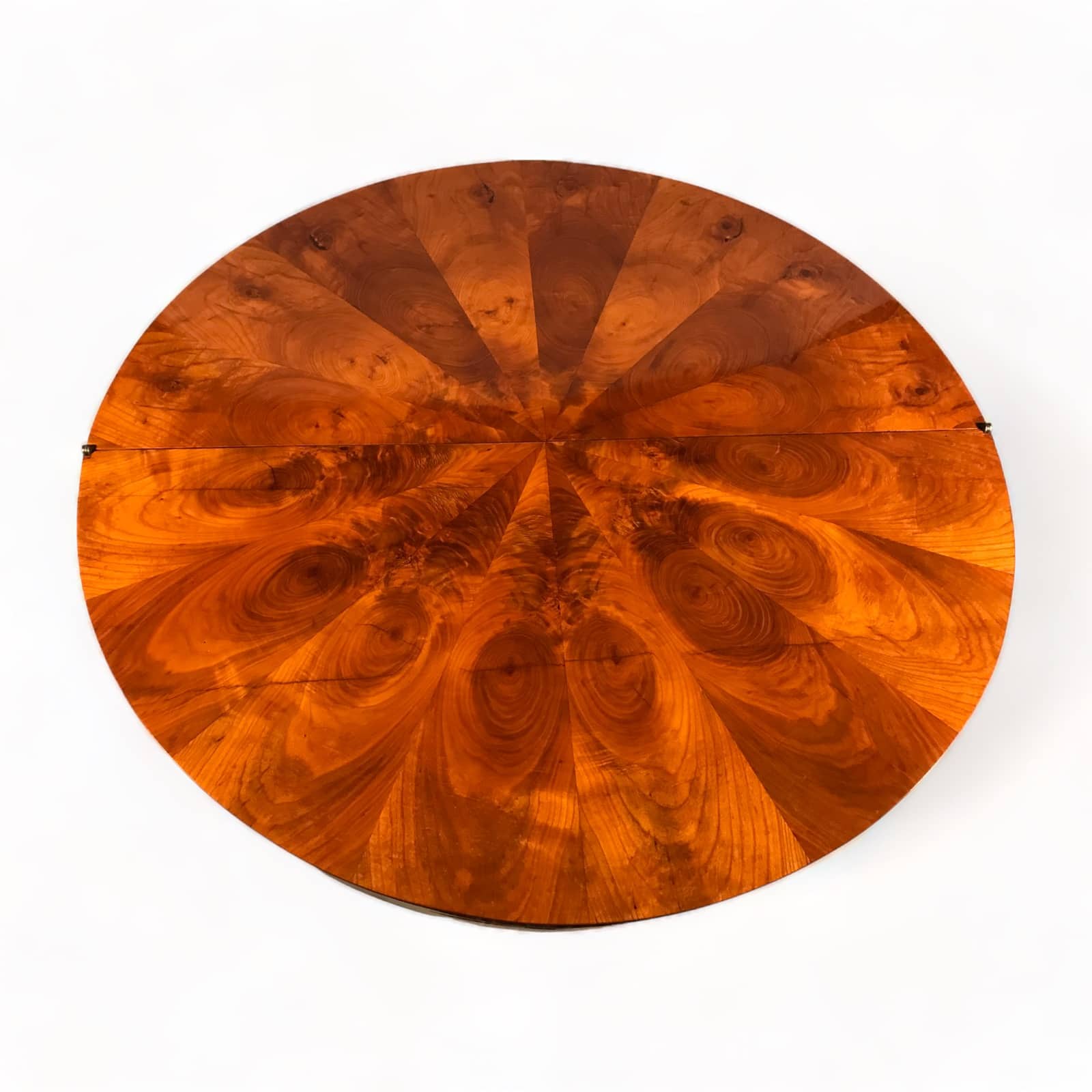 Meticulously refinished with a shellac hand polish, this table radiates expert craftsmanship, but still shows the little imperfections of a more than 200 year old piece of Biedermeier furniture.