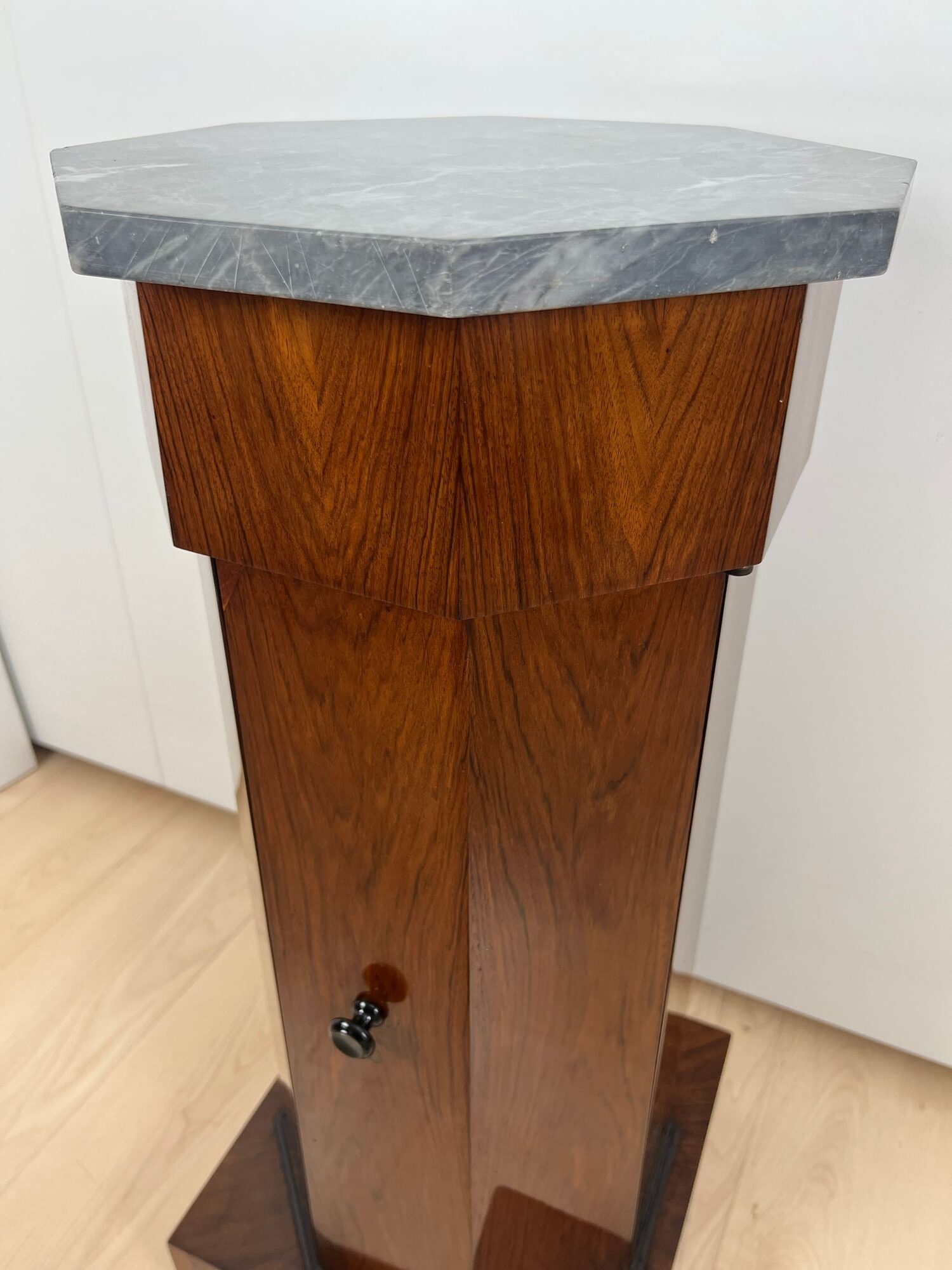 Topped with a removable, polished gray marble surface in matching octagonal shape