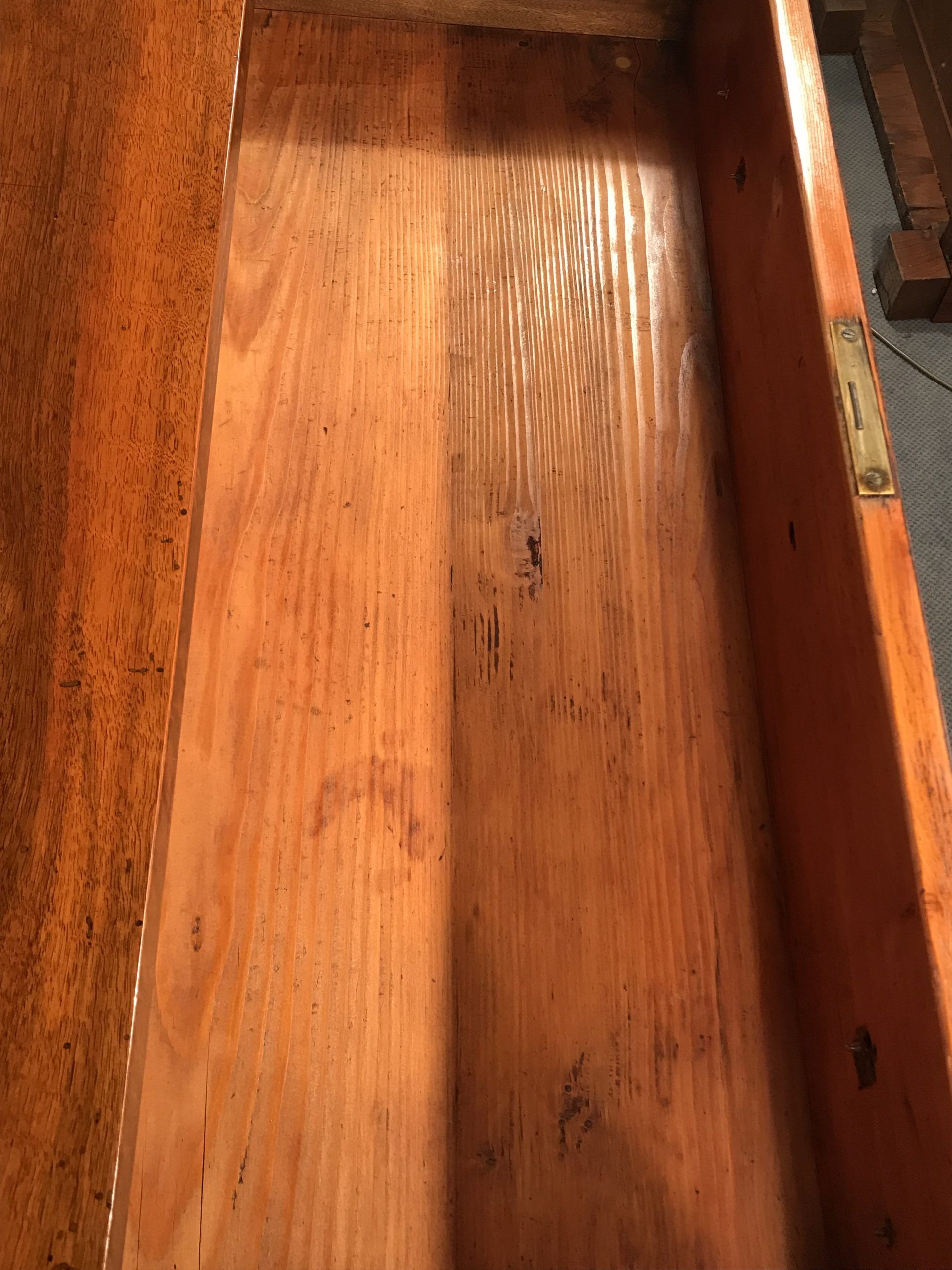 The dresser comes refinished and French polished and measures Height: 32.68 in. (83 cm), Width: 45.67 in. (116 cm), Depth: 21.66 in. (55 cm). Please contact us by email or call us for any further questions.