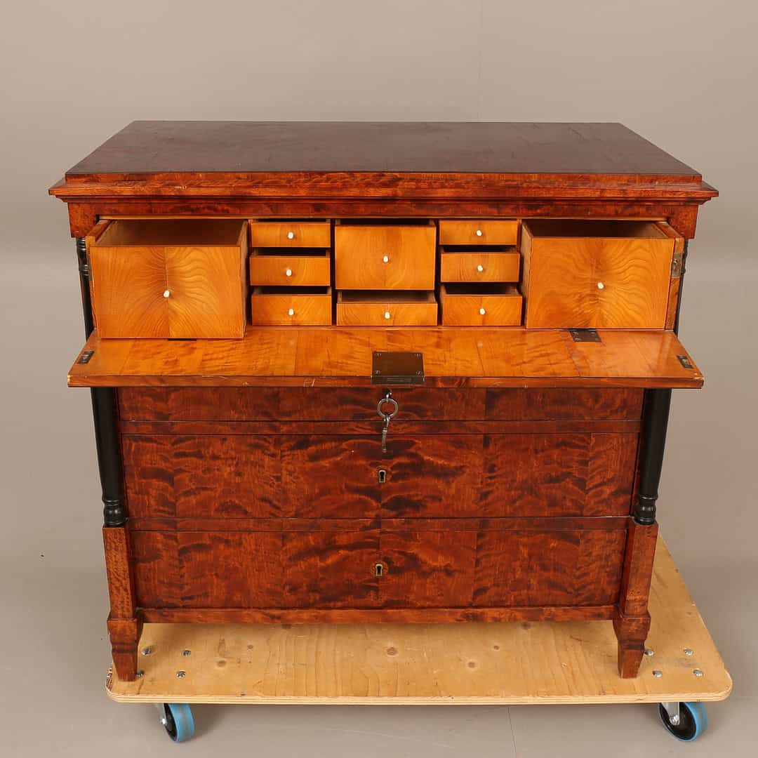Biedermeier Writing Desk – Antique Swedish Secrétaire in Quilted Birch