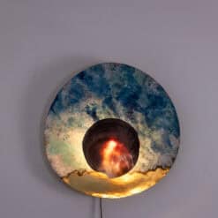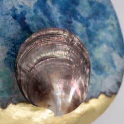 A contemporary French artist created the lights in a small series. Each piece highlights careful craftsmanship and refined detailing. The iridescent shell reflects light with subtle movement. The brass structure adds strength and warmth.
