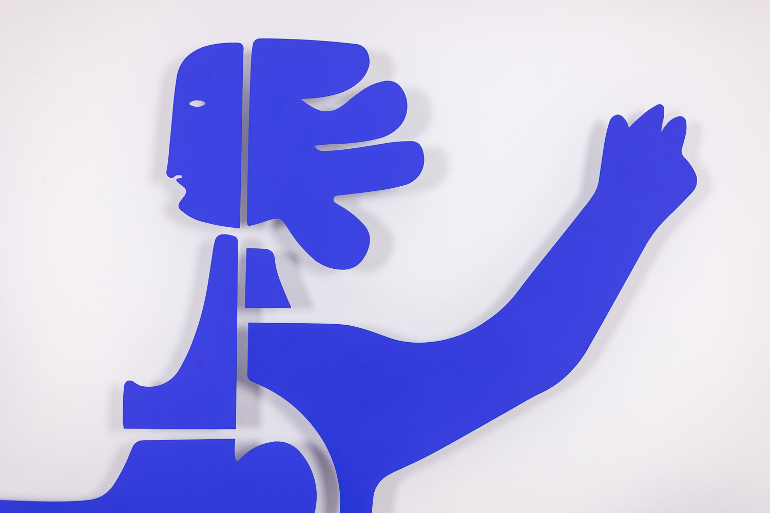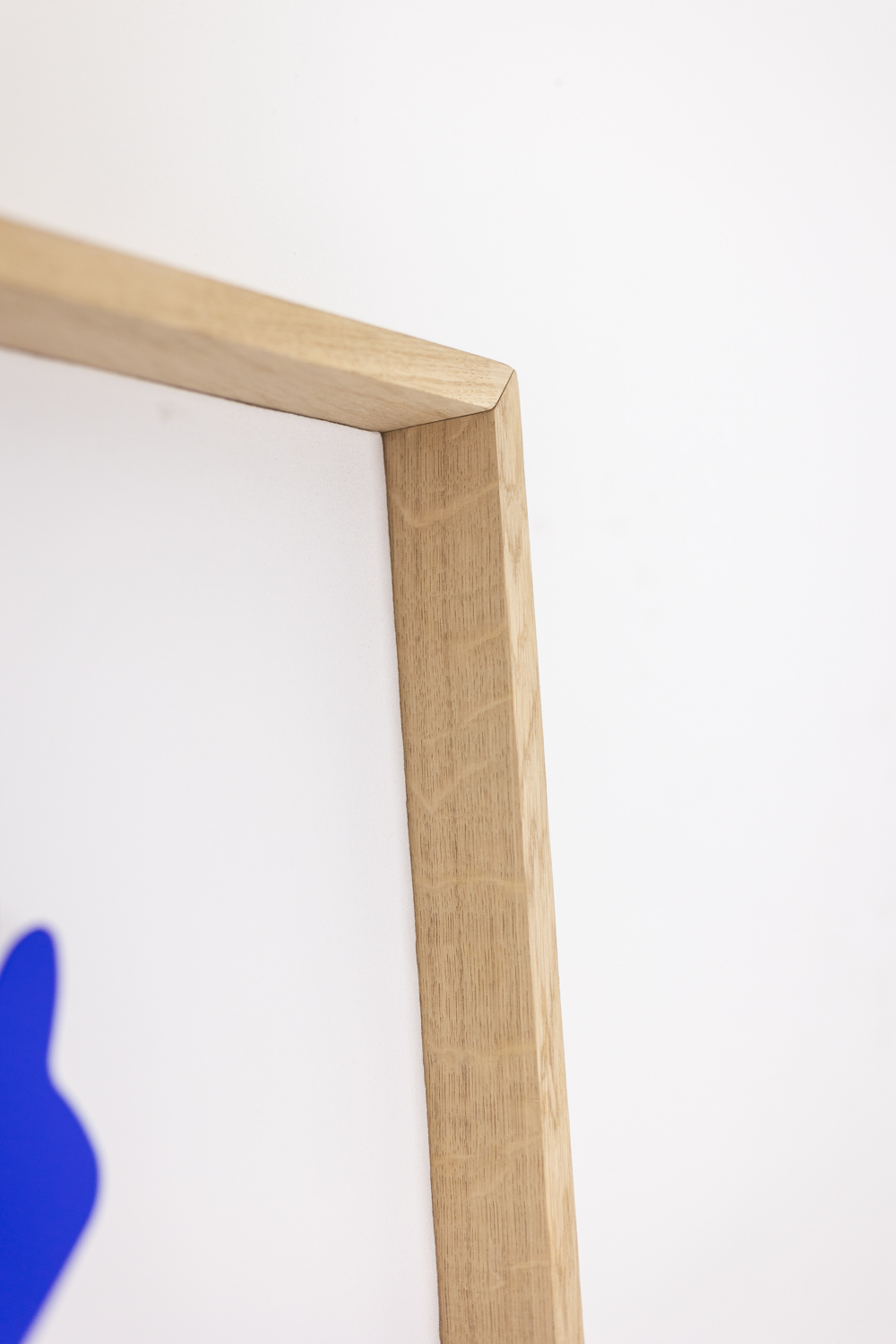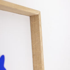 This Blue Lacquered Metal Panel presents a striking female figure in cut metal. The blue lacquer finish adds depth, contrast, and strong visual presence. A light oak frame highlights the artwork and adds natural warmth.