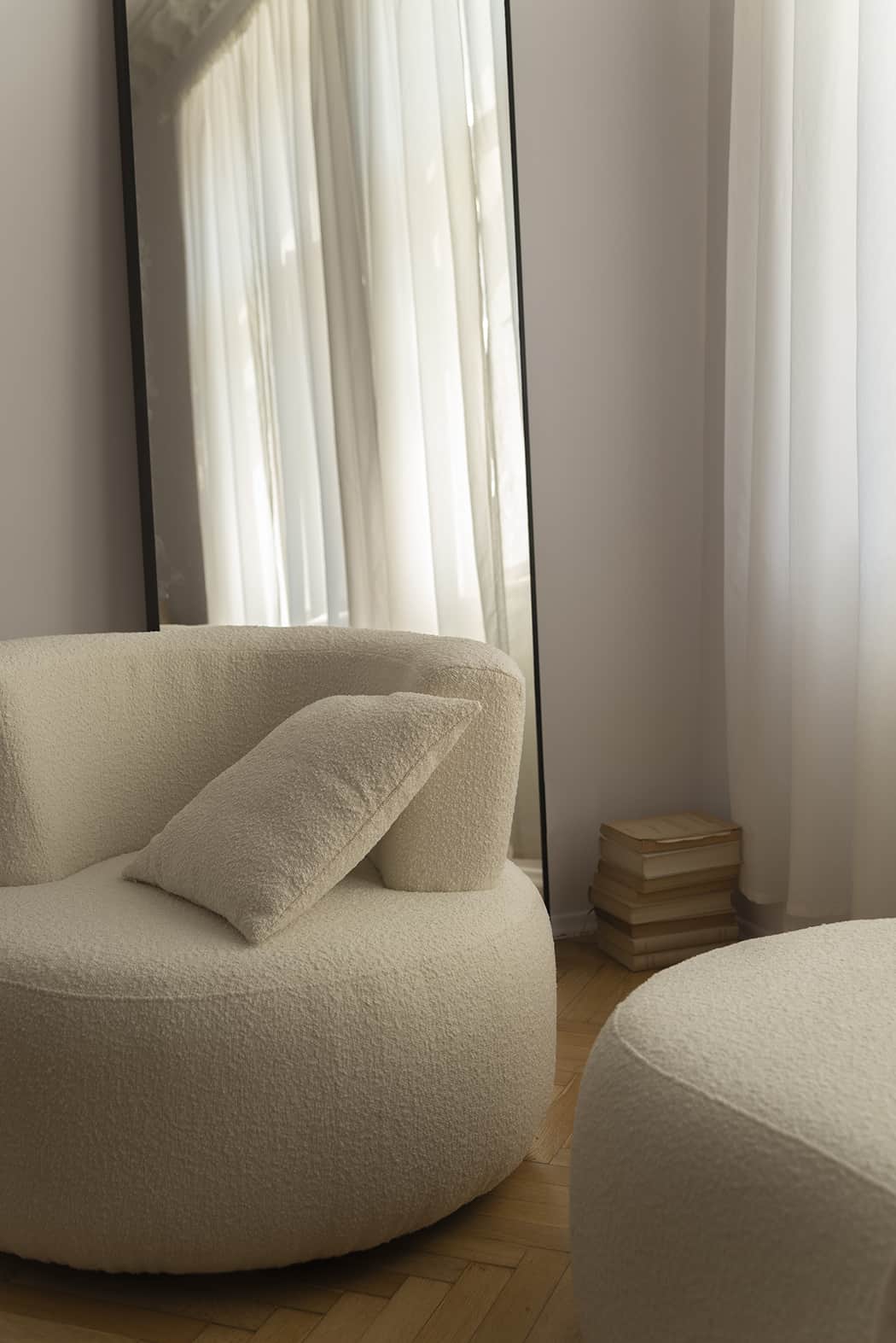 This Boucle armchair has a deep seat and comfortable backrest will make you feel pleasantly cuddled. Subtly recessed legs give the impression of hanging the armchair in the air. Classic design in a modern version will allow it to fit into many architectural trends. Please also check out our boucle sofa.