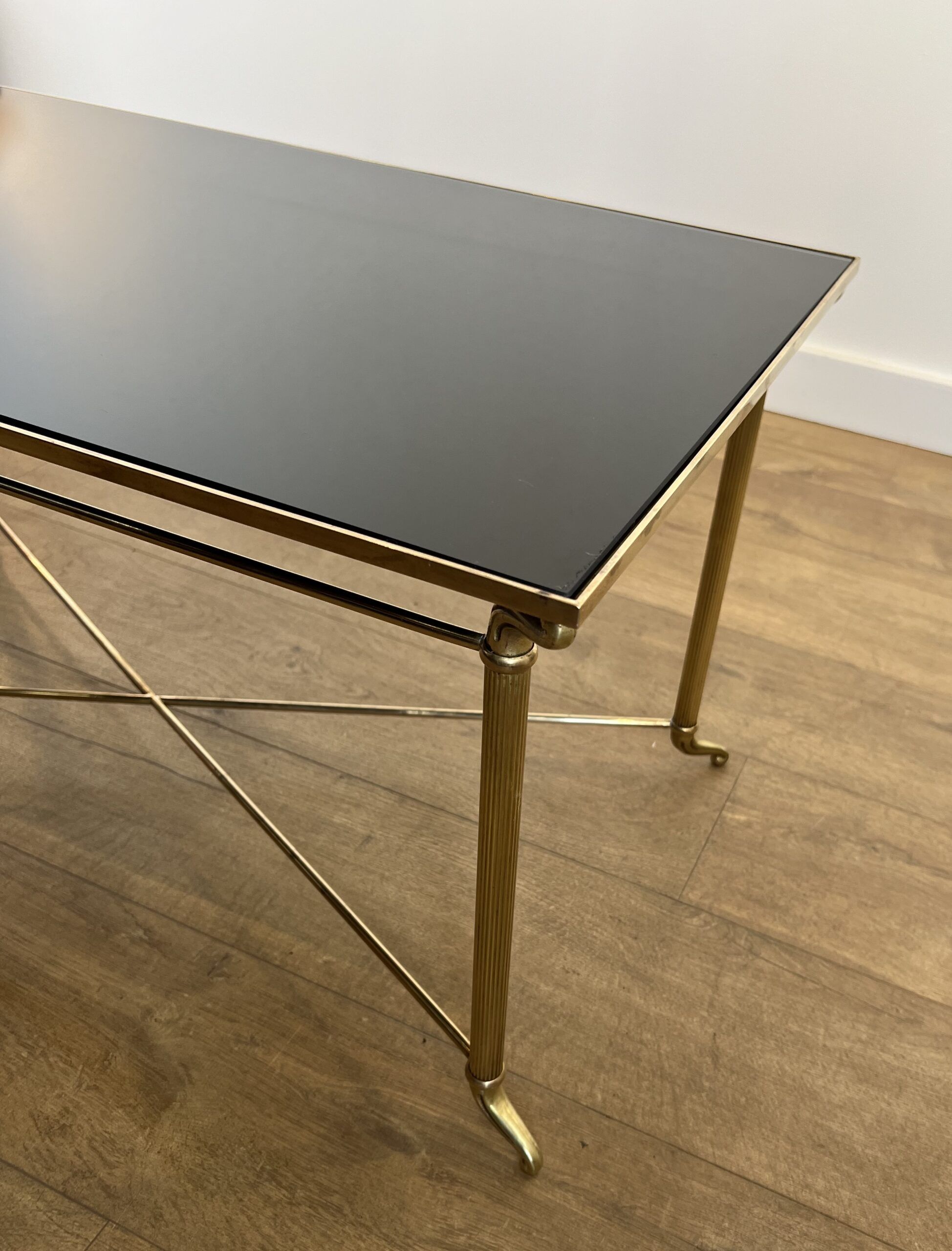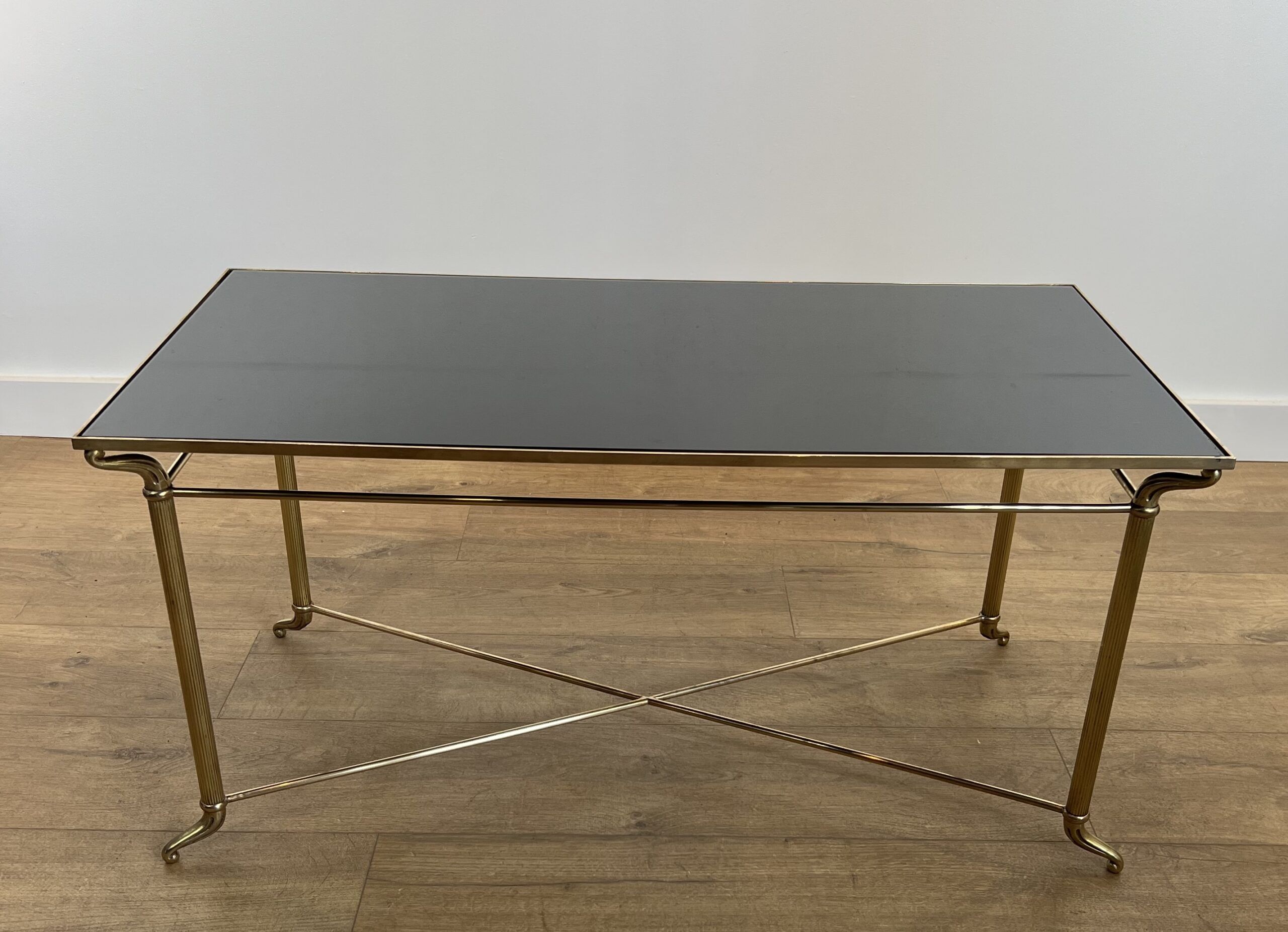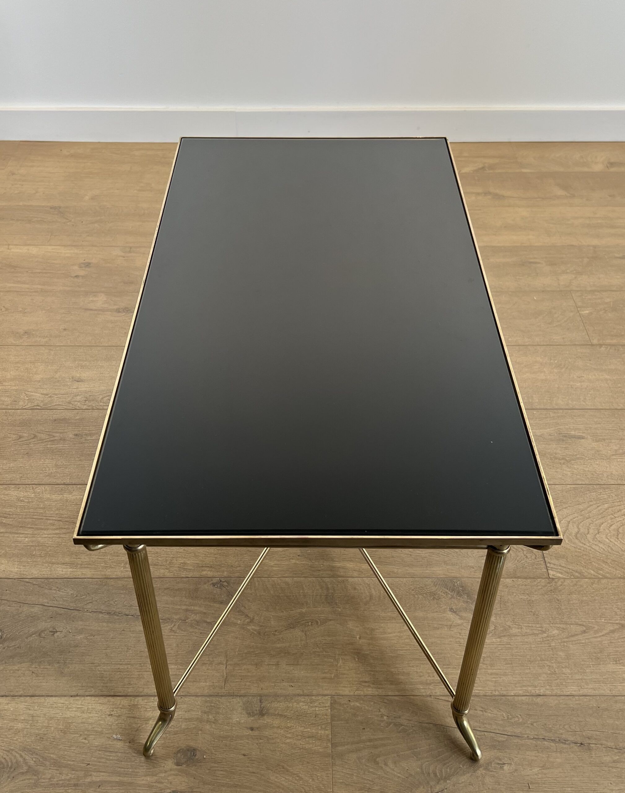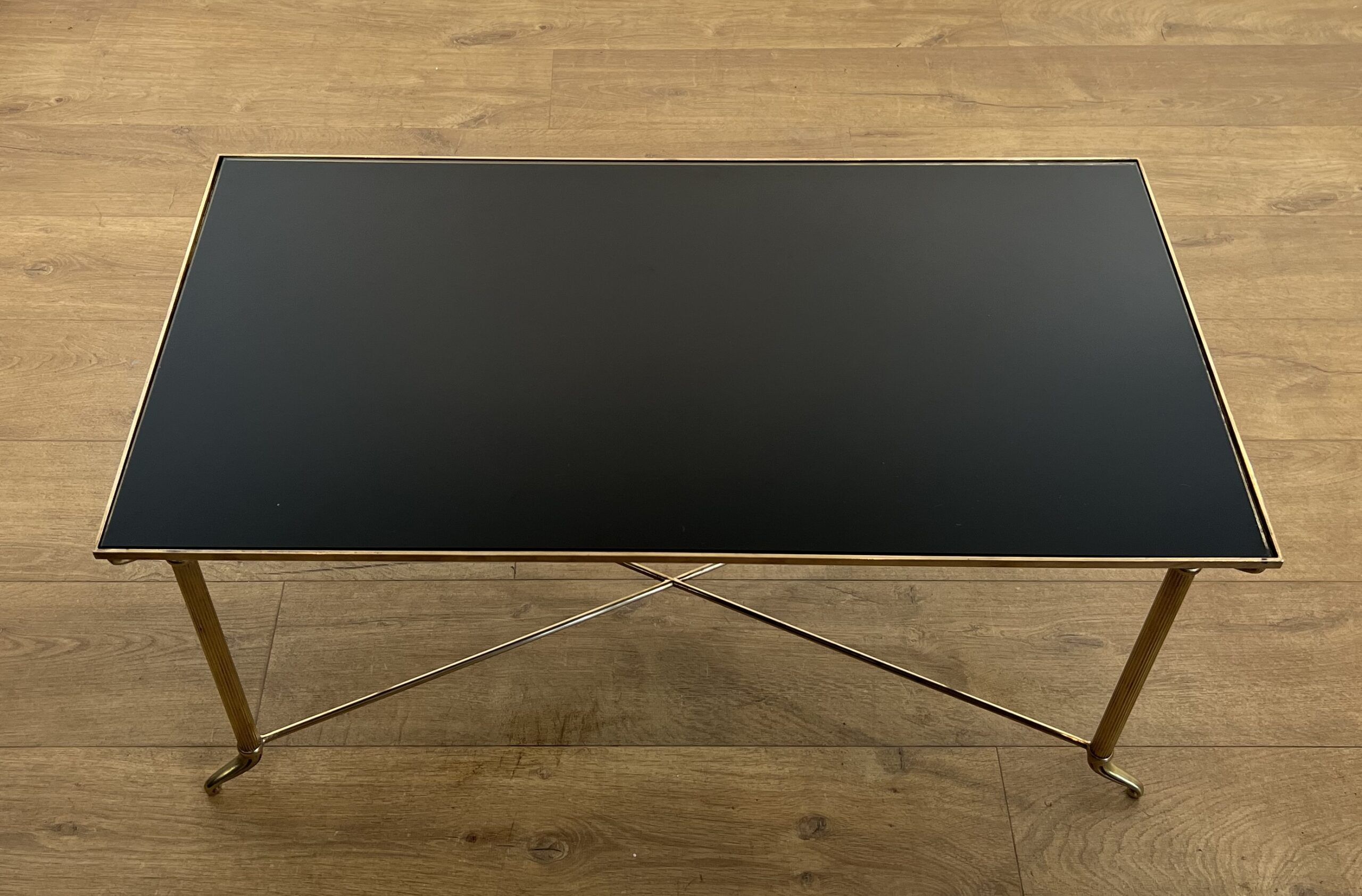 Brass Coffee table with Black Lacquered Glass Top in the style of Maison Jansen