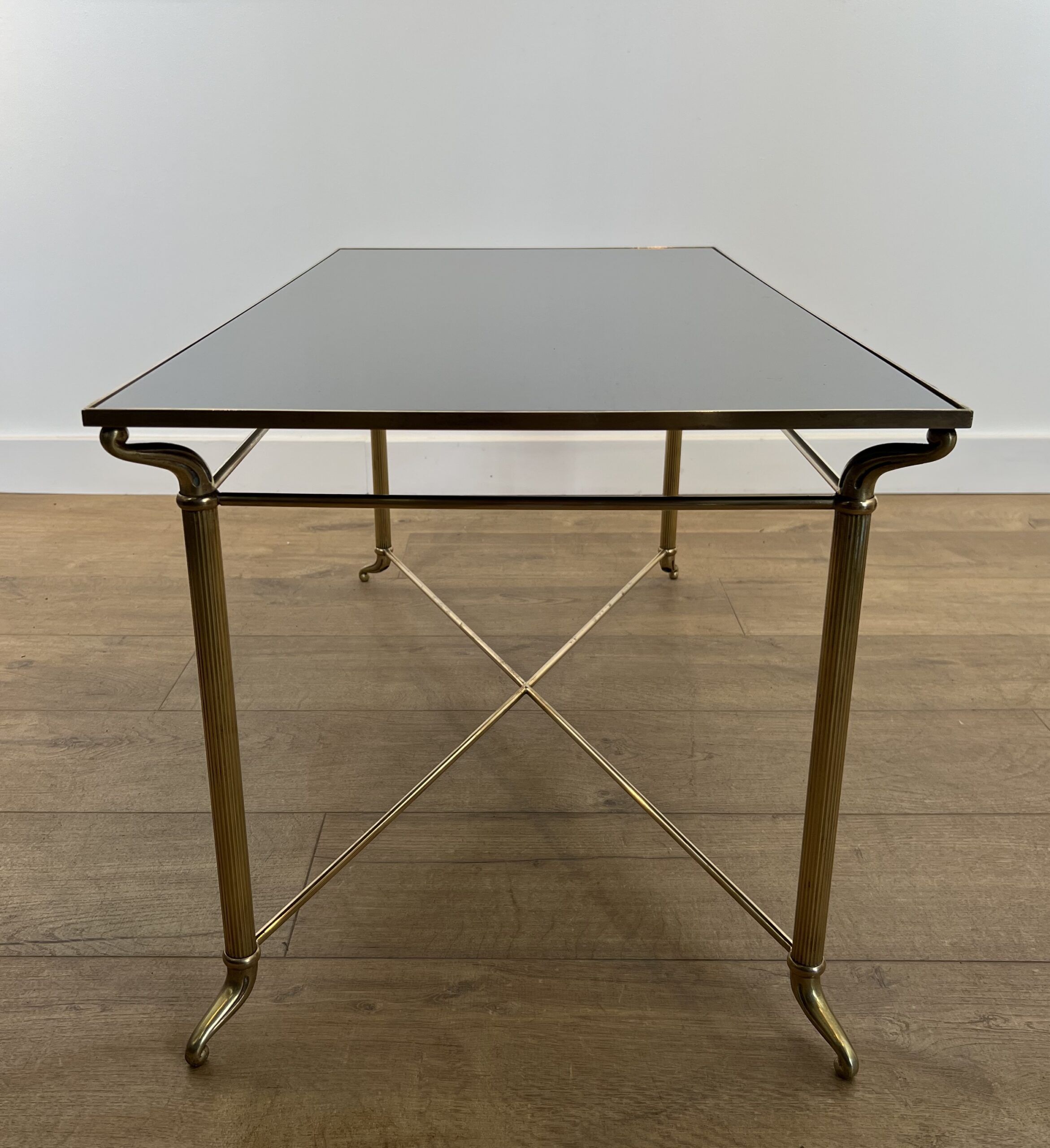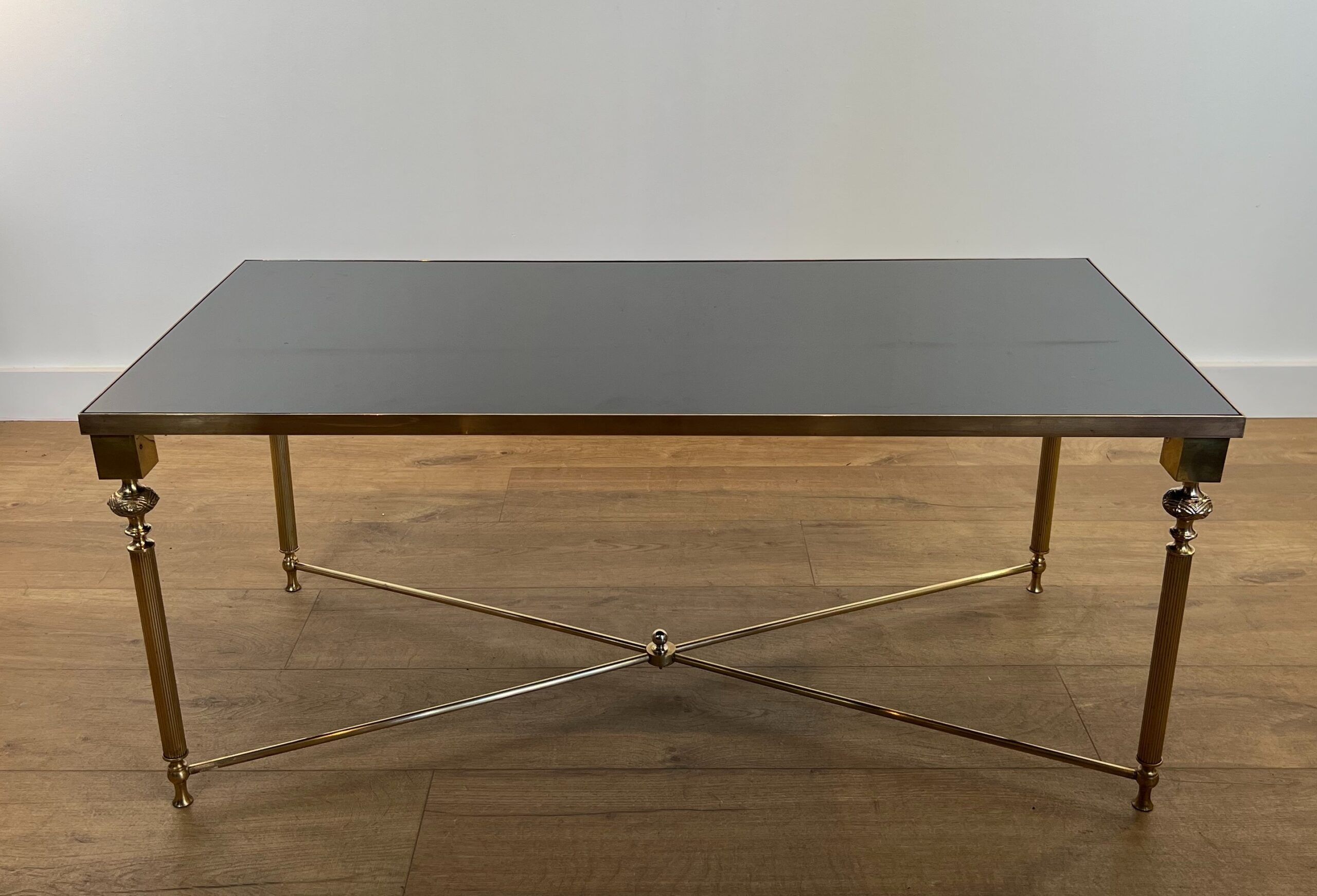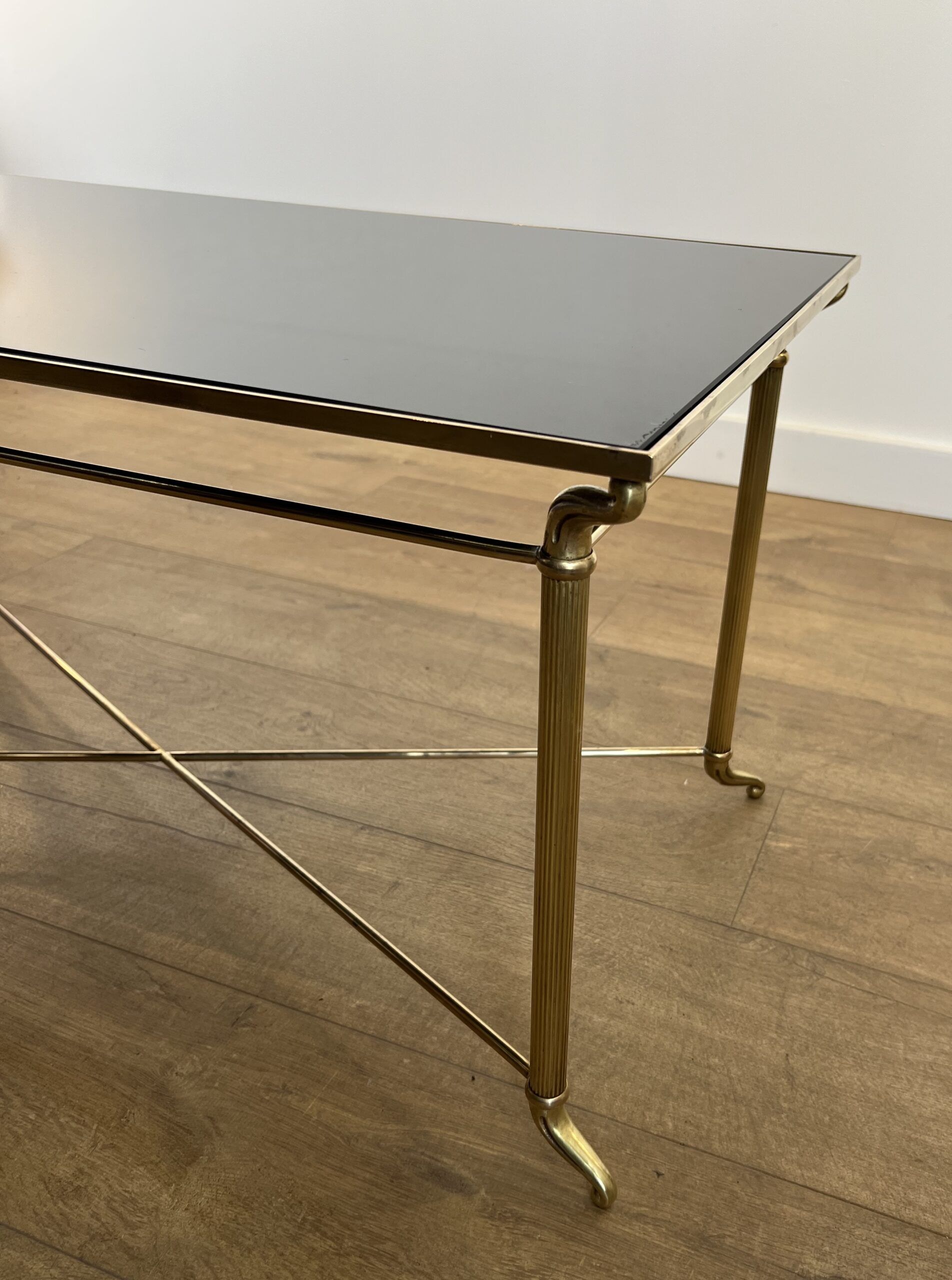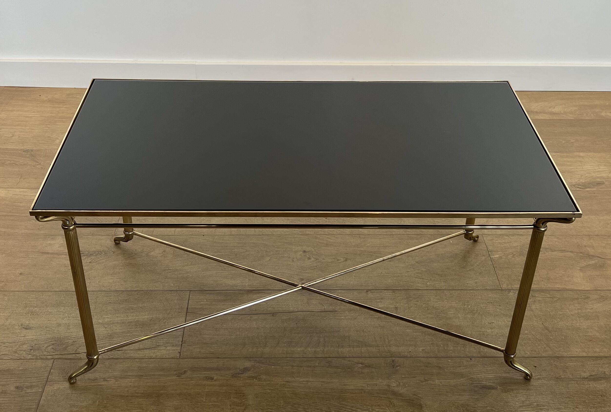 Brass Coffee table with Black Lacquered Glass Top in the style of Maison Jansen