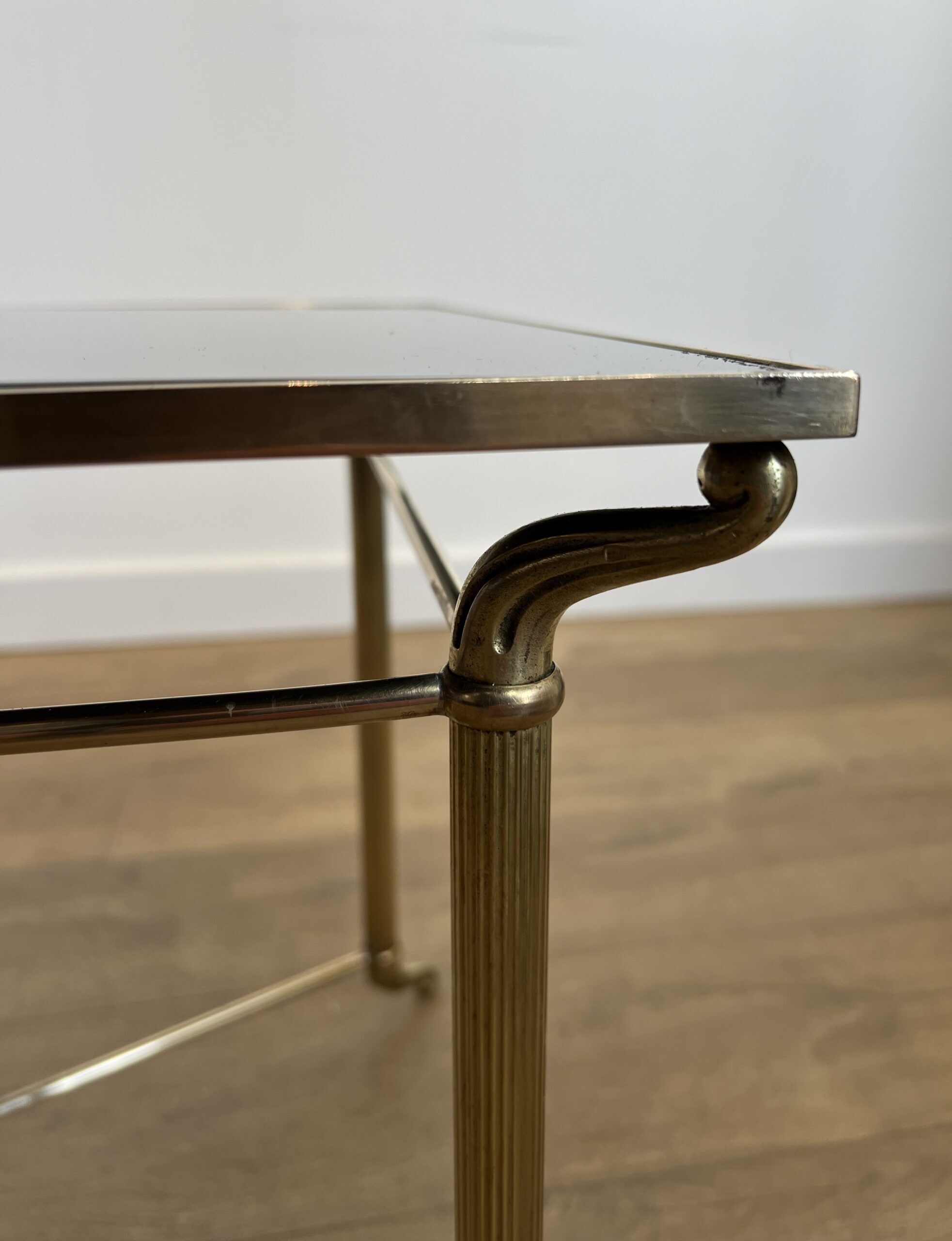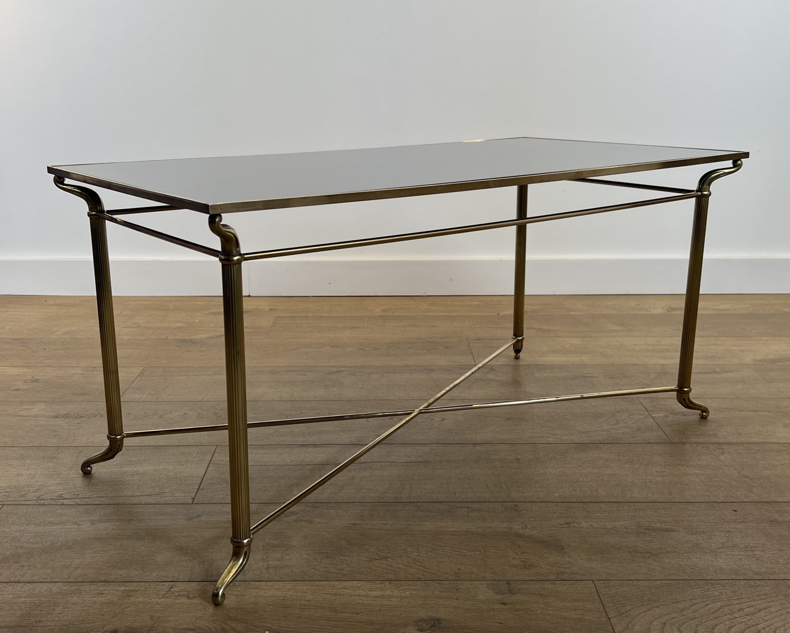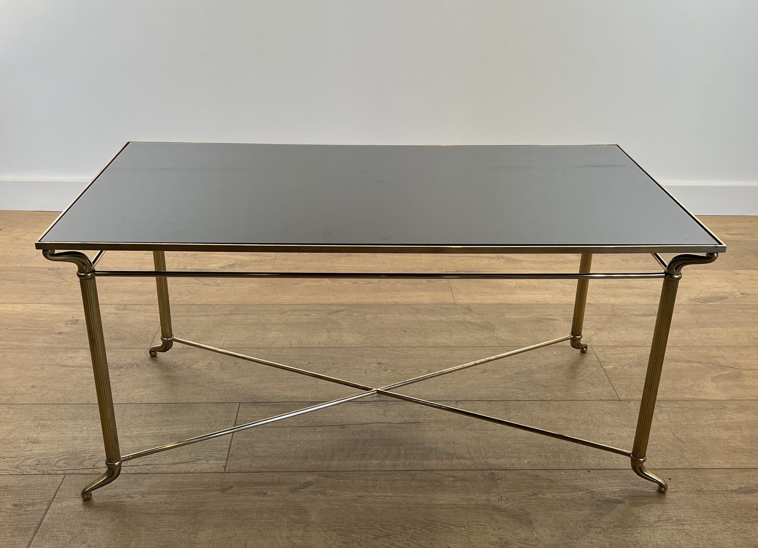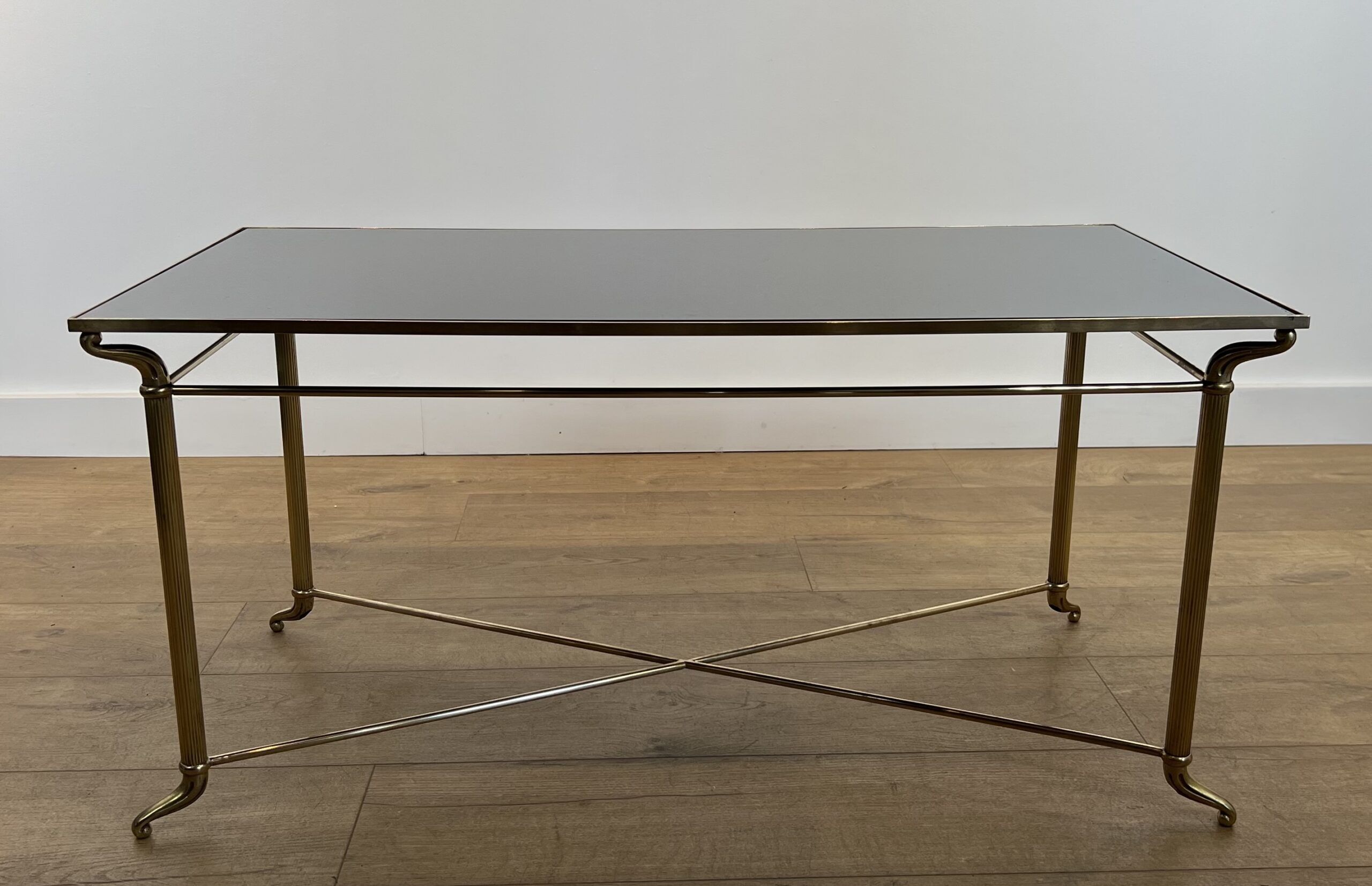 Brass Coffee table with Black Lacquered Glass Top in the style of Maison Jansen