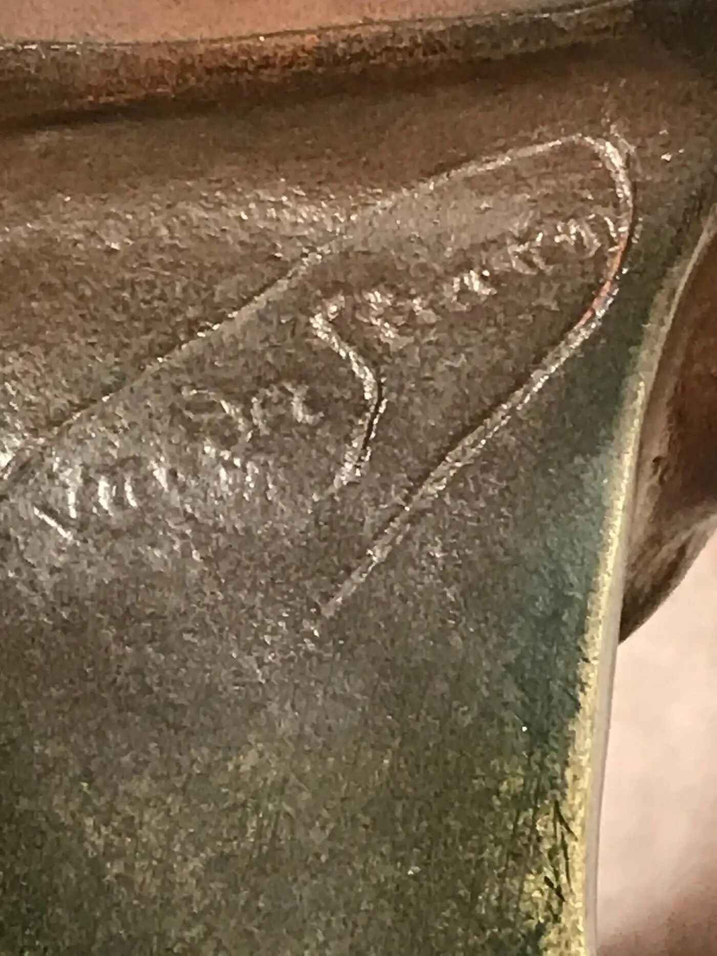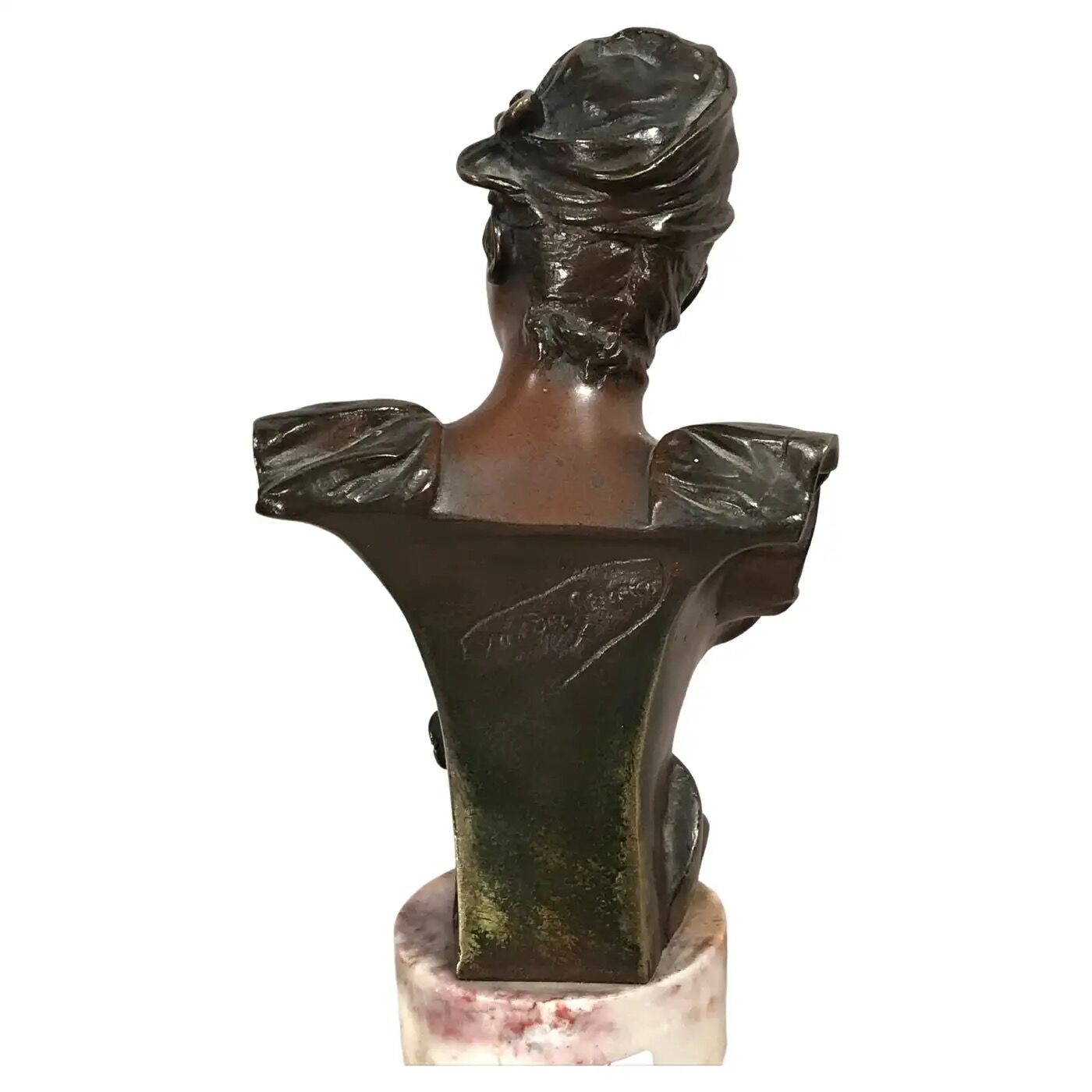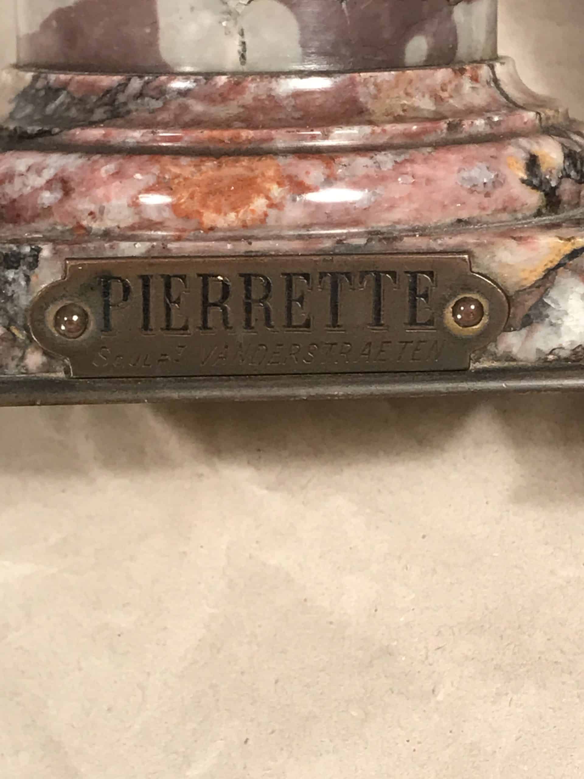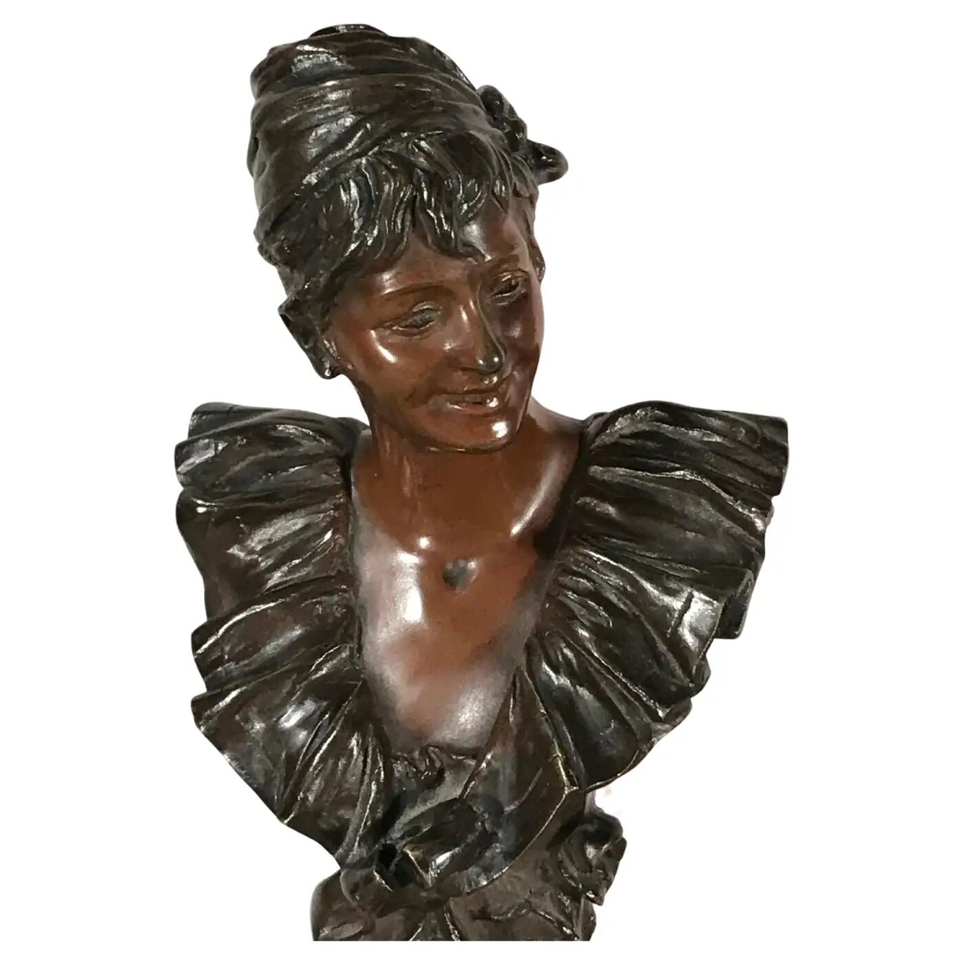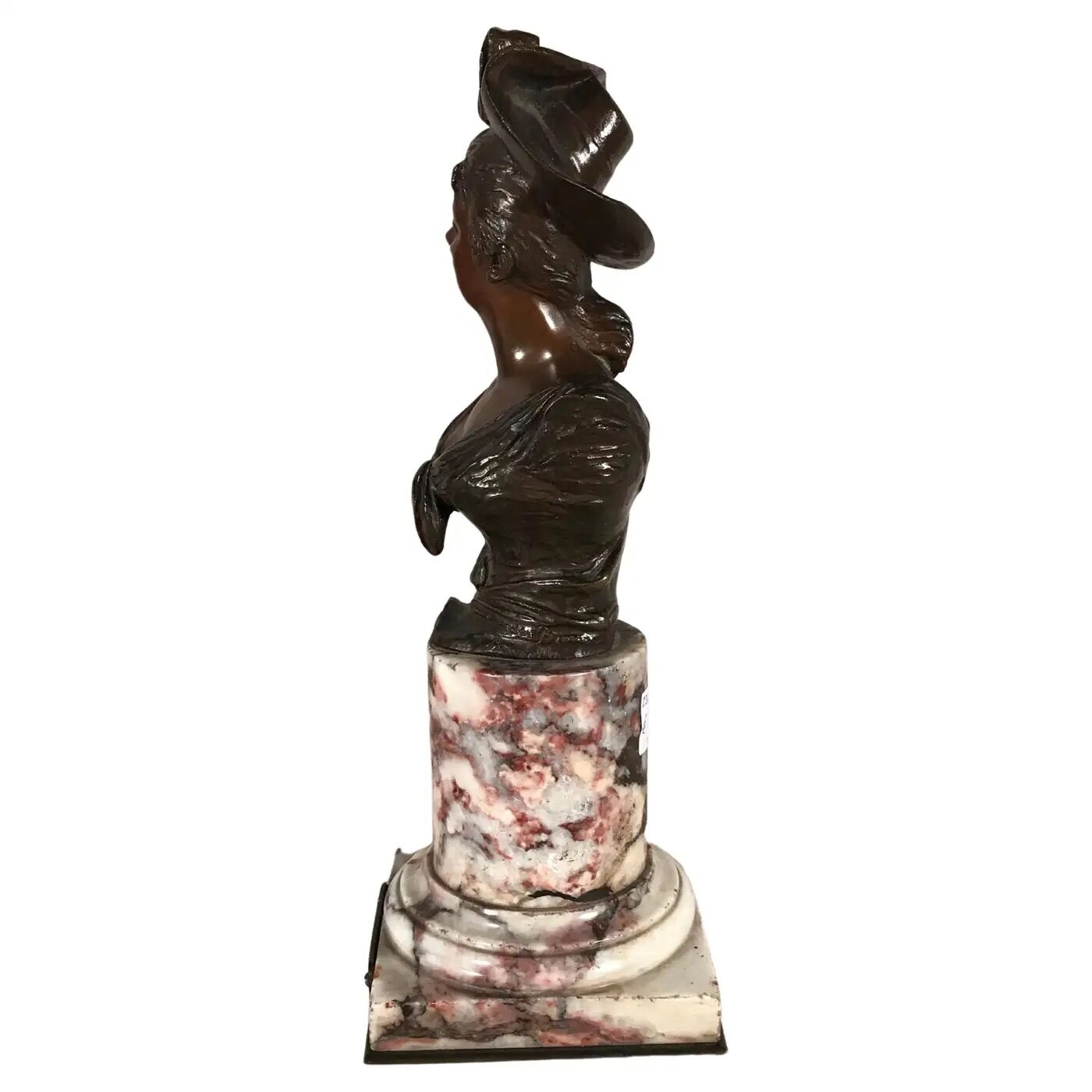 The Belgium artist Georges van der Straaten (born 1856) designed the two bronze busts at the end of the 19th century. One is titled “Bergère” (shepherdess), the other one “Pierette”. The two cold-painted bronze busts stand on their original marble plinth. They are signed and one has a foundry mark from Bruxelles.