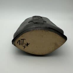 An incised signature confirms the piece as an original studio work. The vase remains in excellent vintage condition. This Brutalist Black Ceramic Vase suits minimalist, brutalist, and wabi-sabi interiors.