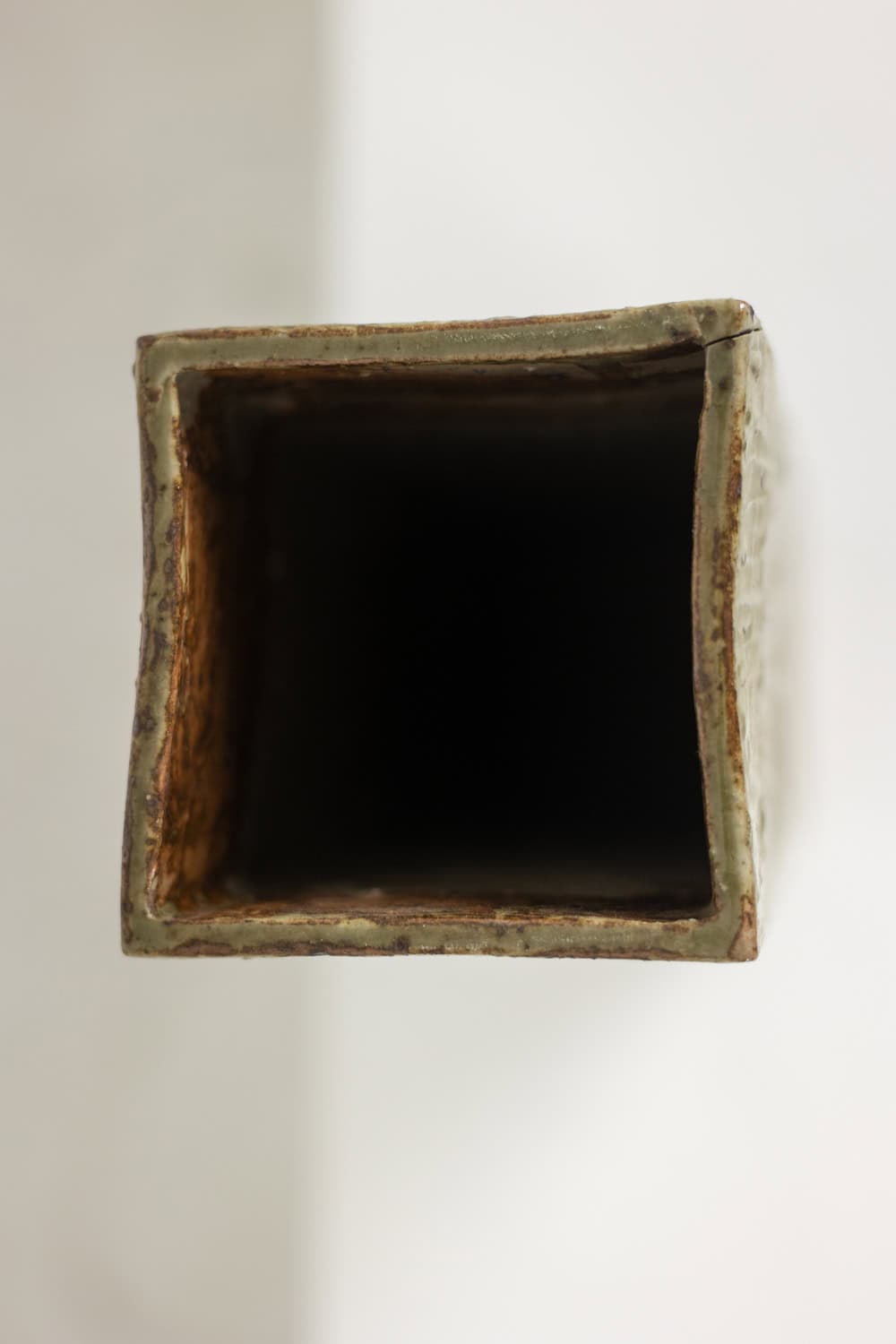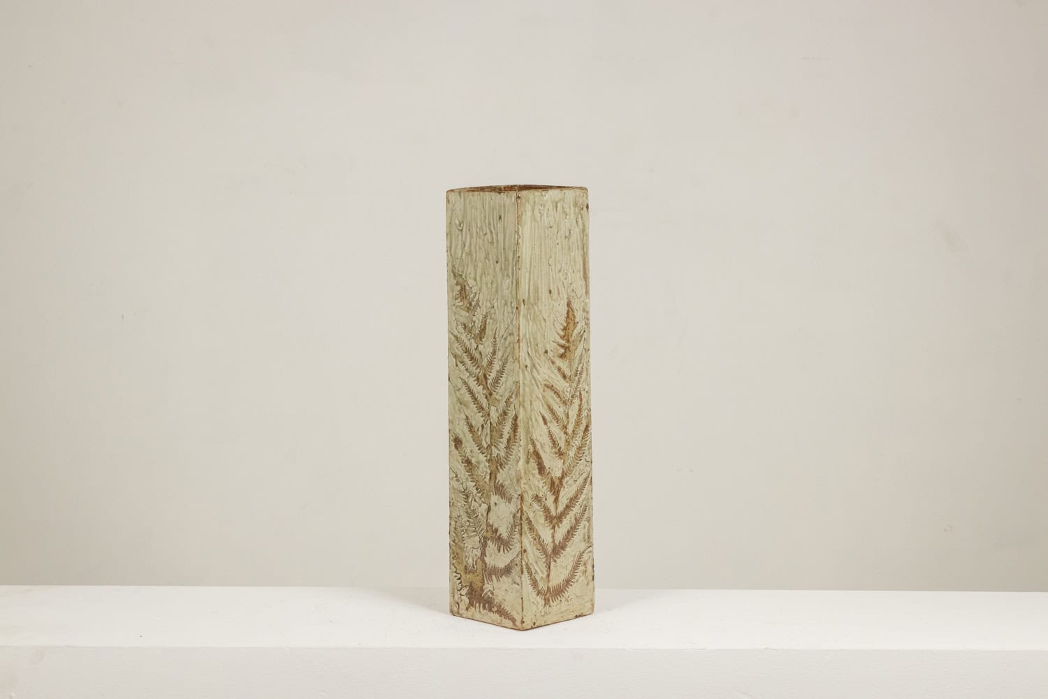 Discover this striking Brutalist Stoneware Vase, crafted in the 1970s with bold architectural presence. The square-section form emphasizes strong geometric lines, while the scarified surface adds raw texture and depth.