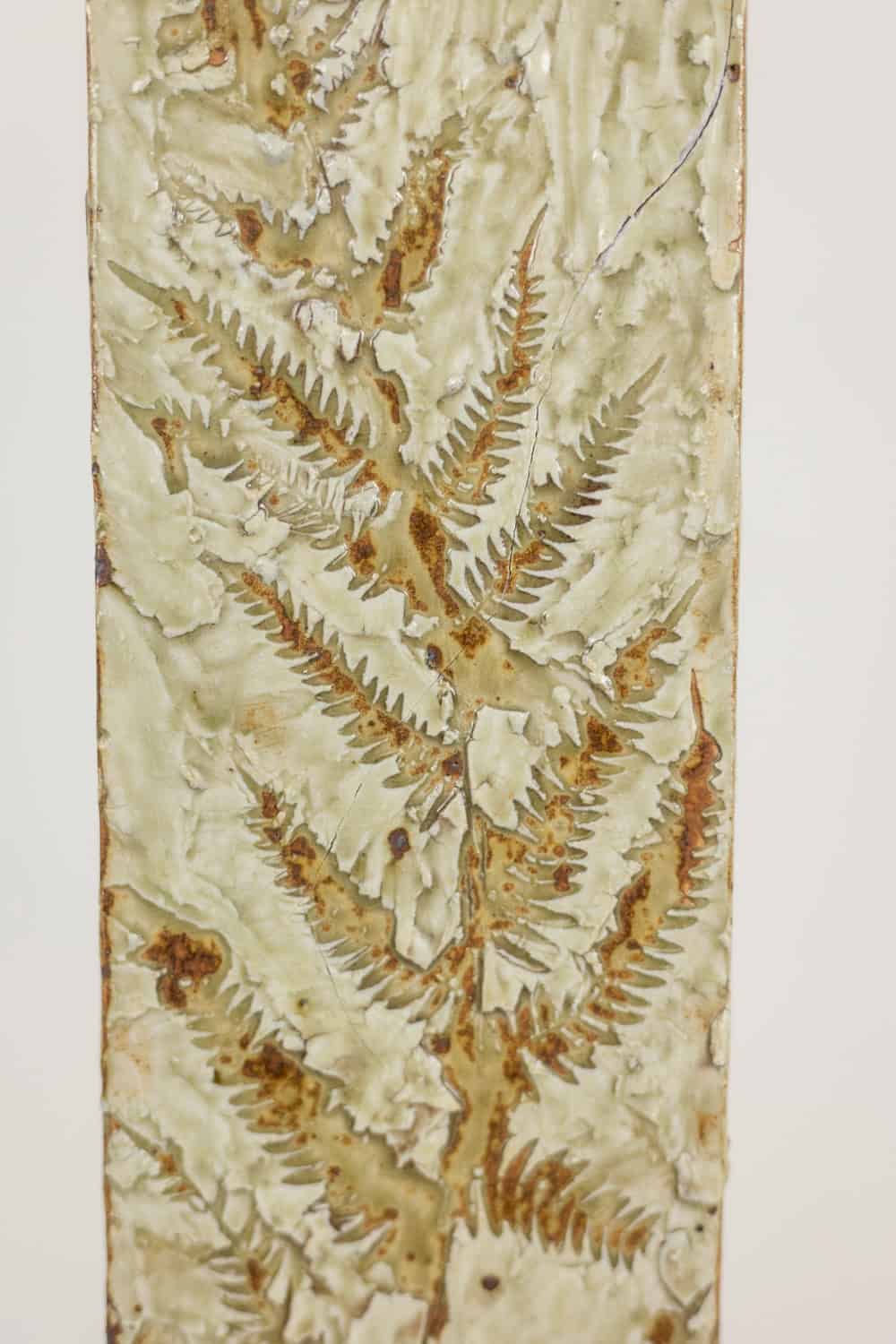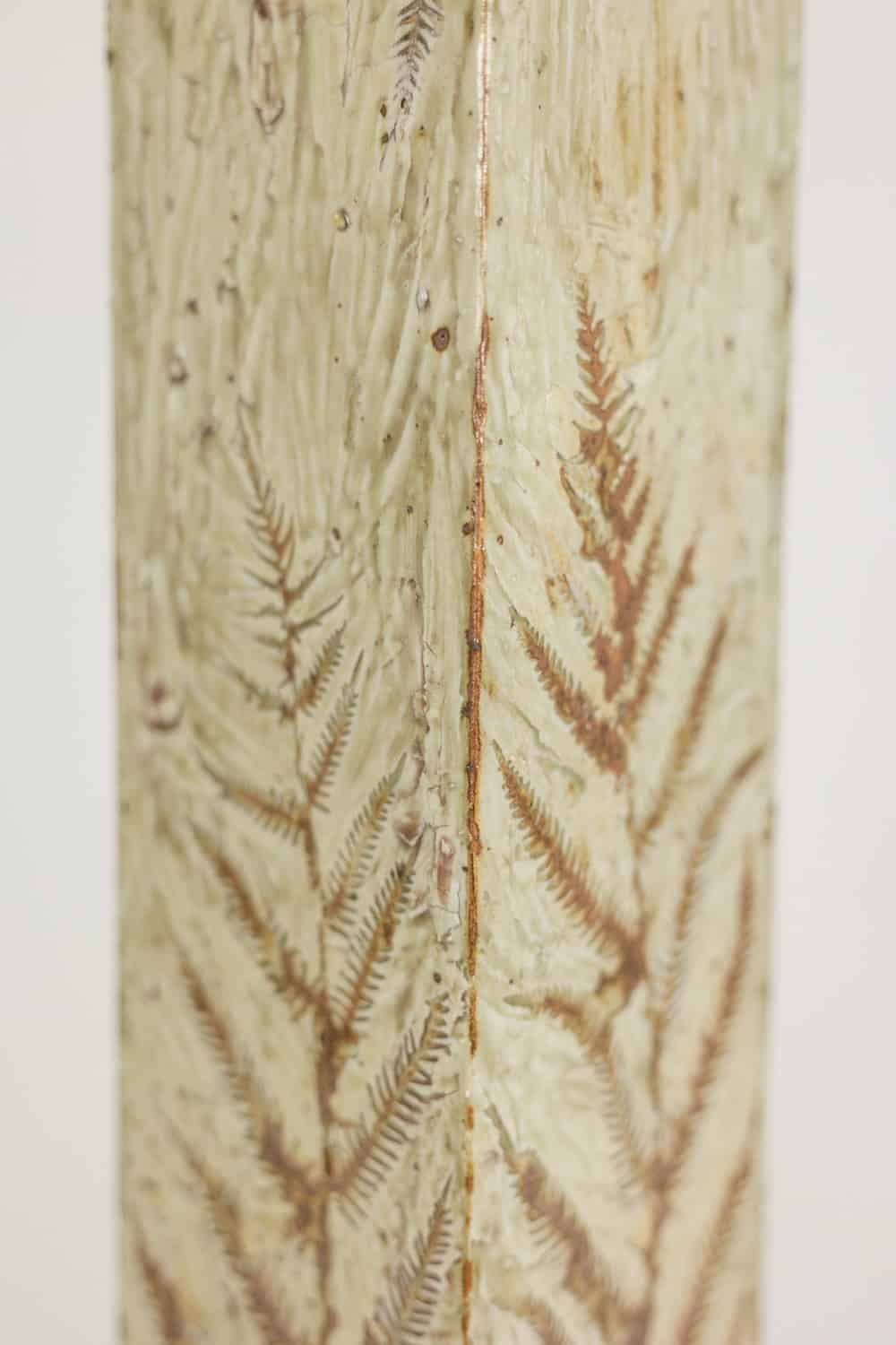 Artisans crafted this Brutalist Stoneware Vase in high-fired stoneware and applied a rich glaze. Incised plant motifs contrast with the rugged surface and create organic movement. The design reflects the sculptural energy of 1970s Brutalist ceramics.