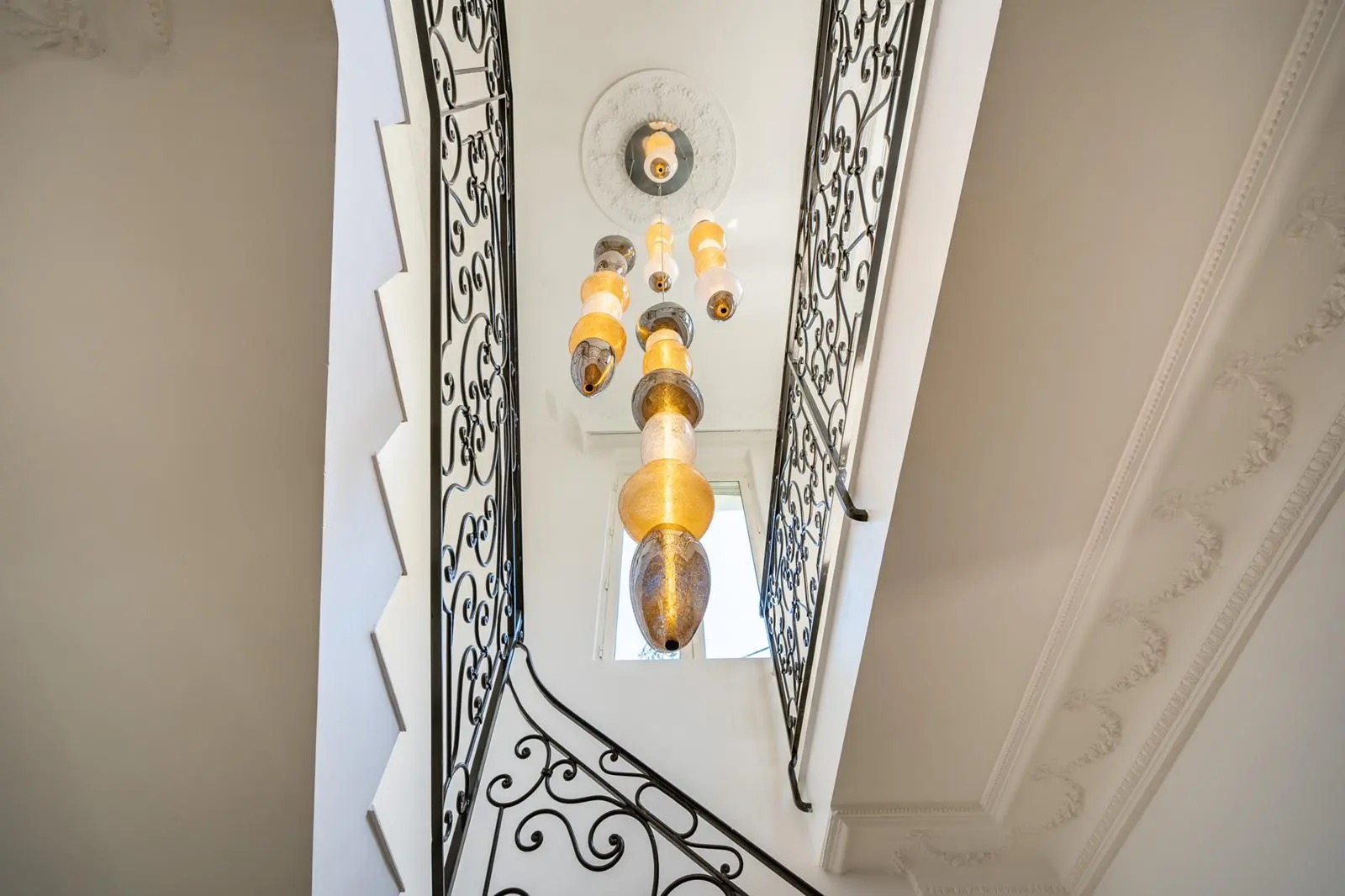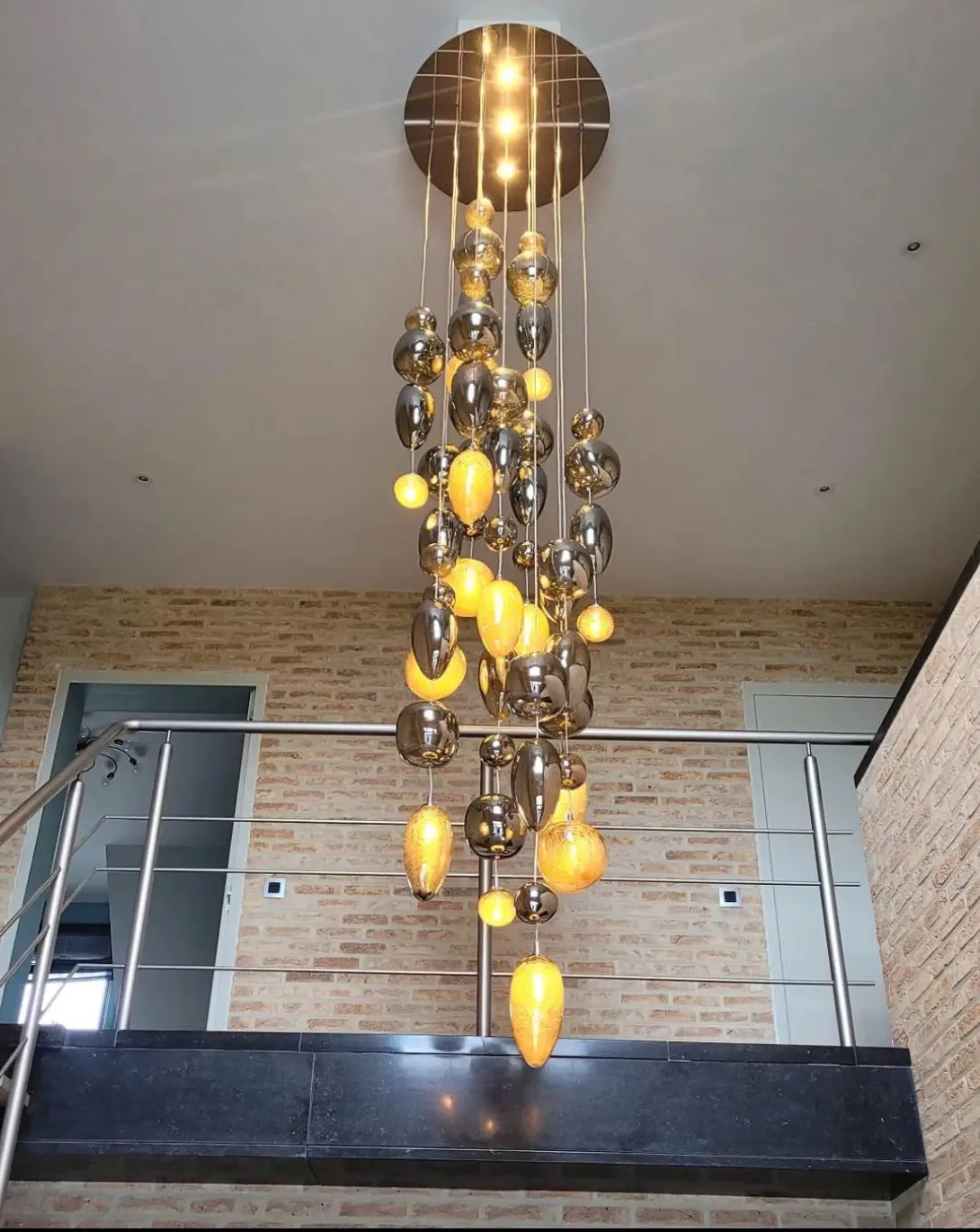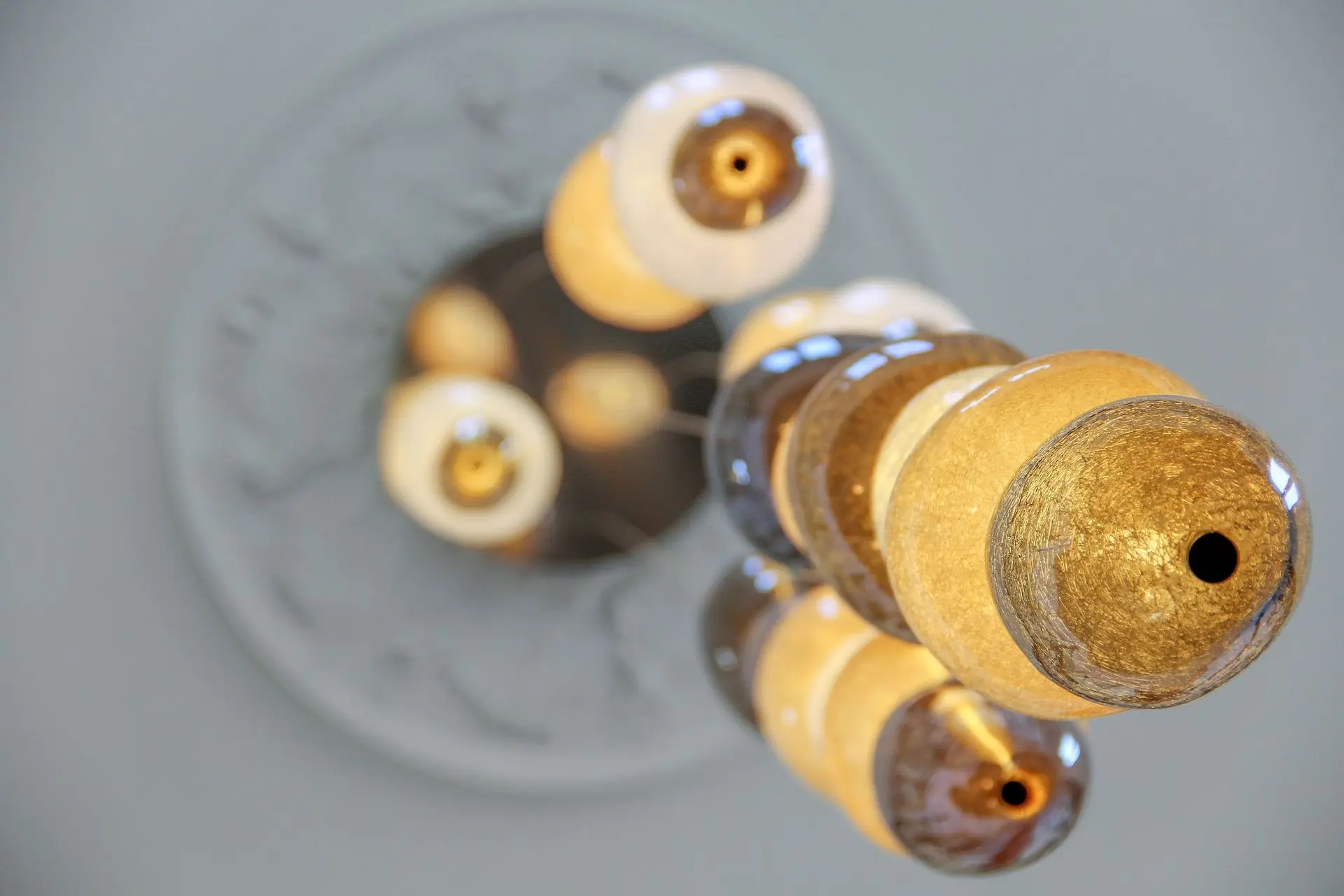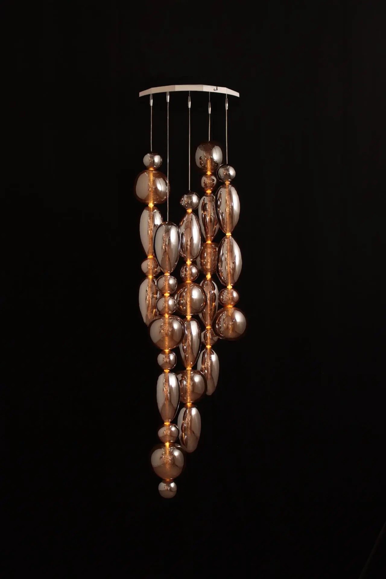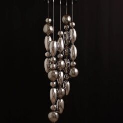 This stunning Chavana pendant light creation is a variant of the Vallons Obscurs Pebbles, maintaining the same surprising on/off light effect. Each glass pebble contains delicate glass filaments that appear and capture light in a mesmerizing way, offering both artistry and innovation in illumination.