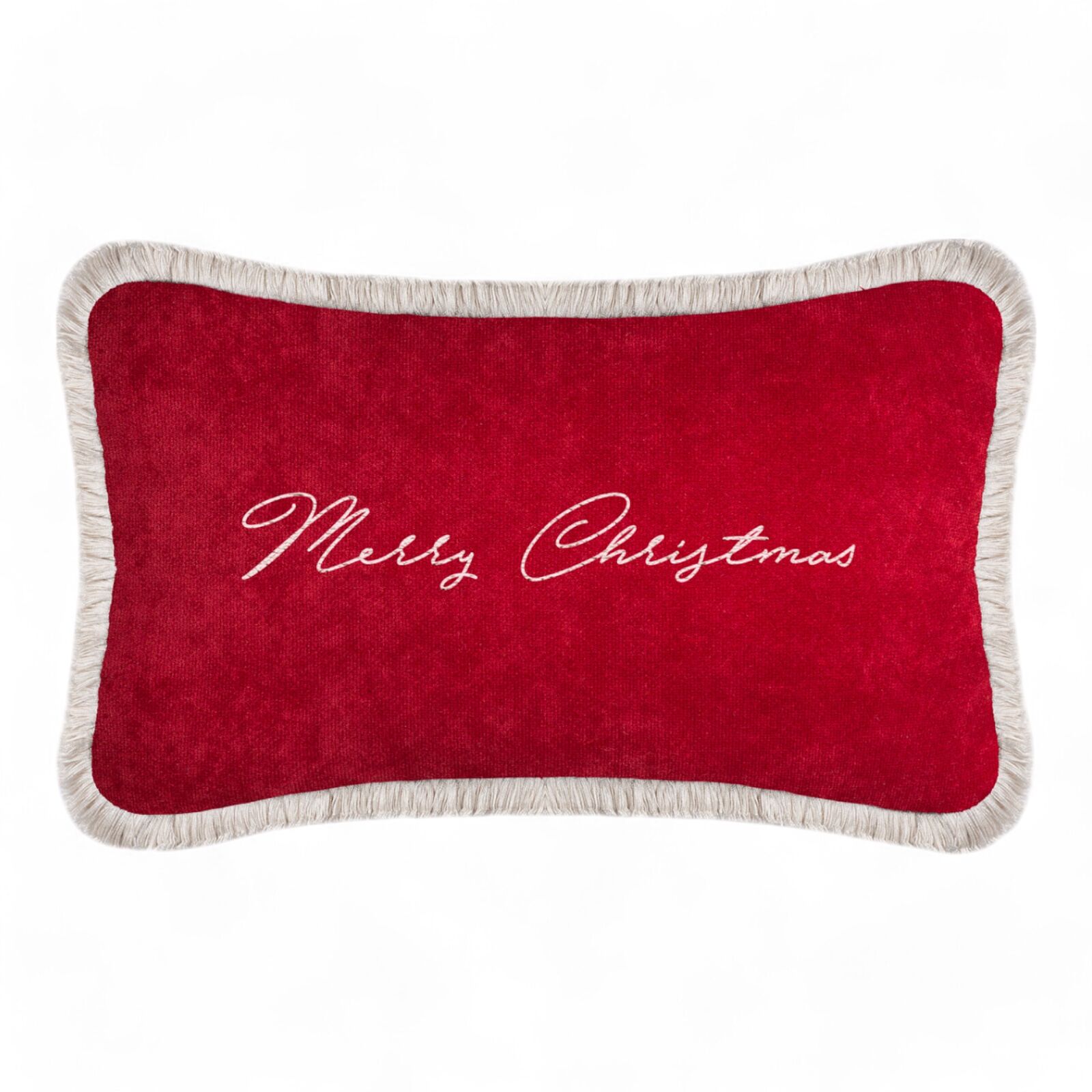 Christmas Happy Pillow Red Velvet and White Fringes
