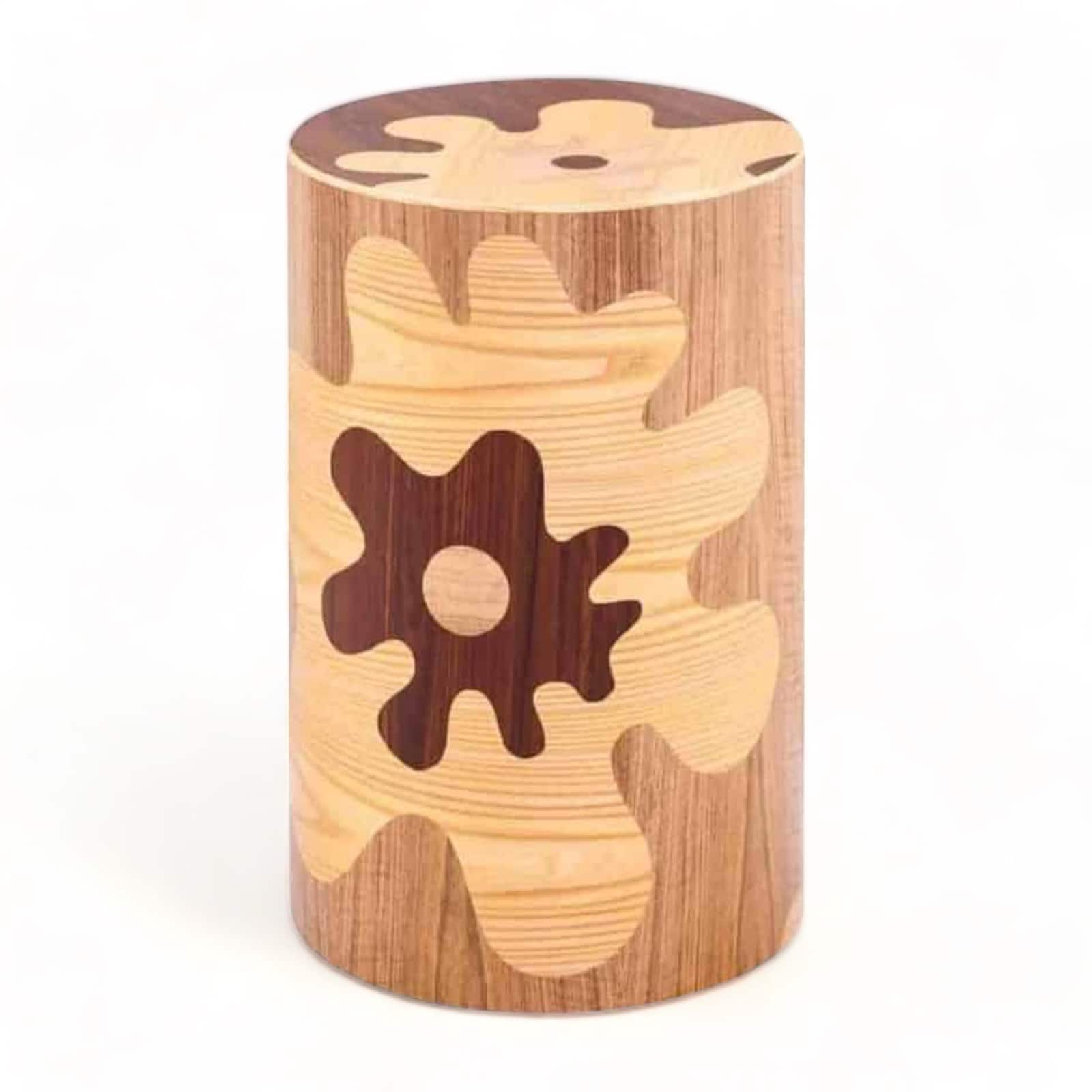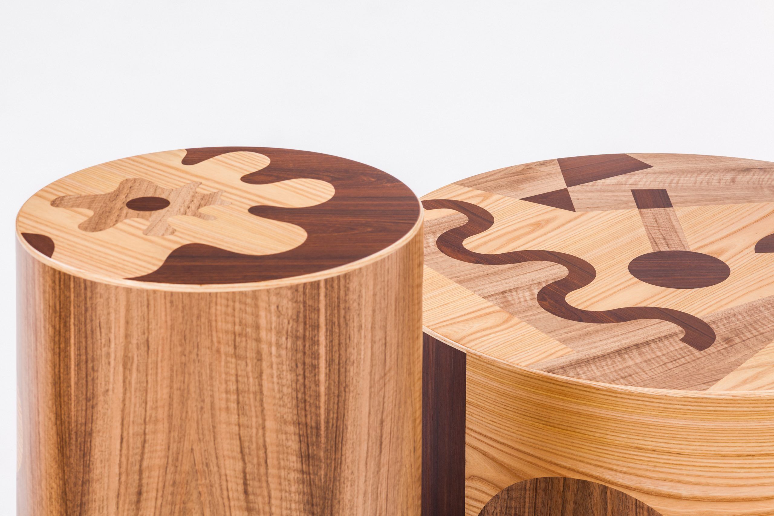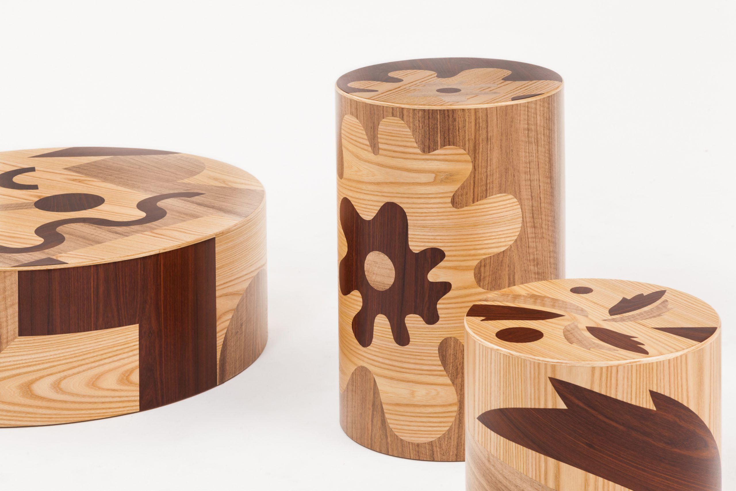 Furthermore, the decorative look of the contemporary coffee table is provided by a composition of three different types of inlaid wood that generate naturalistic and abstract figures with a neo-pop character. Additionally, the wood confers a poetic and organic feeling on this object. It is like a geometrized tree trunks brought inside the home.