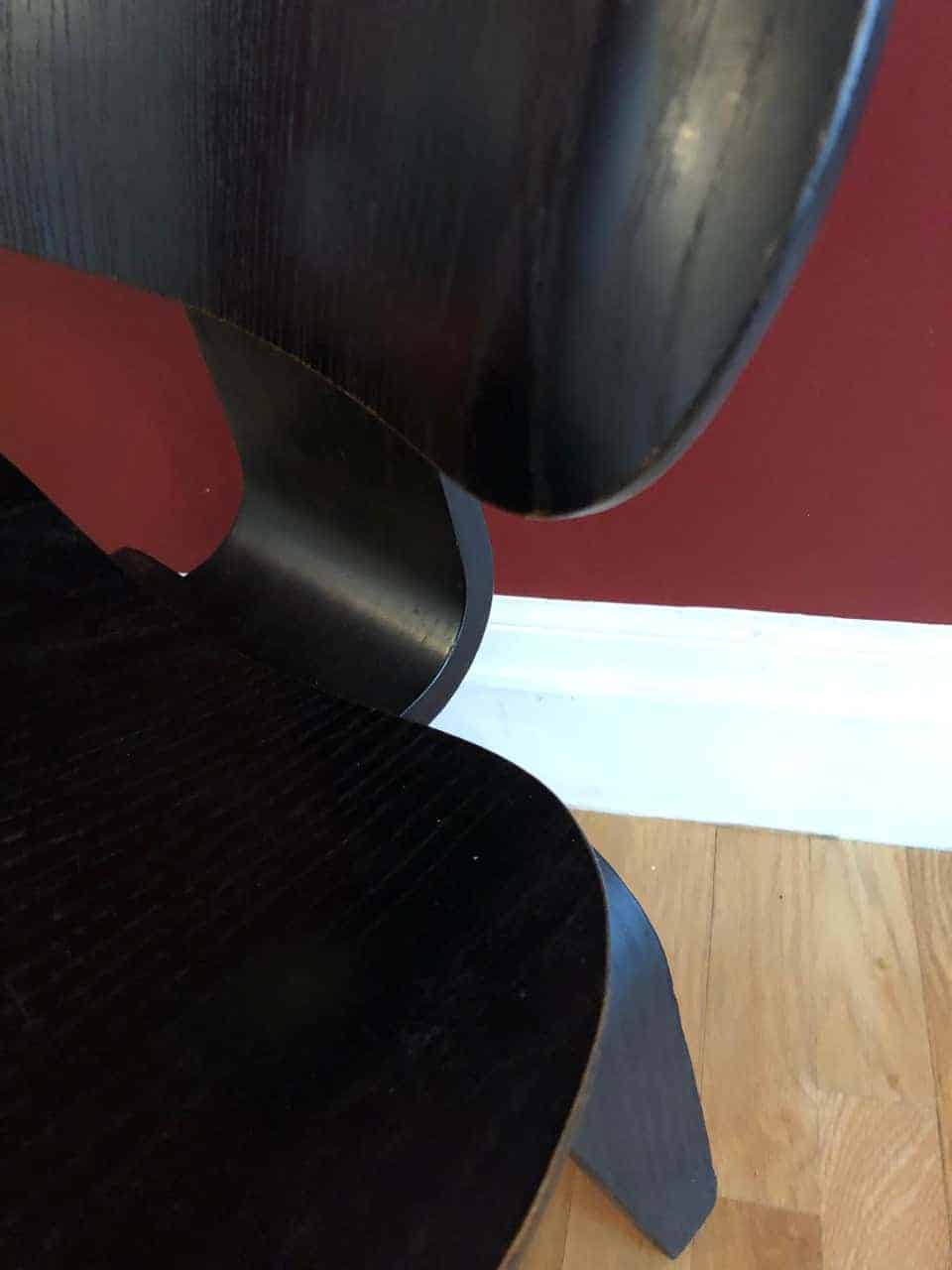 This iconic Eames LCW lounge chair comes in black stained plywood. Charles and Ray Eames designed the chair 1945-46 , Manufactured by Evans / Herman Miller.