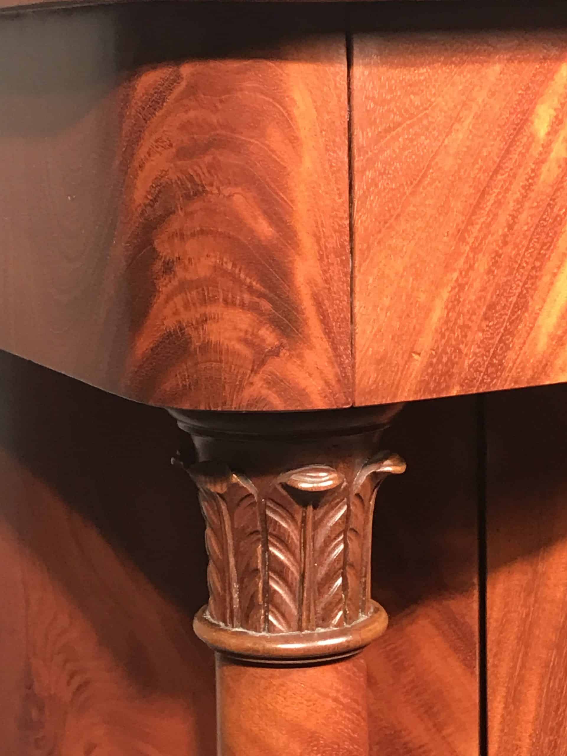 It was made during the so called French Restoration, a style which marks the reaction against the gaudy spectacle and monumental pomp of the Empire. It fostered an elegance, refinement and subtlety that had been obscured by Napoleonic grandeur. Elegant yet unpretentious harmony characterizes Restoration furniture. It still shows the influence of the preceding Empire style but is not as pompous. The German and Austrian Biedermeier style show a similar design language.