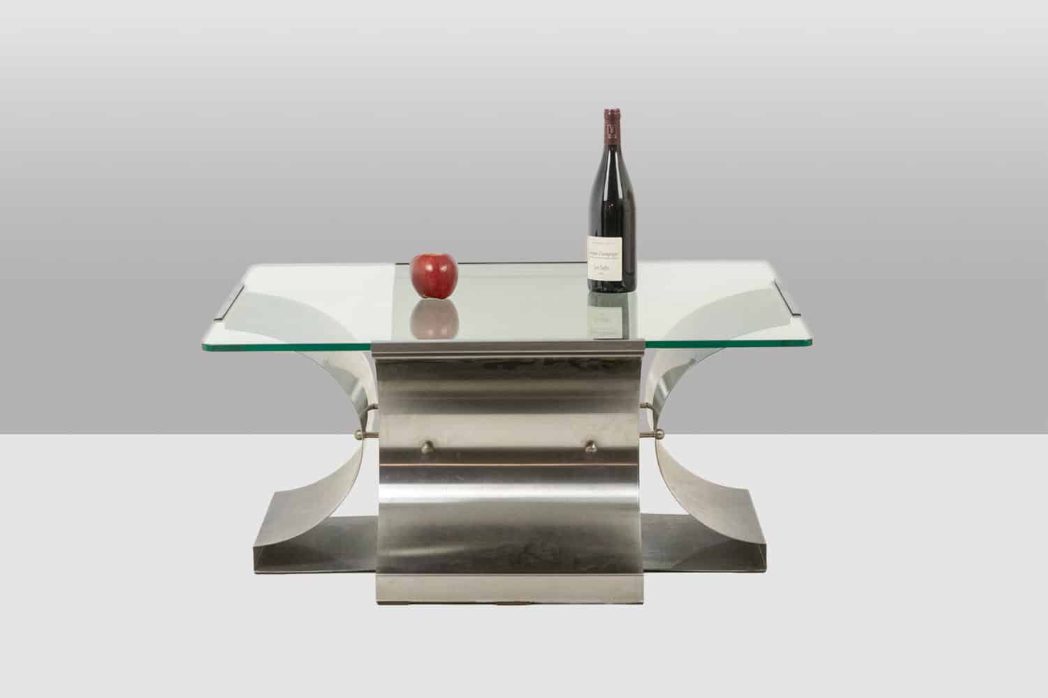 François Monnet Coffee Table, Brushed Steel, France, 1970s