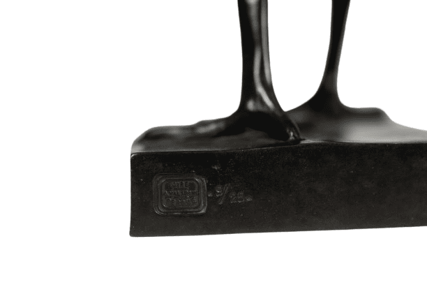 Dive into the world of François Pompon with the bronze sculpture “Poule,” a masterful creation that showcases the artist’s skillful interpretation of a hen. Crafted in 2006, this reproduction captures the essence of Pompon’s original work, with its lifelike form and exquisite detailing. The brown patina enhances the texture and warmth of the bronze, adding depth to the sculpture. Stamped with the prestigious “cire perdue C. Valsuani” foundry seal, this numbered edition (9/25) ensures its authenticity and exclusivity. Bring a touch of artistic sophistication to your space with Pompon’s “Poule,” a timeless piece that celebrates the beauty of nature in bronze.