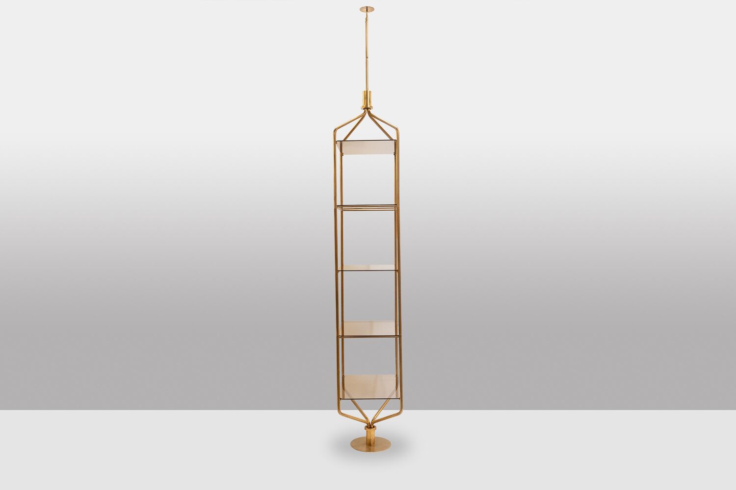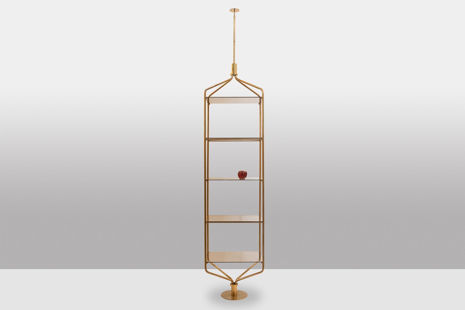 Free-standing Shelf – 1970s French Brass and Smoked Glass Design