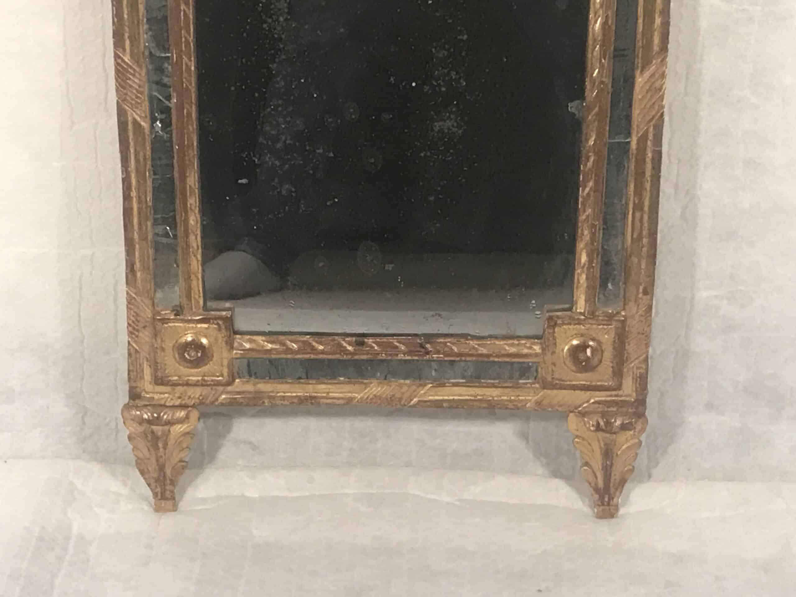 While some glass pieces of the frame may show signs of age with minor cracks, the original mirror glass itself remains in remarkably good condition, preserving its authentic allure. Whether you’re a collector of antique treasures or an admirer of timeless beauty, this Louis XVI Mirror promises to captivate with its enchanting aesthetics and rich history. Explore the elegance of a bygone era and bring a touch of French refinement into your space with this extraordinary piece.