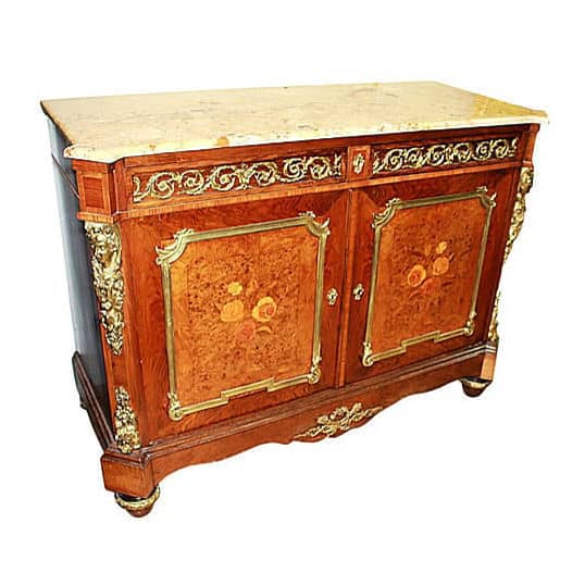 This style brought the return of ornamentation. Gilt-bronze fittings, copper, pewter, ivory, mother-of-pearl inlay, carved and gilded wood, porcelain plaques, and lacquered wood came back into style.
