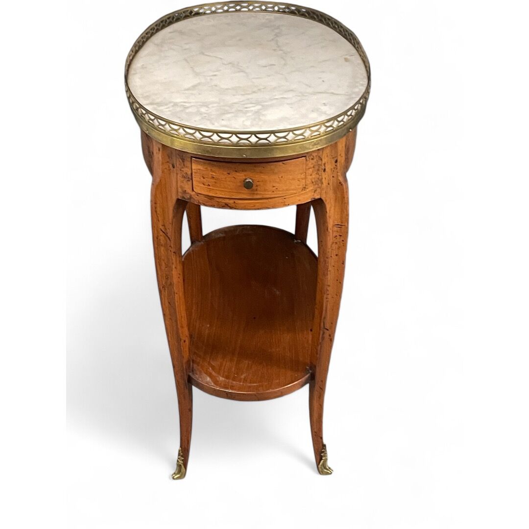 In good original condition, this antique French piece showcases the durability and timeless appeal of 18th-century furniture. The rich walnut contrasts beautifully with the sleek marble, while the brass railing offers a subtle decorative detail. This side table captures the Directoire era’s blend of elegance and functionality, making it a valuable addition to any collection. Perfect for those who appreciate fine antique furniture and French historical design.