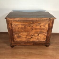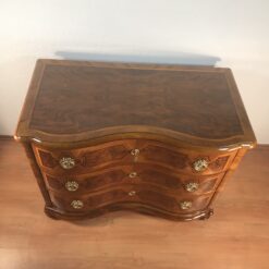The chest retains its bronze fittings. These details complement the walnut and reinforce the period character. The surface has been expertly refinished. A traditional hand-applied shellac polish was used. The finish gives the wood depth and a soft sheen.