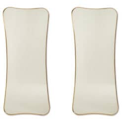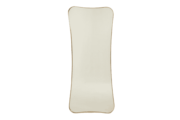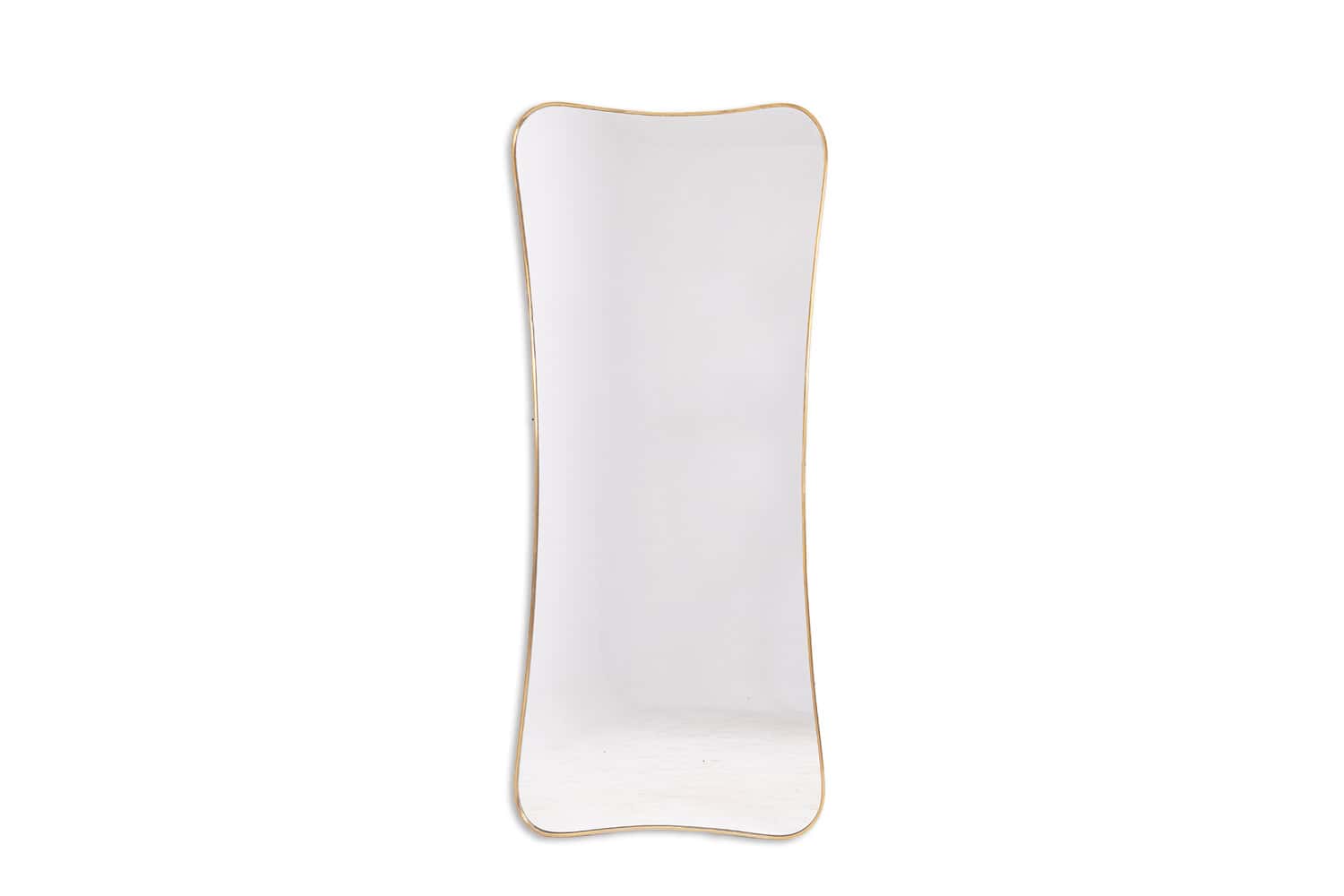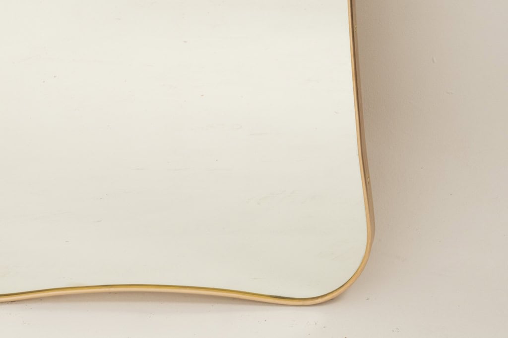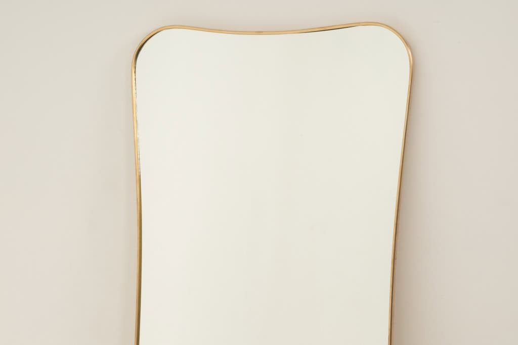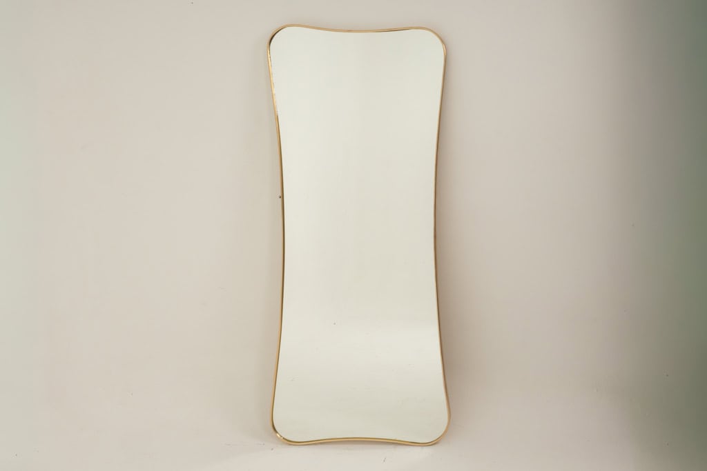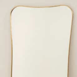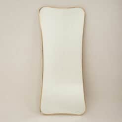Gilded Brass Mirror with a tall, elegant silhouette and refined Italian character. This mirror features a patinated frame that glows with warmth. Italian artisans crafted this piece in the 1980s or 1990s. The design shows clarity, balance, and architectural rhythm inspired by Gio Ponti.