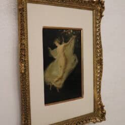 Executed in the late 19th century, the painting reflects the academic and symbolist artistic taste of the period, characterized by soft brushwork, delicate color transitions, and a poetic atmosphere. The rendering of the transparent veil demonstrates the painter’s attention to light, movement, and texture.