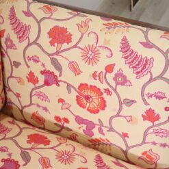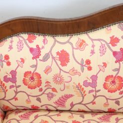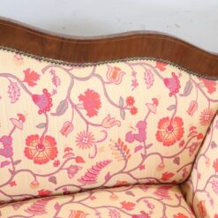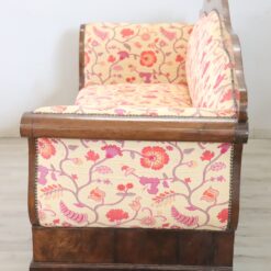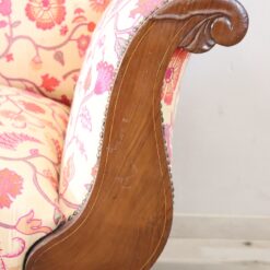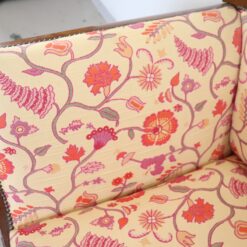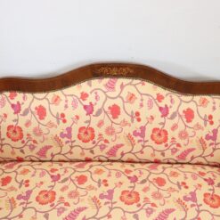 The padded backrest and seat offer comfort and support, while the floral-patterned fabric enhances its decorative appeal. The walnut wood frame showcases traditional craftsmanship and enduring beauty.