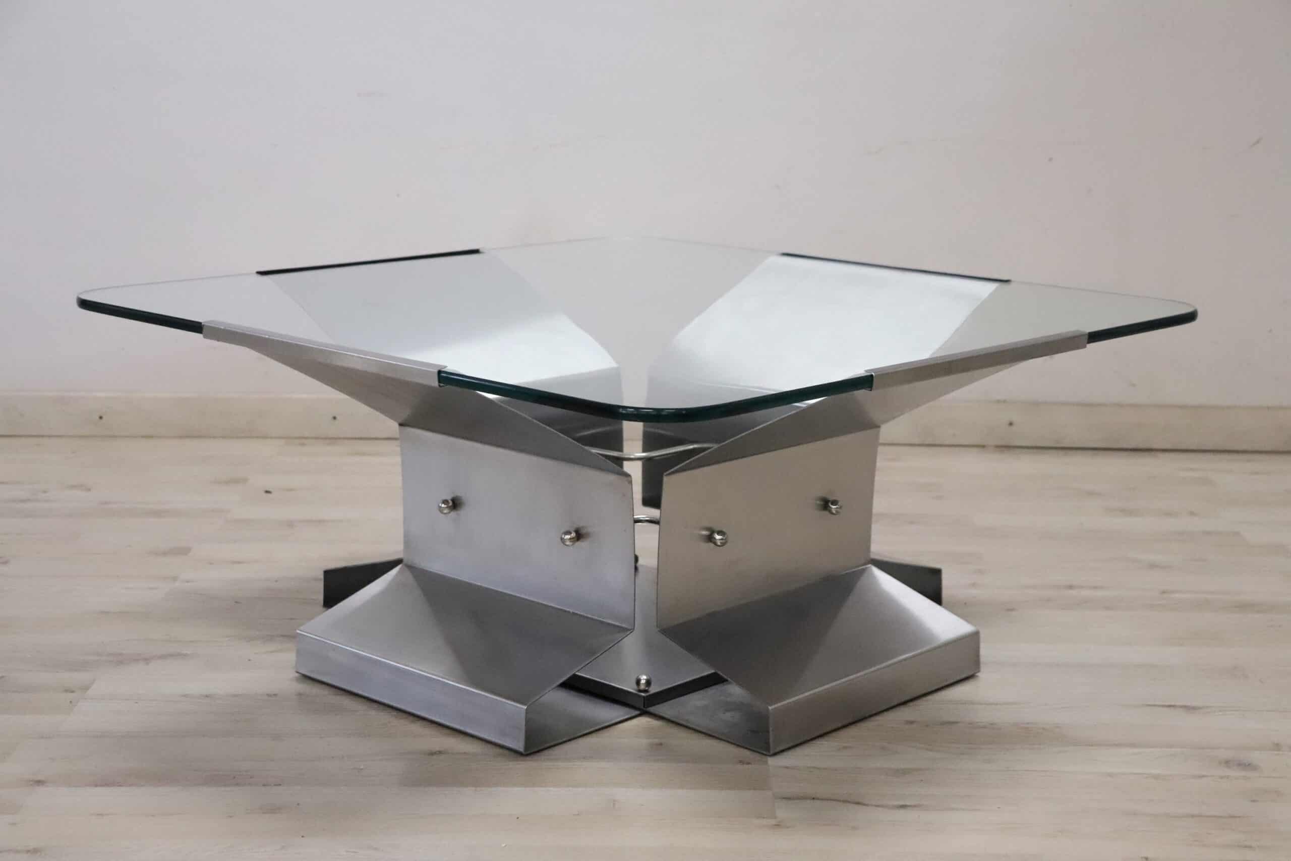 Italian Coffee Table – 20th Century Modern Steel and Glass Design