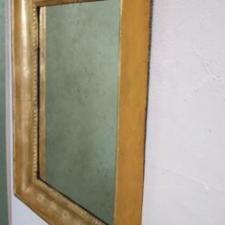 The gilding shows natural age marks, so review the photos for details. These marks add character and confirm its authentic antique charm. The mirror glass does not date to the same period as the frame, yet it reflects an antique look with intentional spotted areas that mimic historic mirrors.