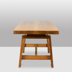Elegant Italian mid-century cherry wood desk crafted in the 1970s. The design features inverted U-shaped legs with a crossbar and a thick raised top, creating a refined architectural silhouette. Made of light cherry wood with a smooth varnished finish, this piece embodies the timeless quality of Italian craftsmanship.