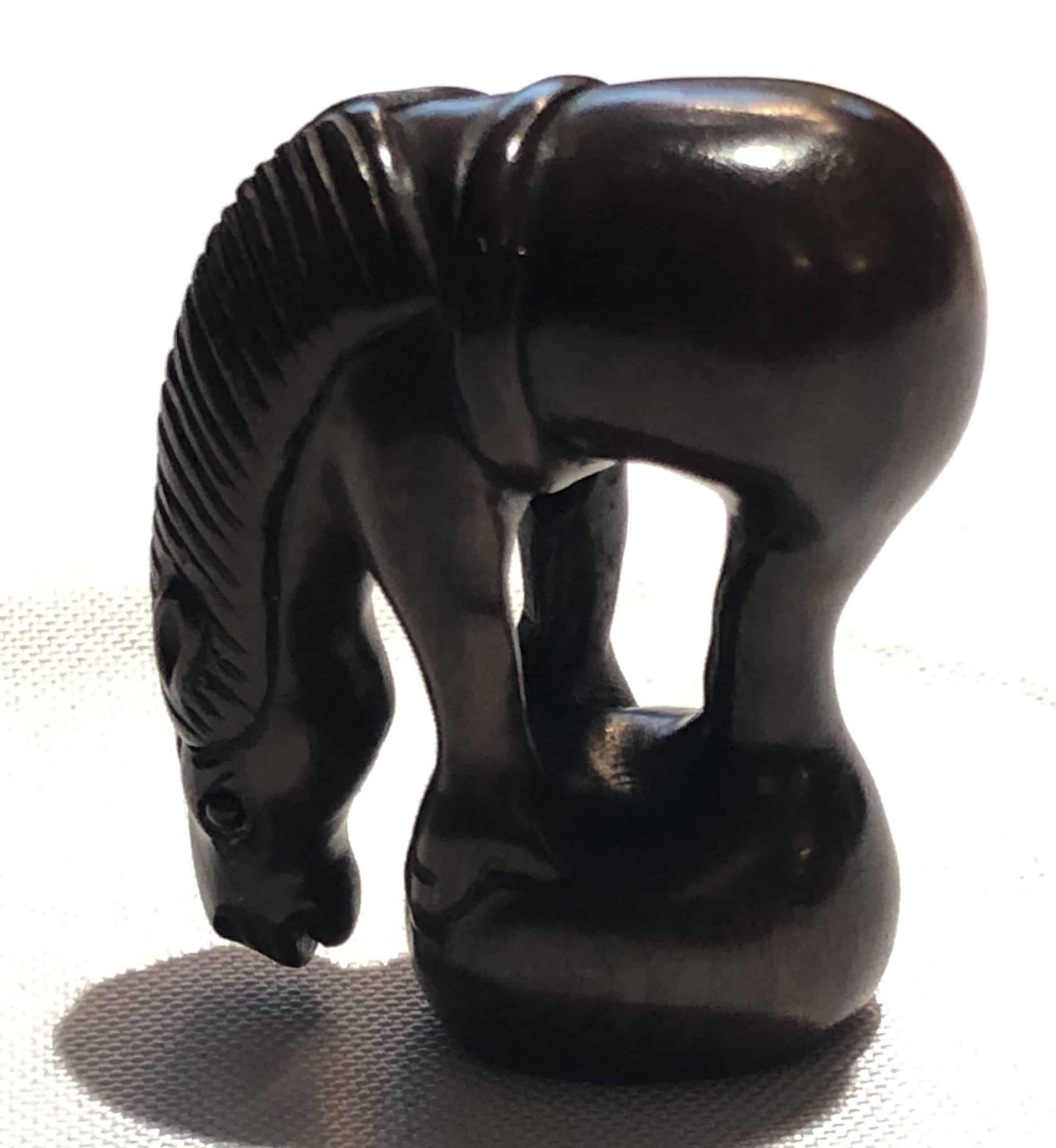Antique Armchairs, A Set of Three, Directoire StyleThis beautifully wood carved Japanese netsuke is representing a horse. It has a signature on the bottom of the little figurine. The carving dates back to the second half of the 20th century.